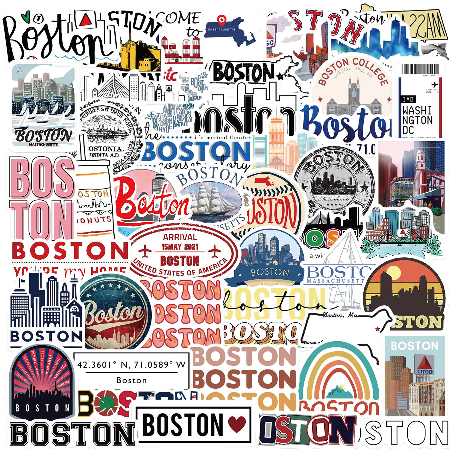 50 미국 보스턴 낙서 스티커 장식 기타 노트북 수하물 DIY 방수 국경 도매스토어 가기