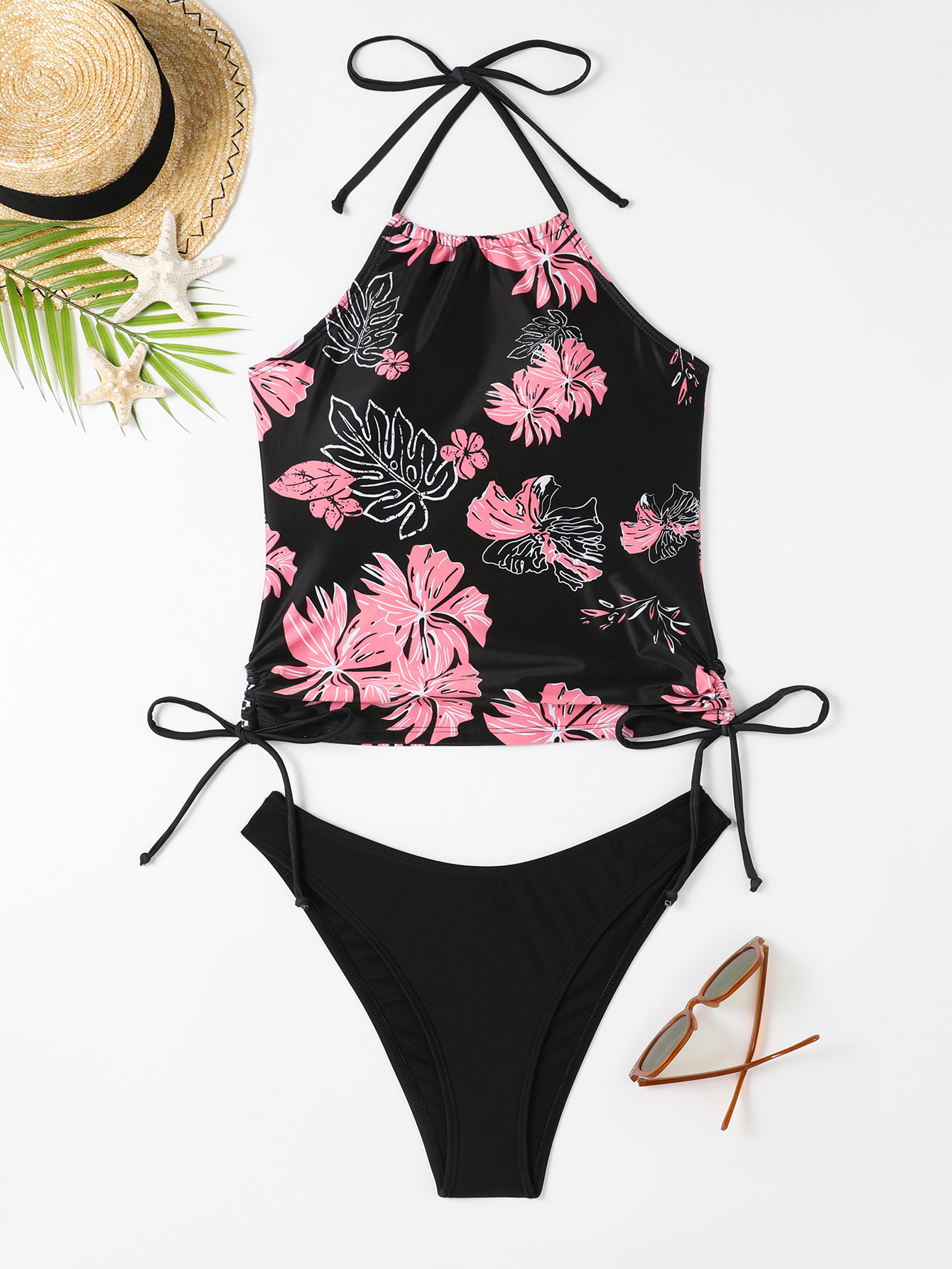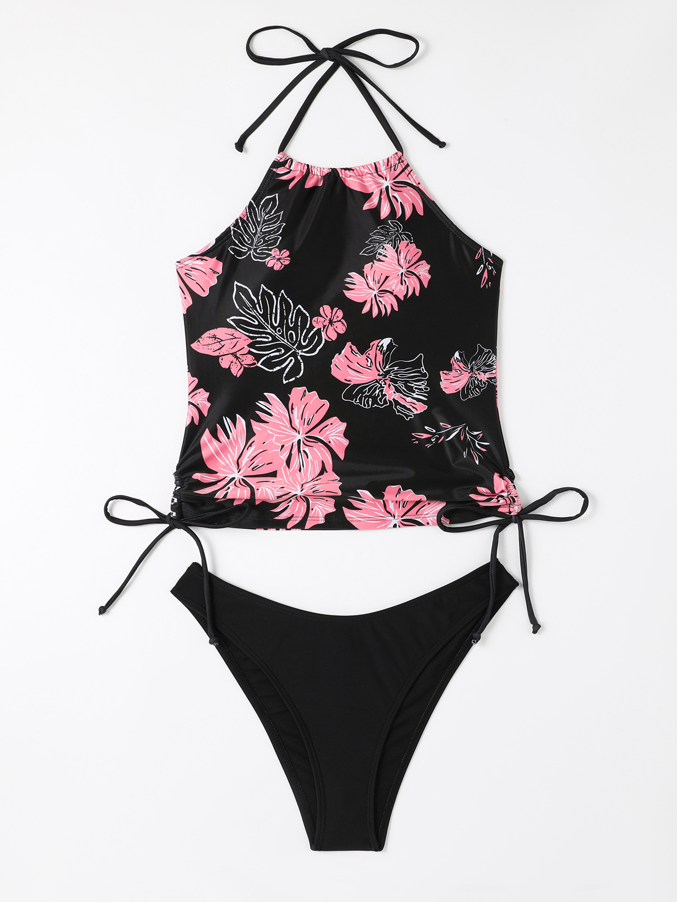 유럽, 미국 및 인도 분할 수영복 여성 온천 휴가 대외 무역 국경 인쇄 목 교수형 테더 백리스 퀵 드라이 수영복