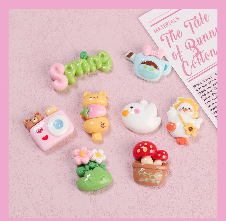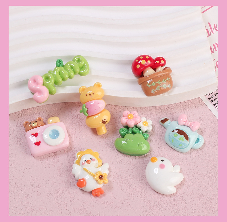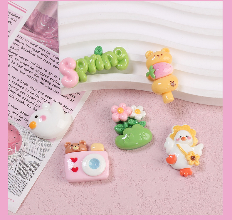 수지 액세서리 수제 DIY 수제 구멍 신발 버클 보석 소재 크림 접착제 만화 봄 행복한 오리
