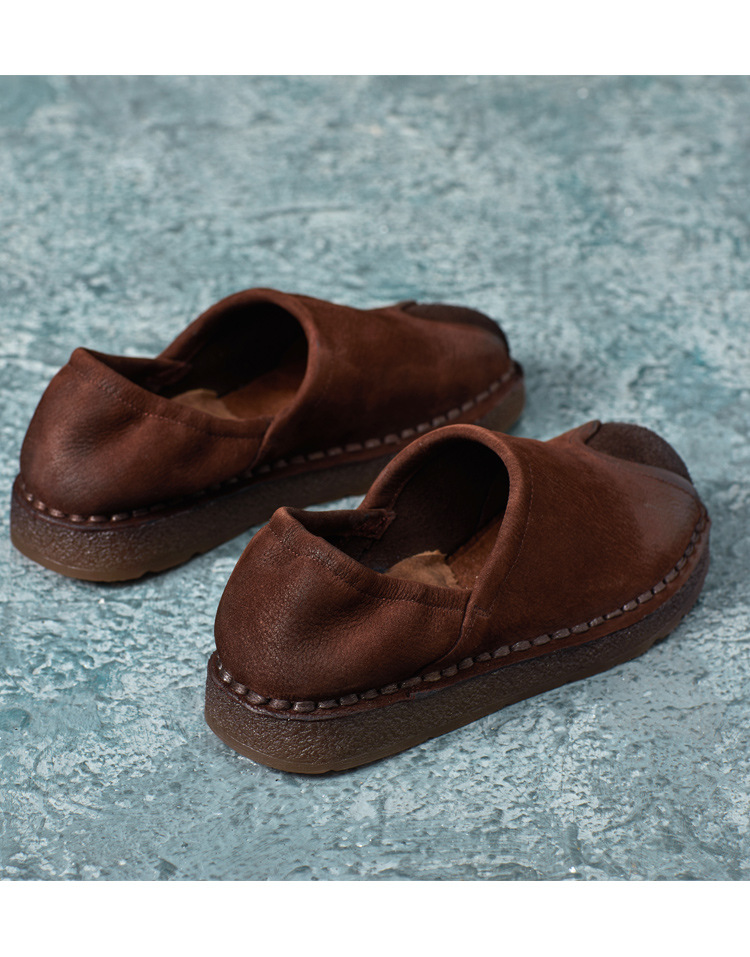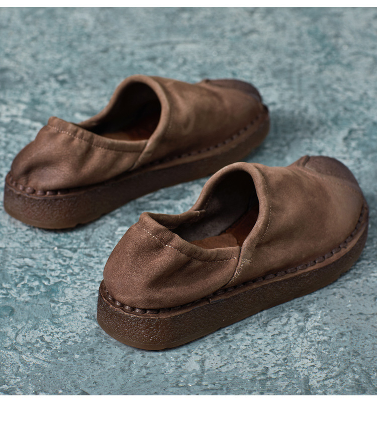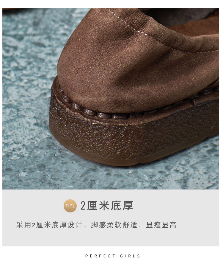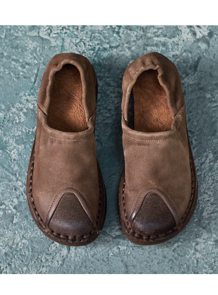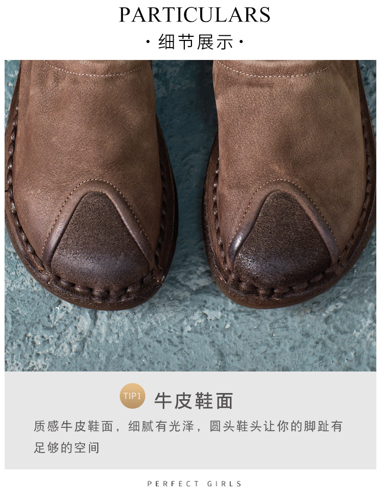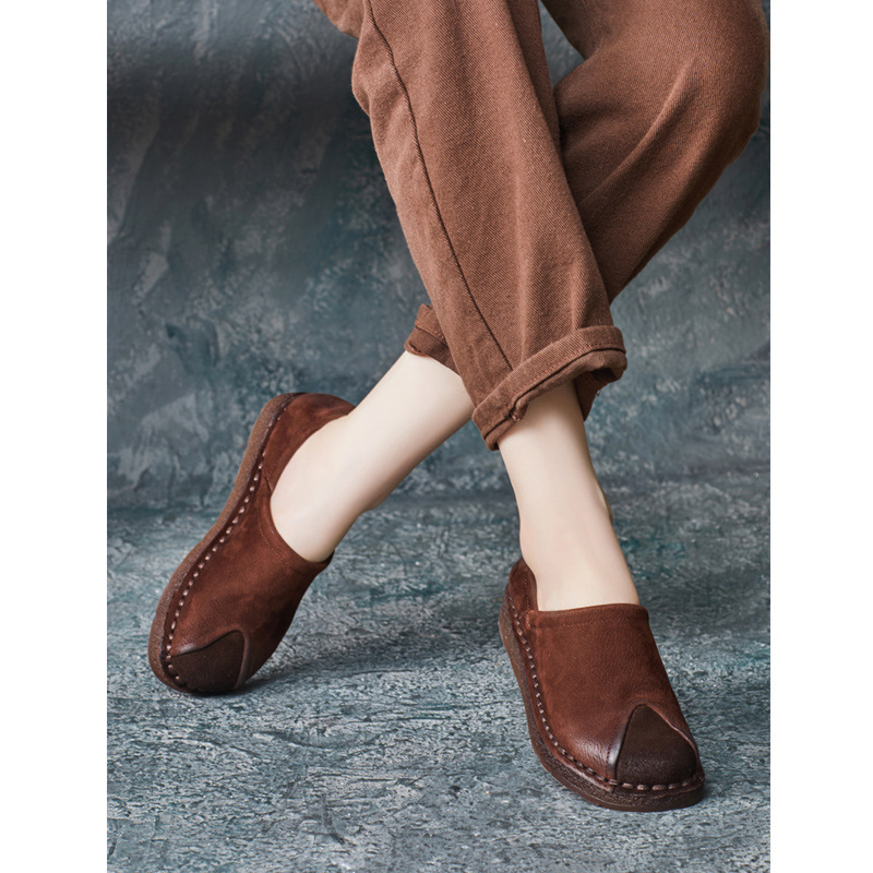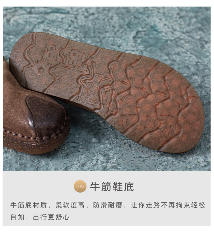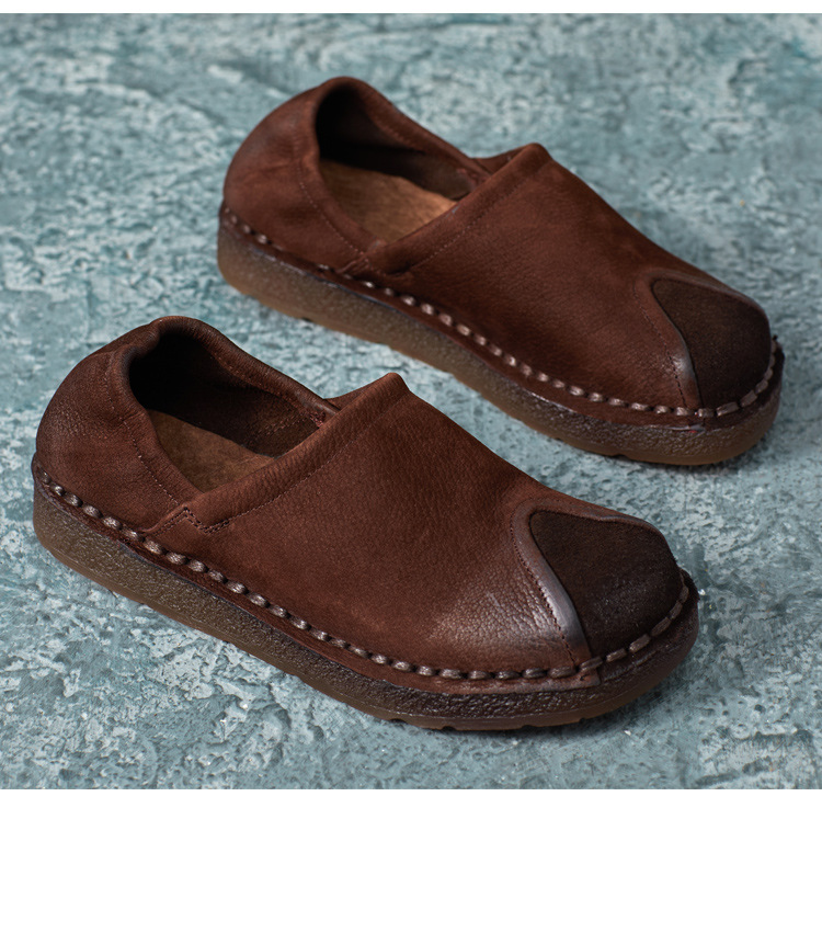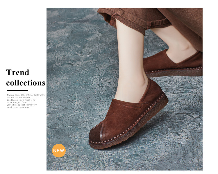 가을 2024 새로운 민족 스타일 복고풍 소가죽 평면 부드러운 바닥 손으로 꿰매는 싱글 레이어 신발 부드러운 바닥 여성 신발스토어 가기