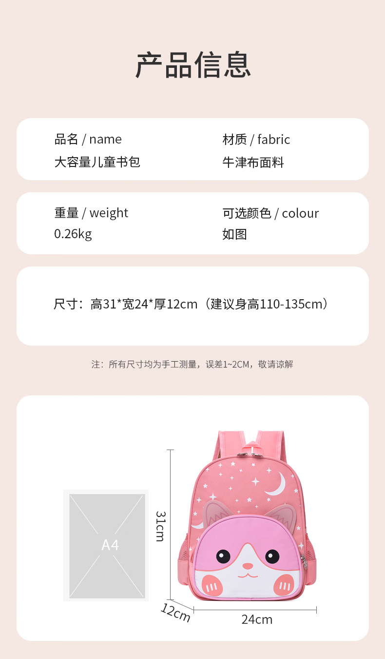 2024 새로운 유치원 어린이 배낭 만화 초등 학생을위한 귀여운 경량 배낭 옥스포드 헝겊 Schoolbag