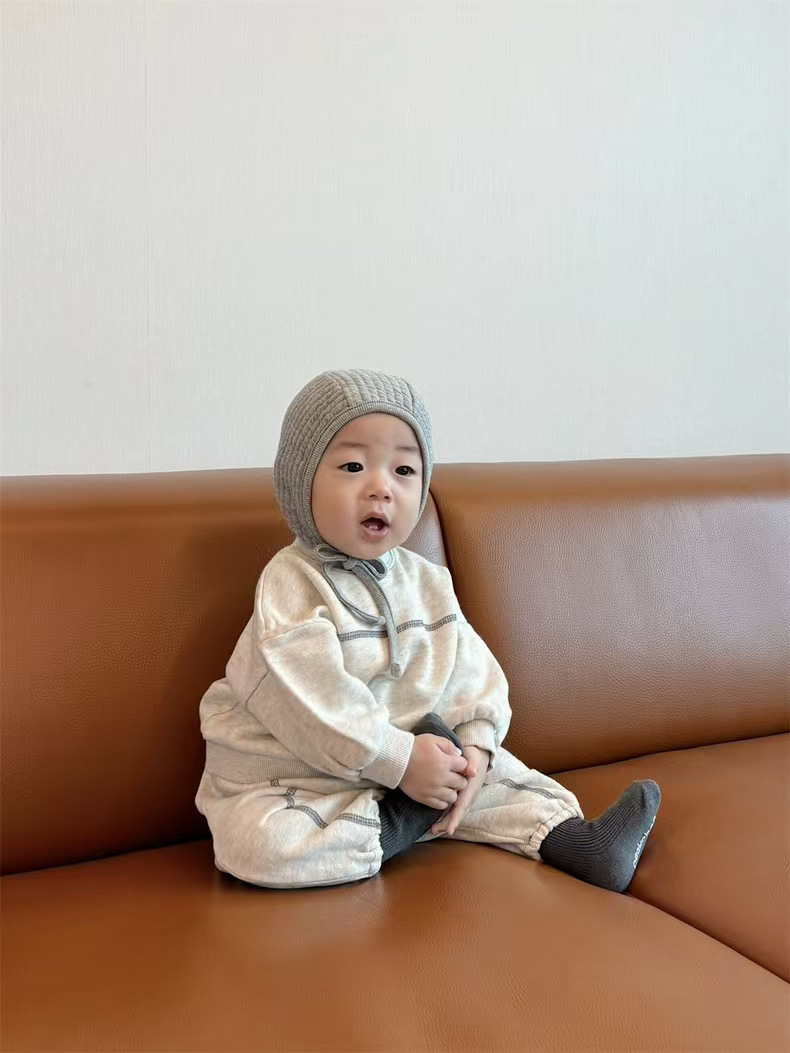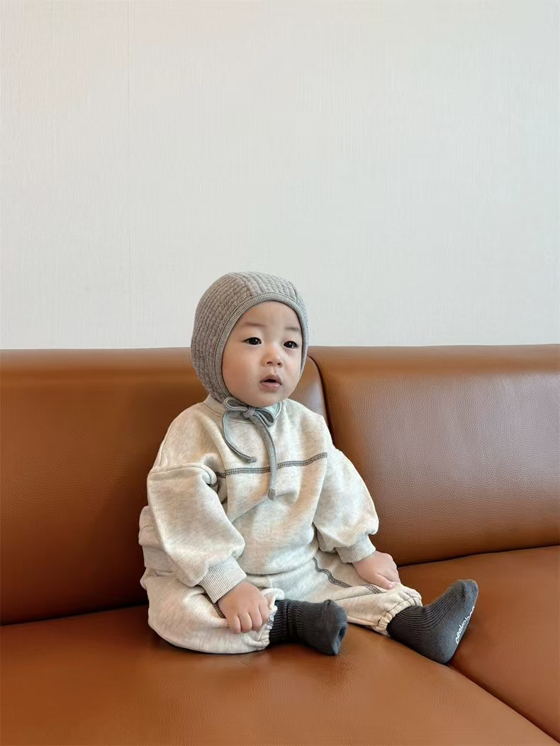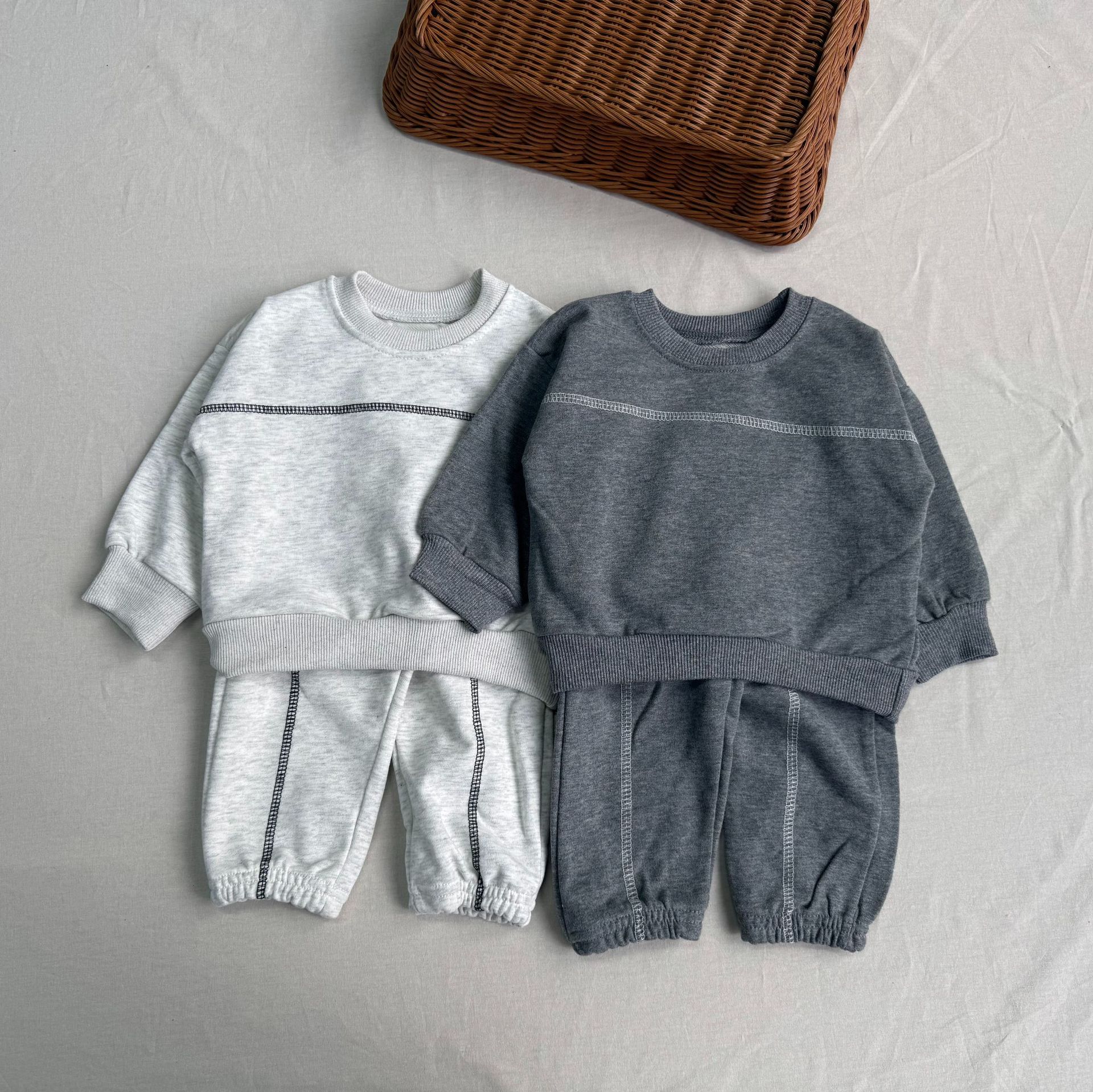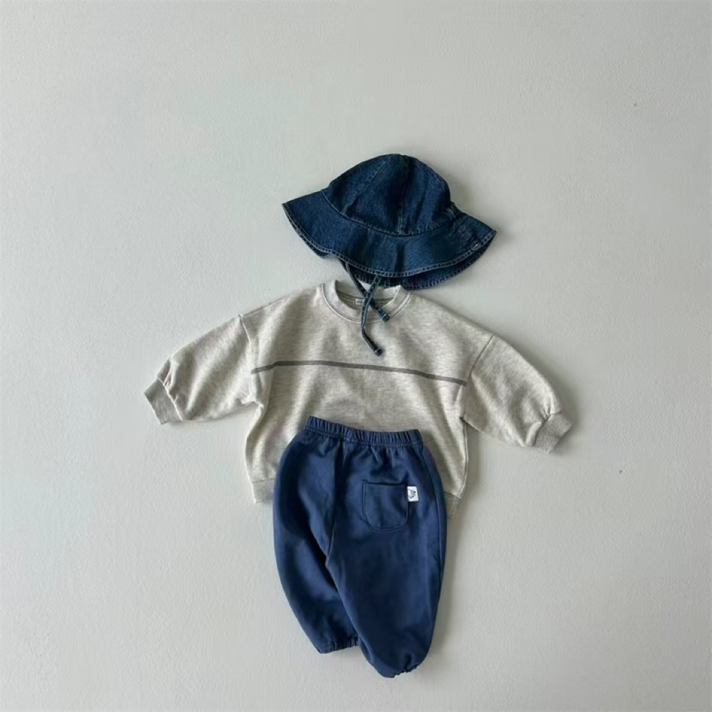 한국식 Ins 스웨트 팬츠 심플 디자인 아기 소년과 소녀 유행 스타일 라인 세트 올 매치 봄과 가을 스타일 스타일