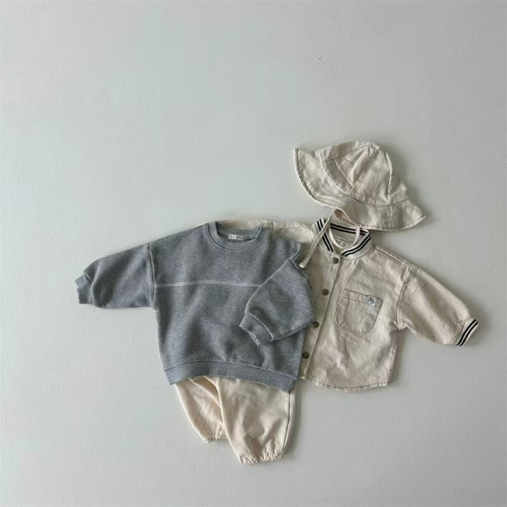 한국식 Ins 스웨트 팬츠 심플 디자인 아기 소년과 소녀 유행 스타일 라인 세트 올 매치 봄과 가을 스타일 스타일스토어 가기