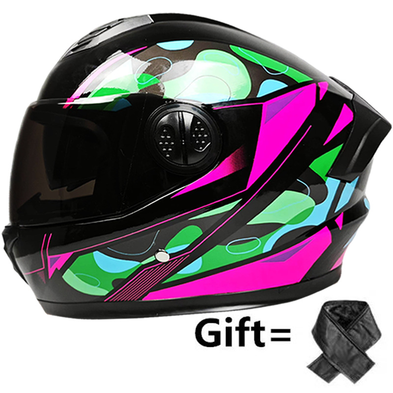 국경 특별 [유통 스카프] ZXC 더블 렌즈 전기 자동차 풀 헬멧 남녀 사계절 유니버설 헬멧