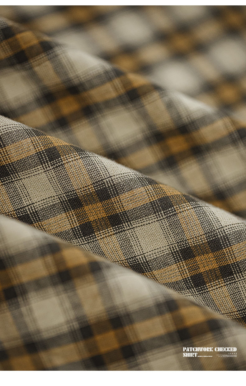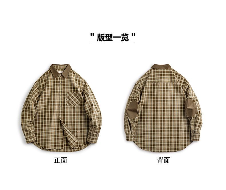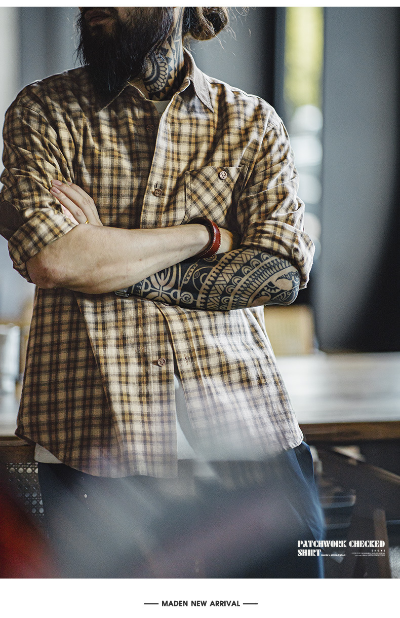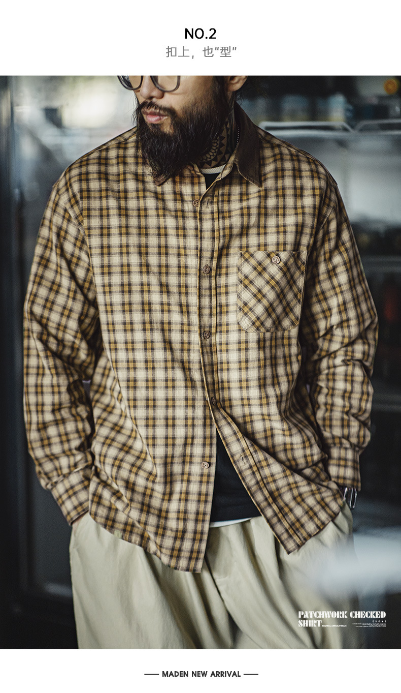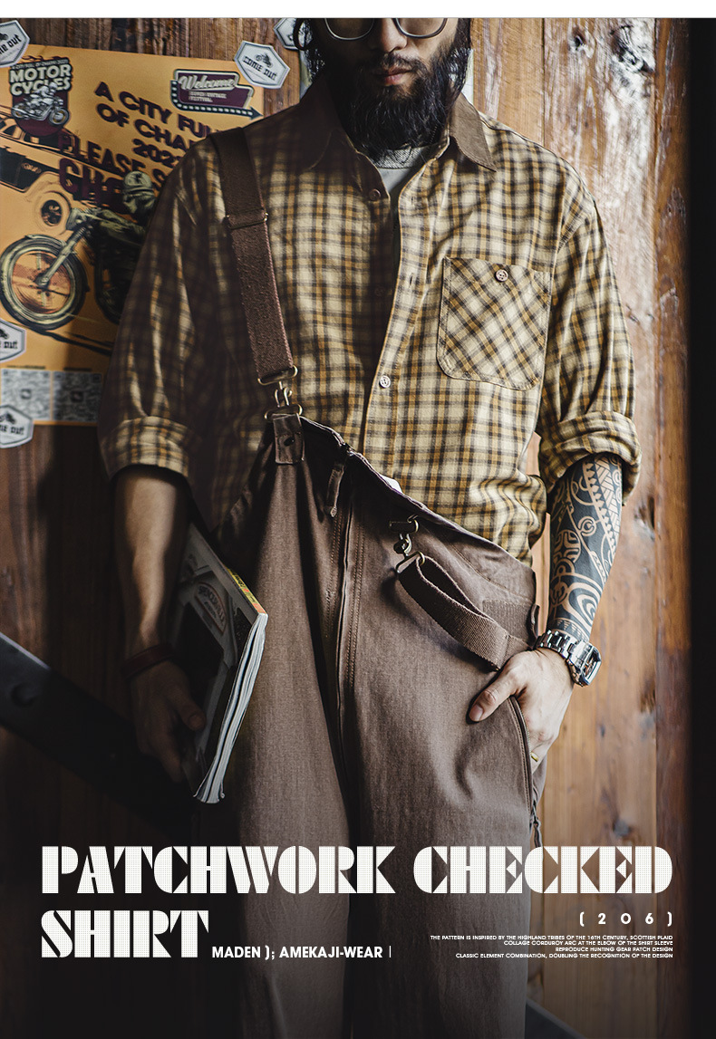 Madden Workwear 아메리칸 레트로 스코틀랜드 격자 무늬 긴팔 셔츠 코듀로이 스플 라이스 라펠 격자 무늬 셔츠 남성 가을스토어 가기
