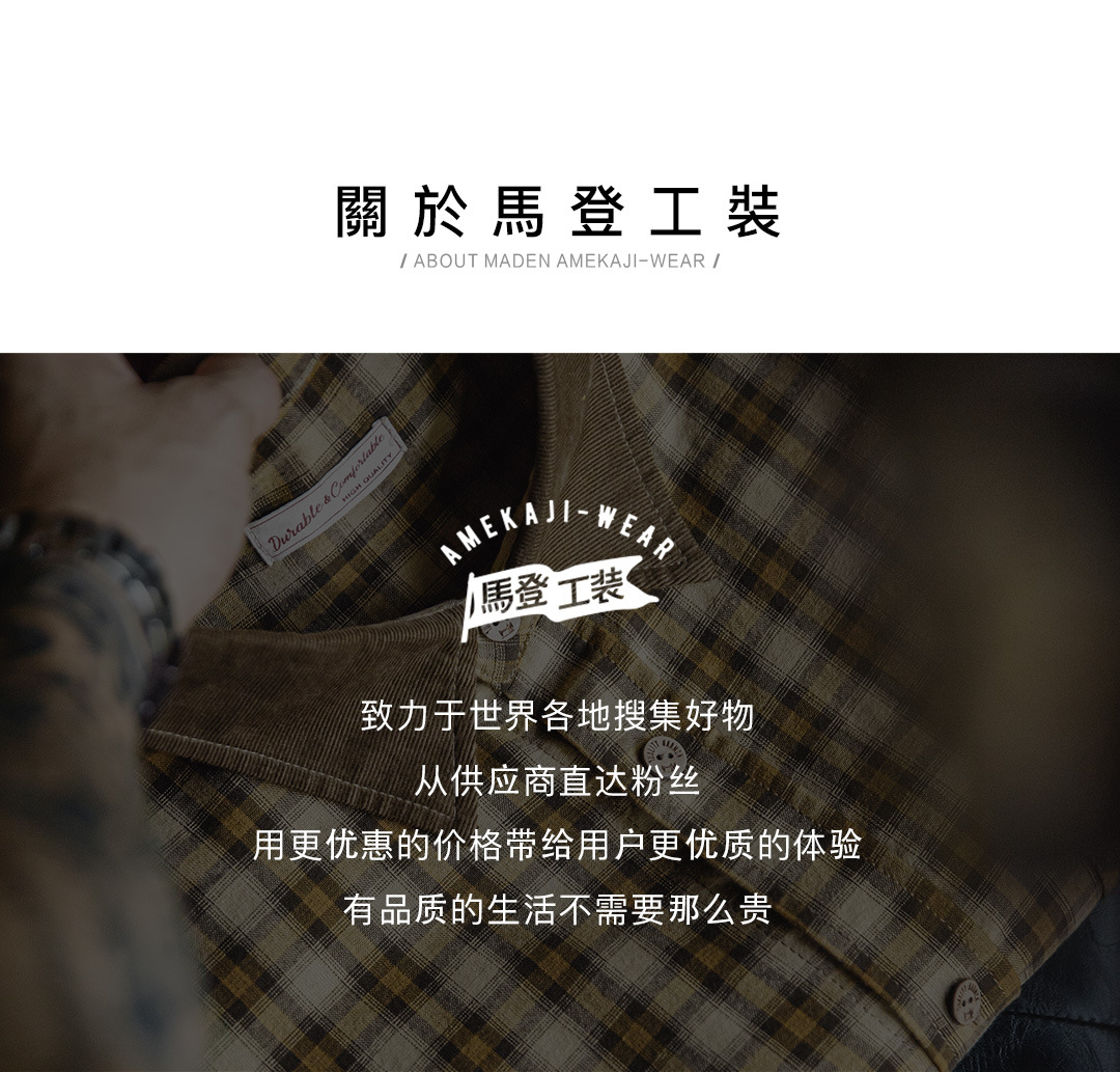 Madden Workwear 아메리칸 레트로 스코틀랜드 격자 무늬 긴팔 셔츠 코듀로이 스플 라이스 라펠 격자 무늬 셔츠 남성 가을