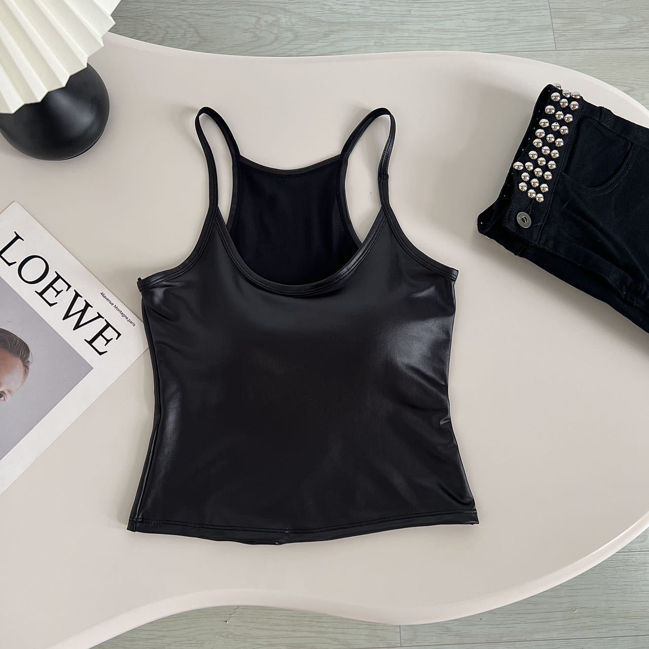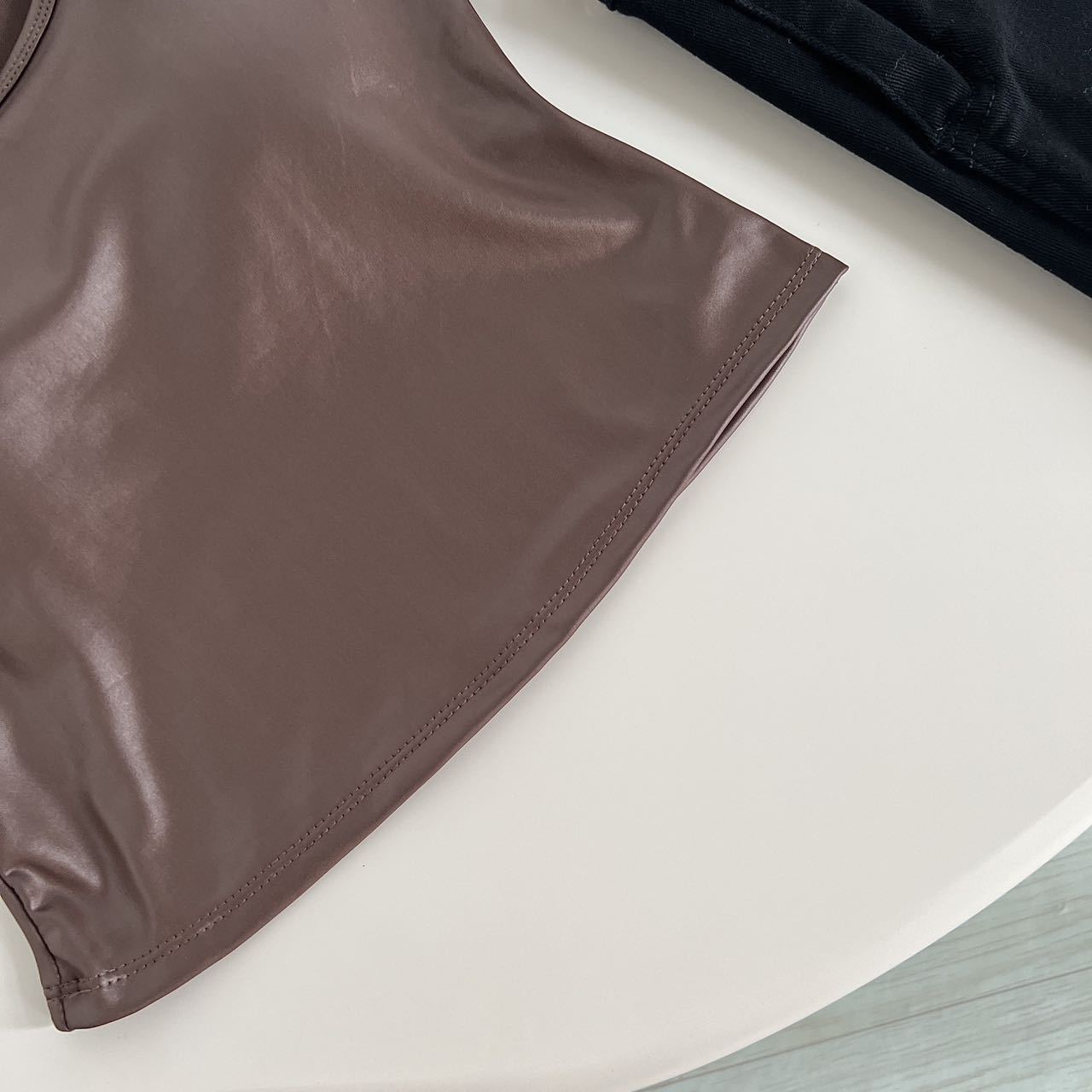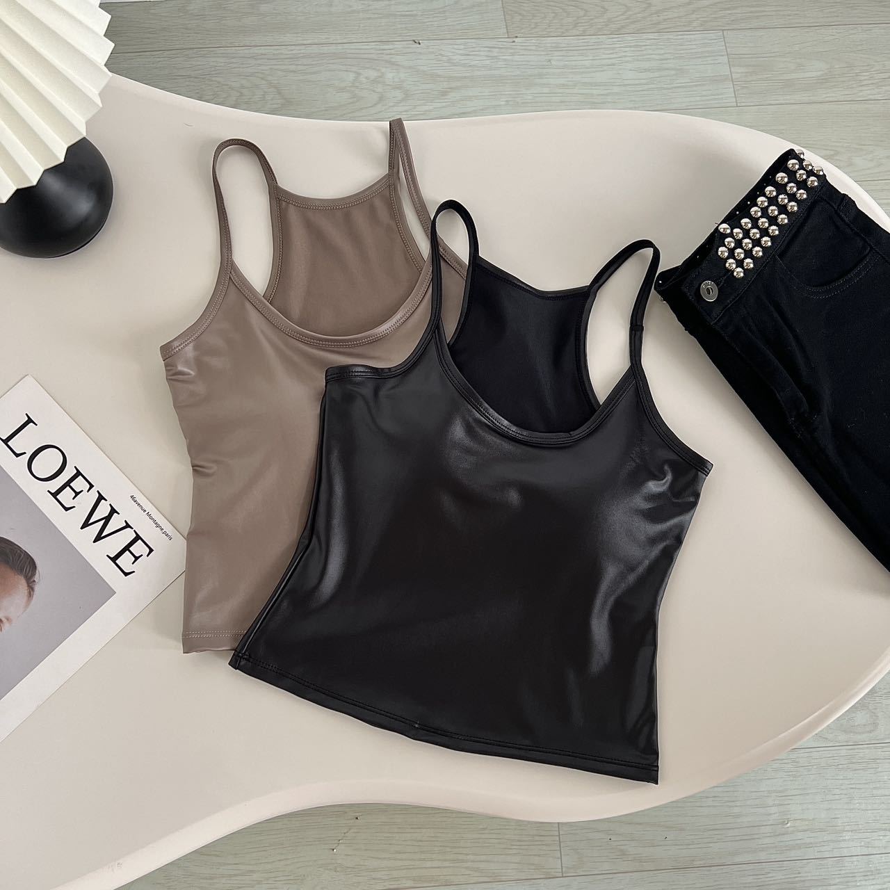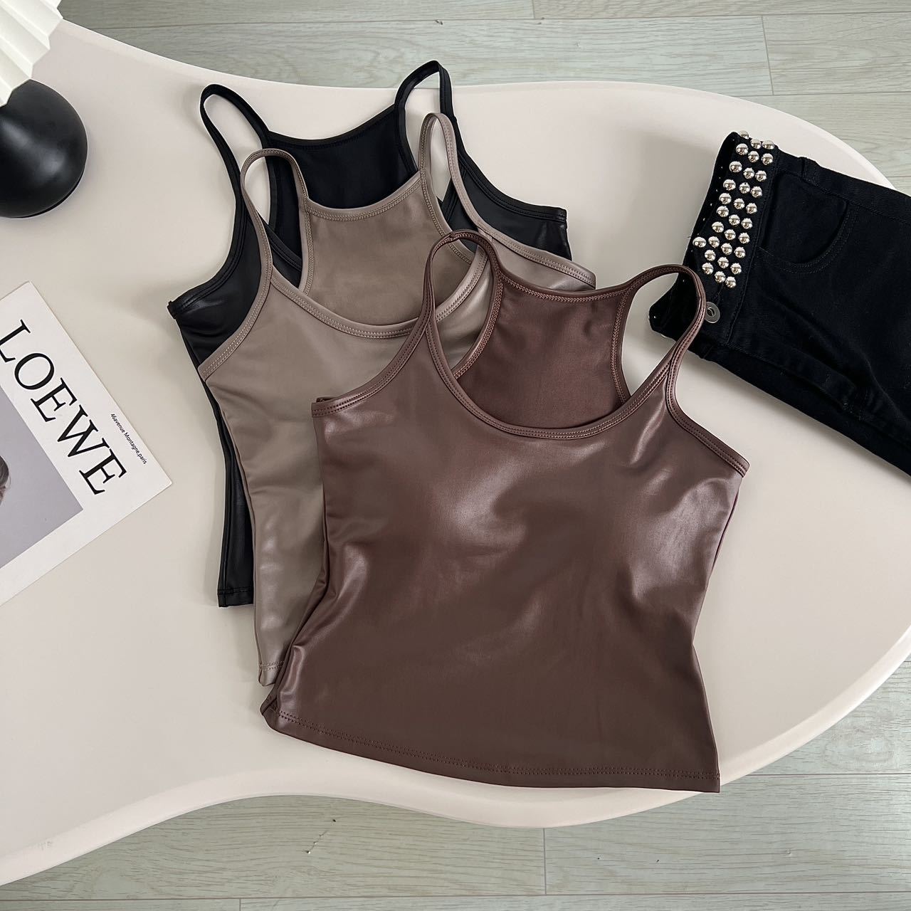 6213 # 스파이스 걸스 미국식 pu 모조 가죽 섹시 슬림 슬링 여성의 2024 년 초가을 새 겉옷 조끼 트렌디