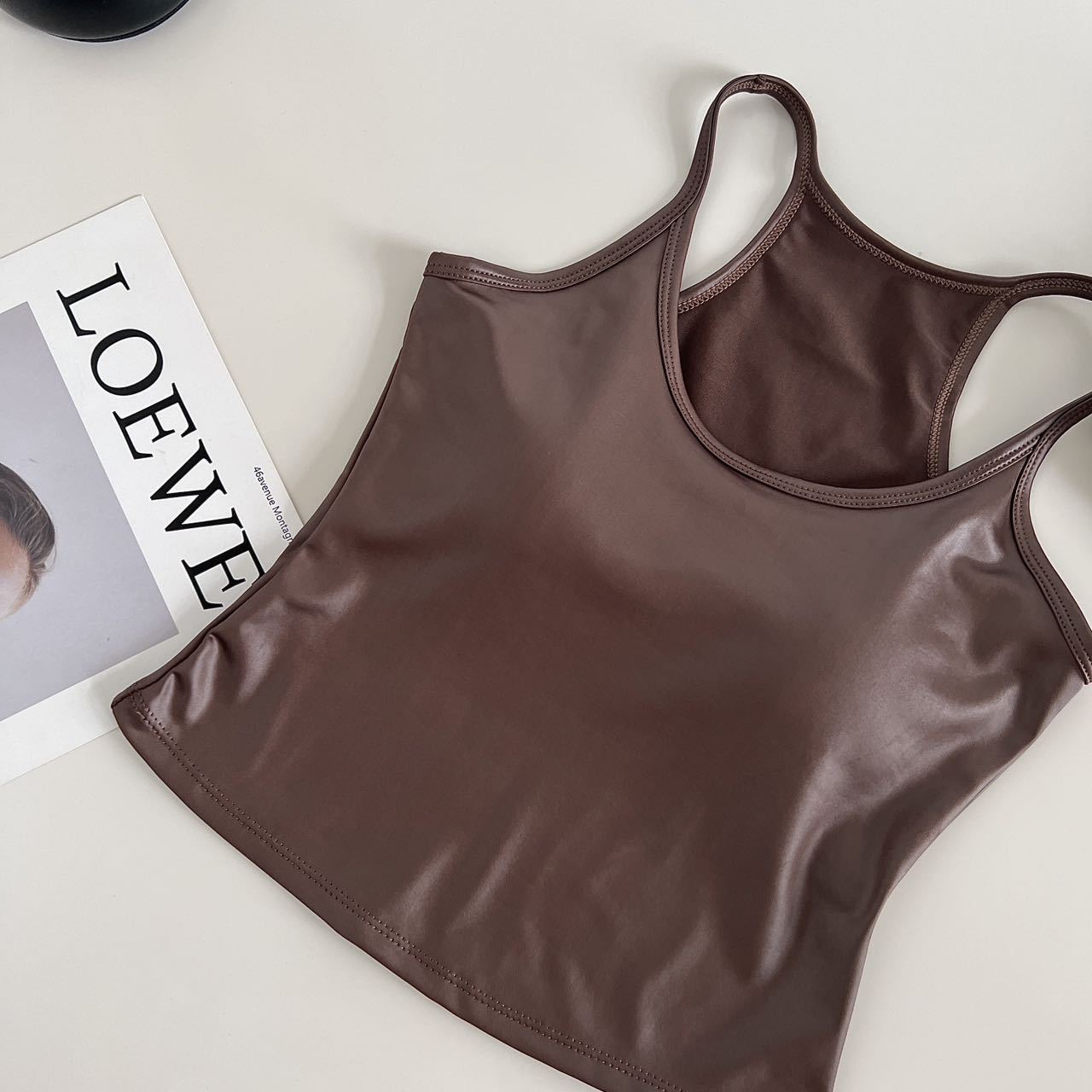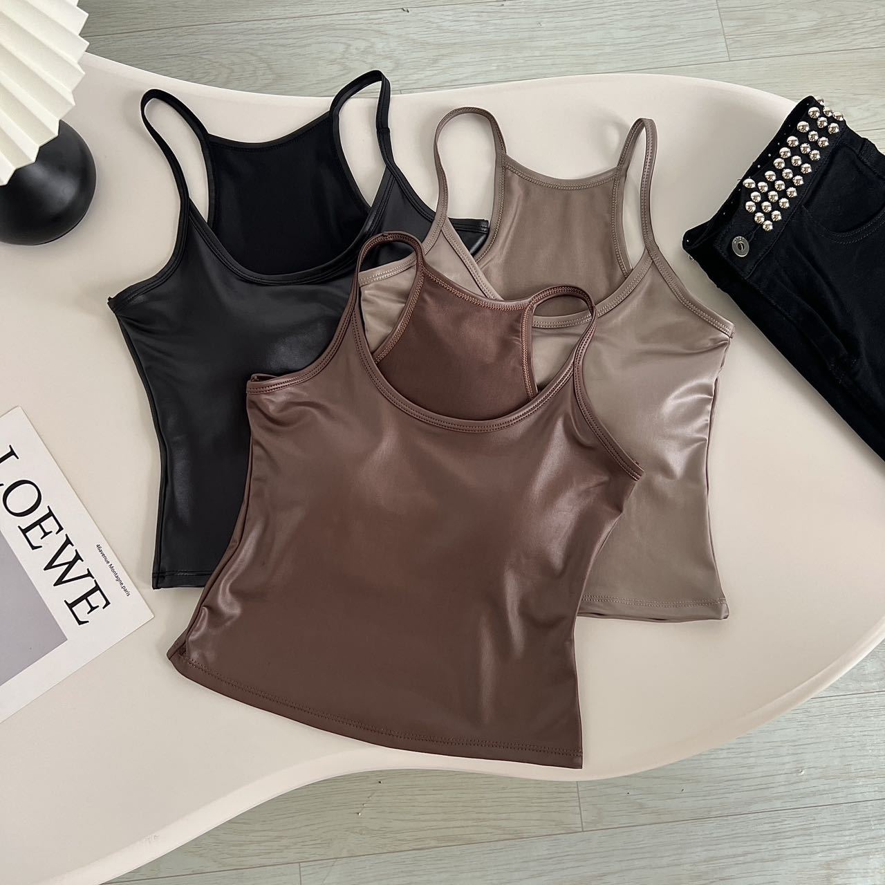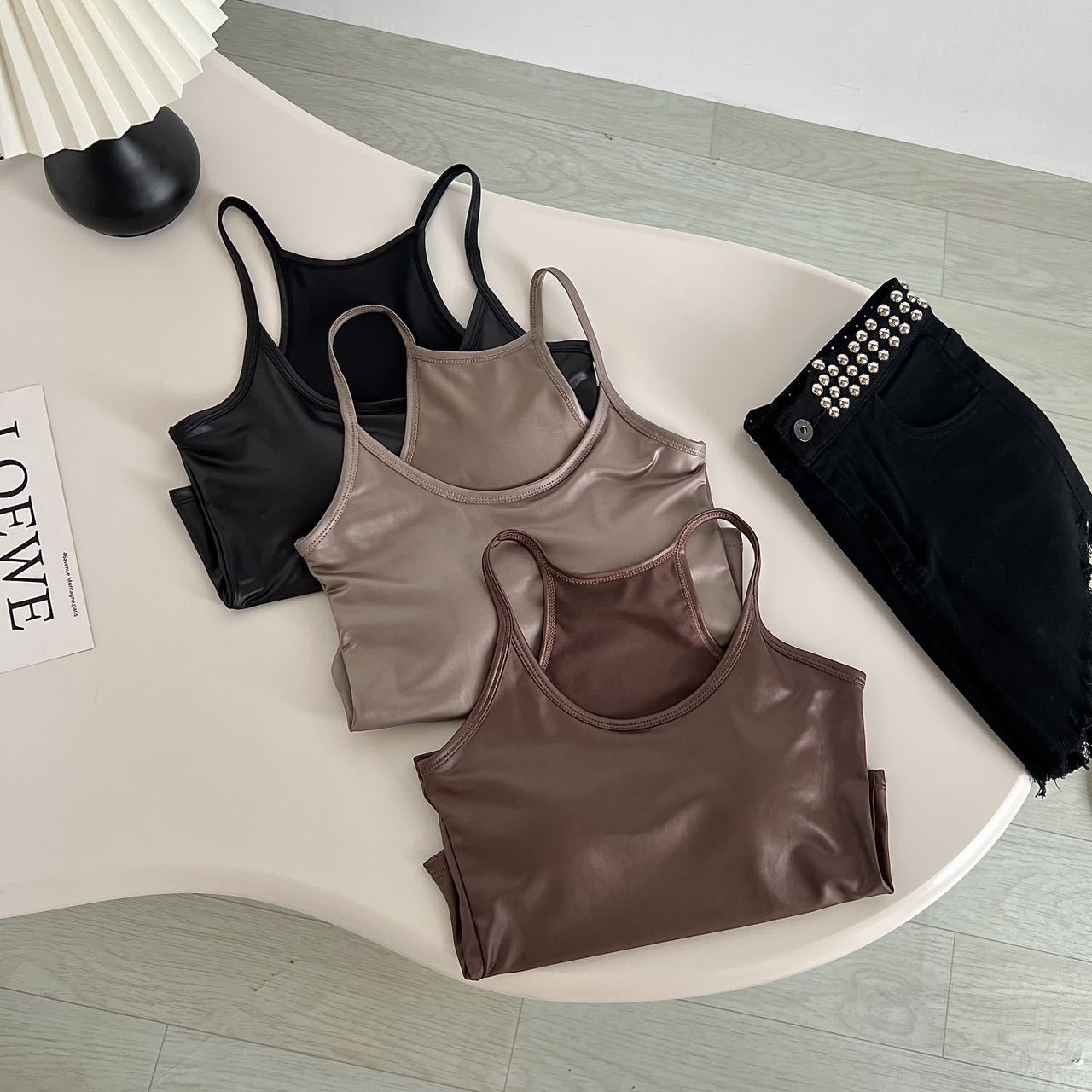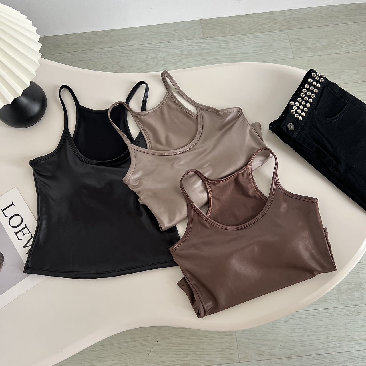 6213 # 스파이스 걸스 미국식 pu 모조 가죽 섹시 슬림 슬링 여성의 2024 년 초가을 새 겉옷 조끼 트렌디