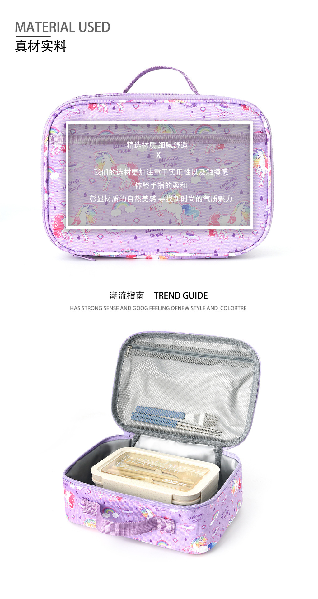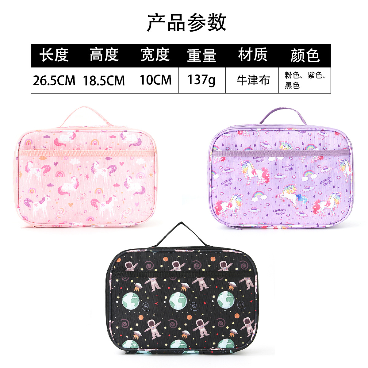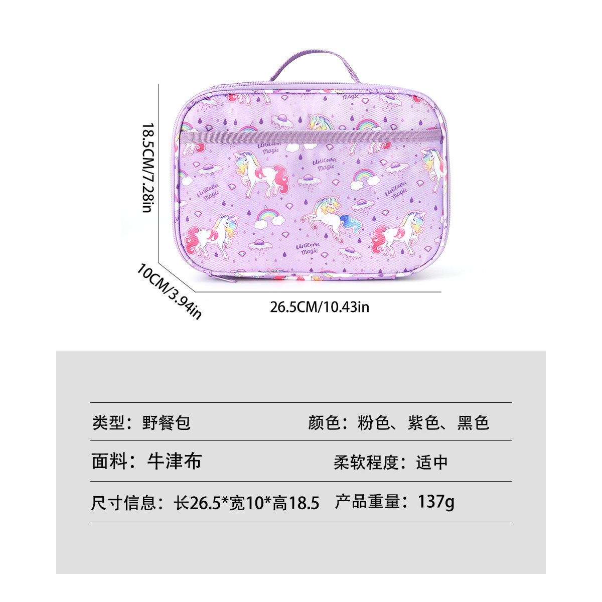 만화 유니콘 어깨 점심 가방 어린이 휴대용 점심 가방 학생 아이스 백 야외 피크닉 절연 가방
