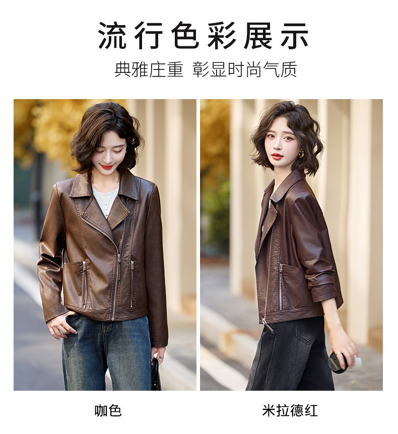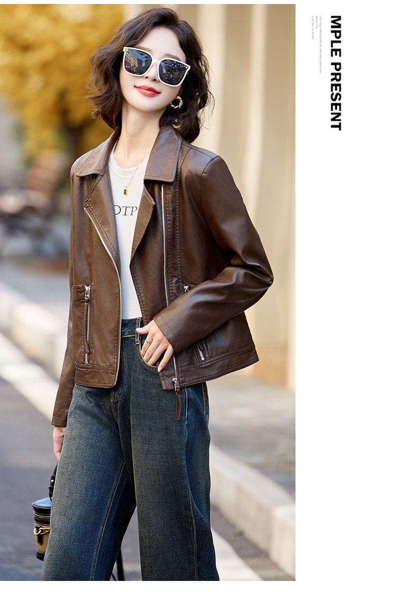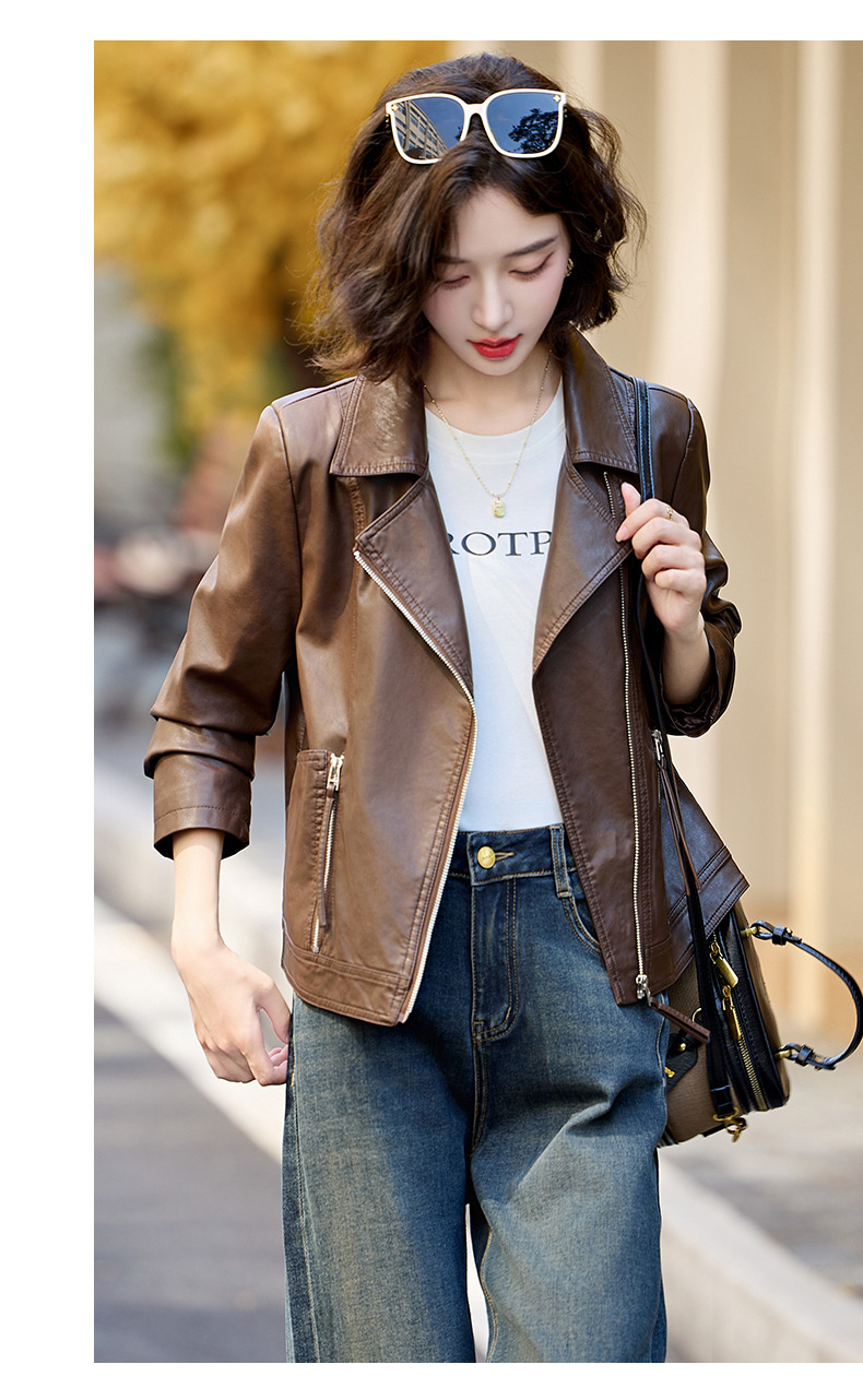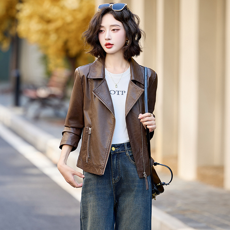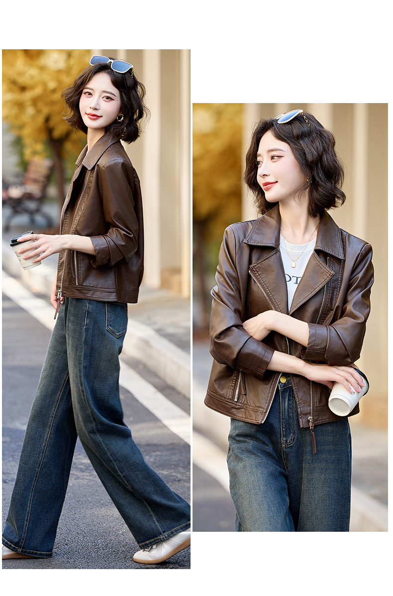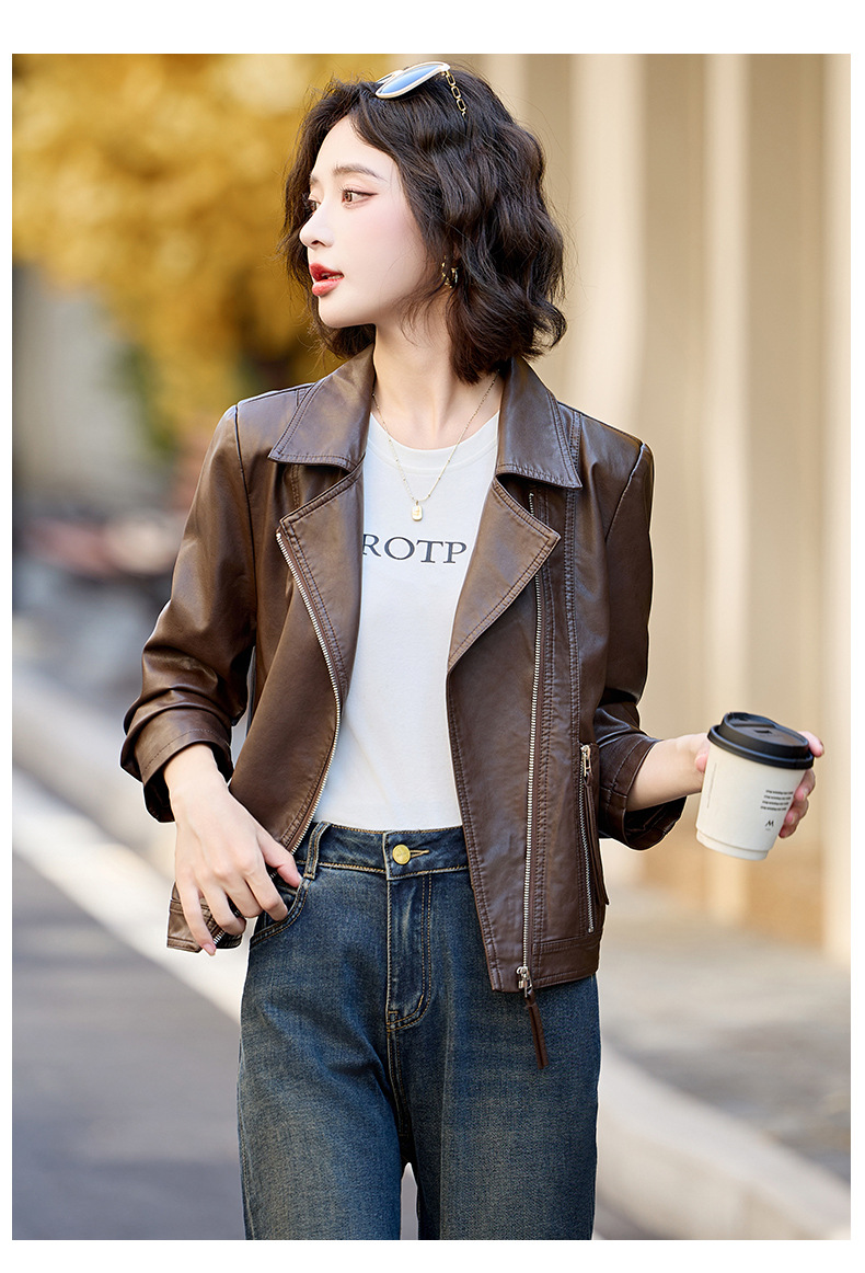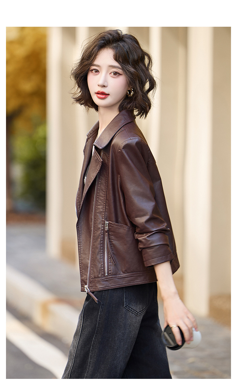 패션 봄과 가을 새로운 짧은 캐주얼 재킷 패션 오토바이 재킷 여성 가죽 외부 타워스토어 가기