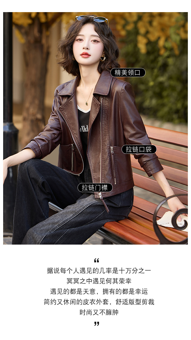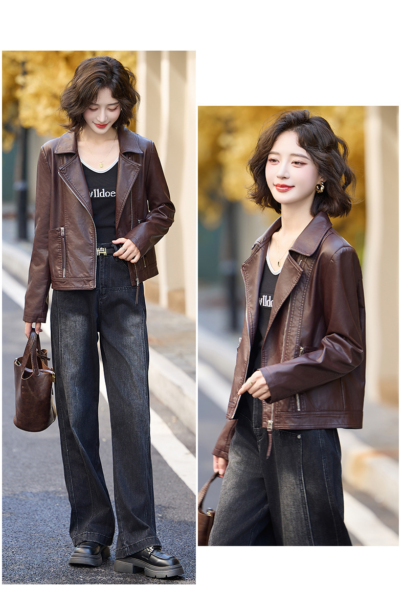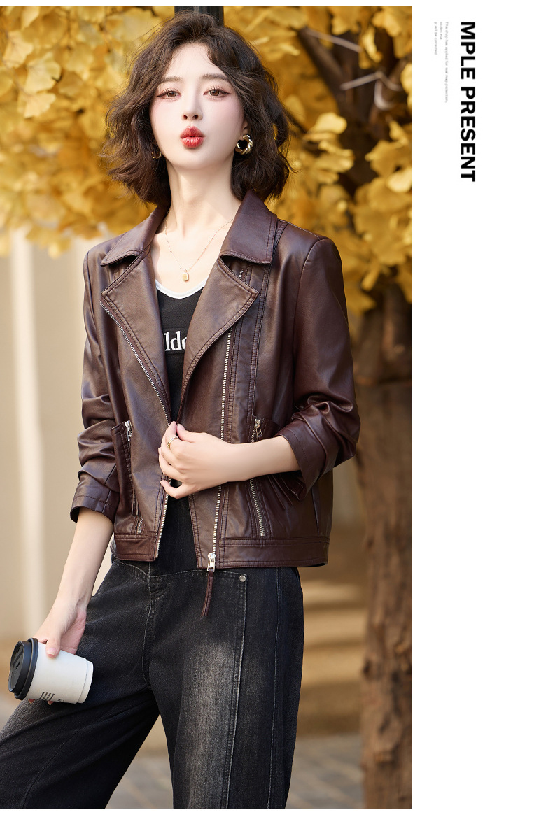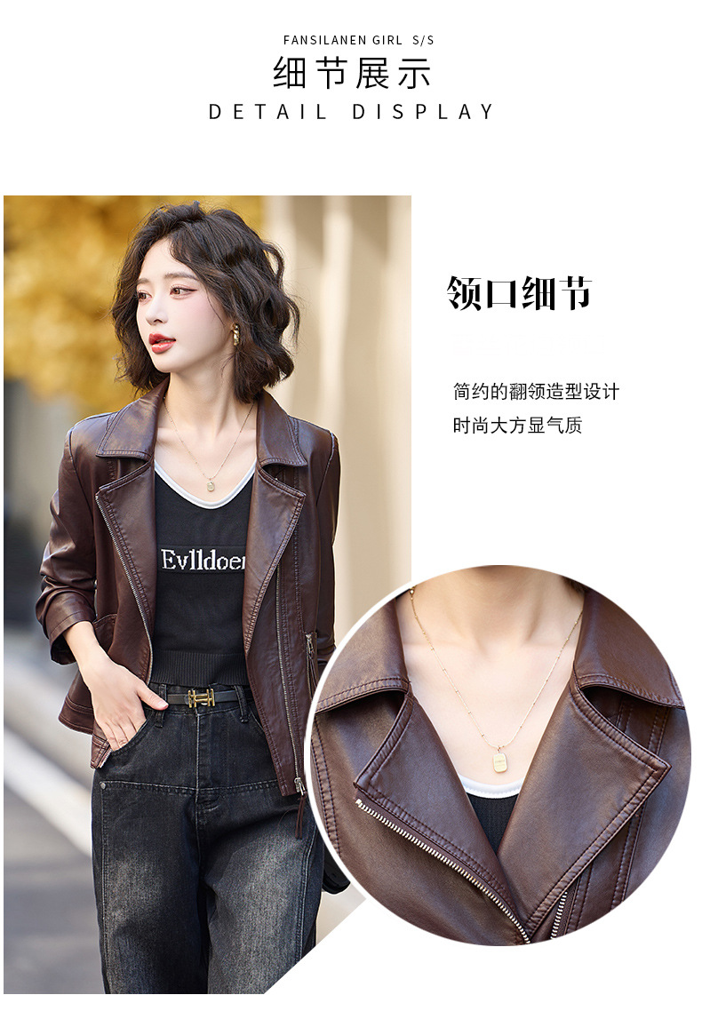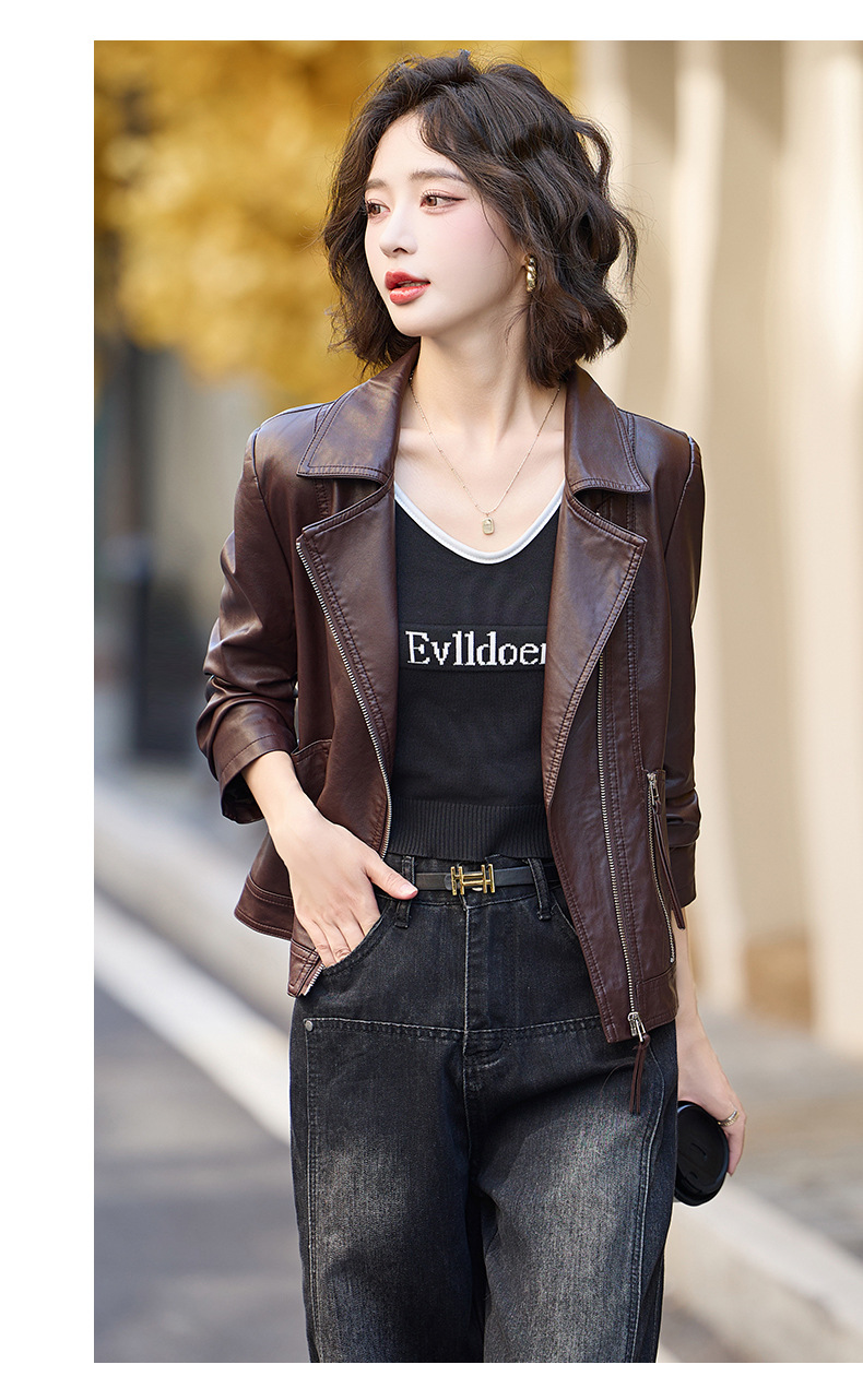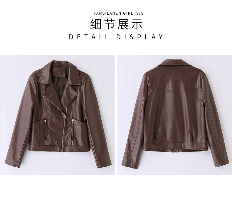 패션 봄과 가을 새로운 짧은 캐주얼 재킷 패션 오토바이 재킷 여성 가죽 외부 타워스토어 가기