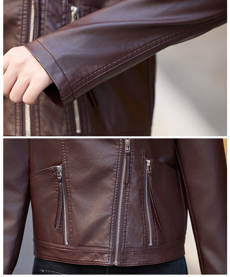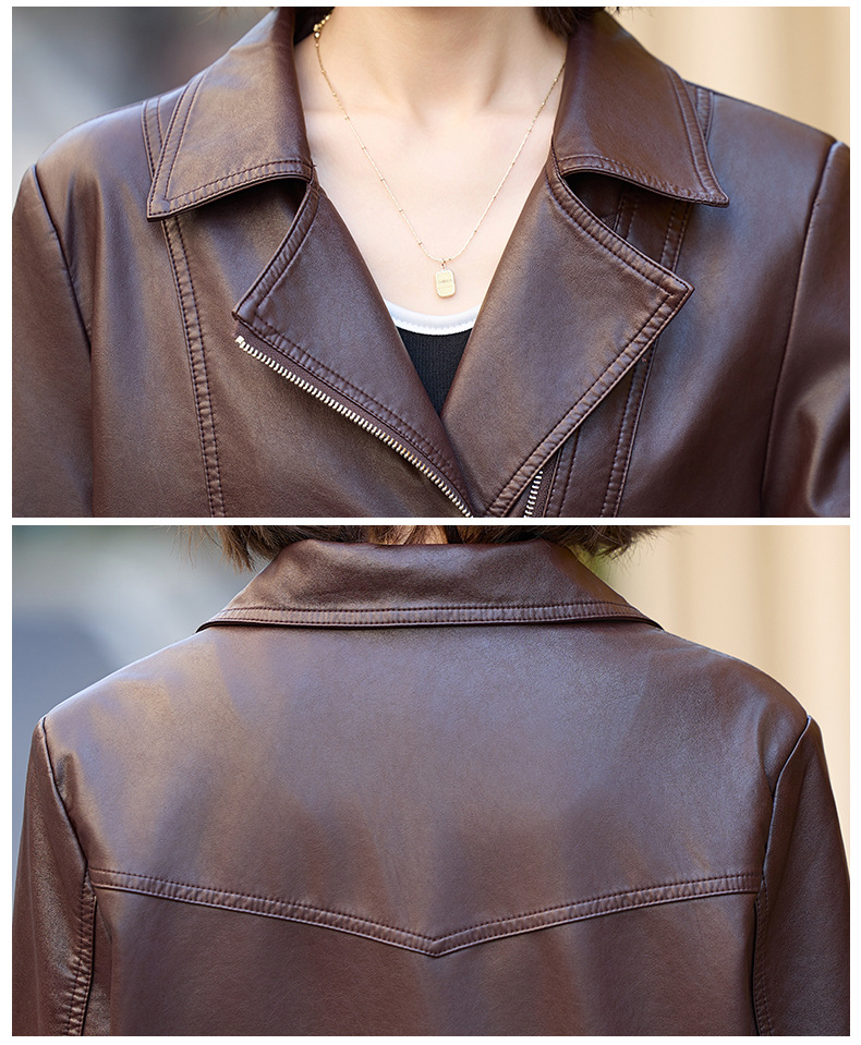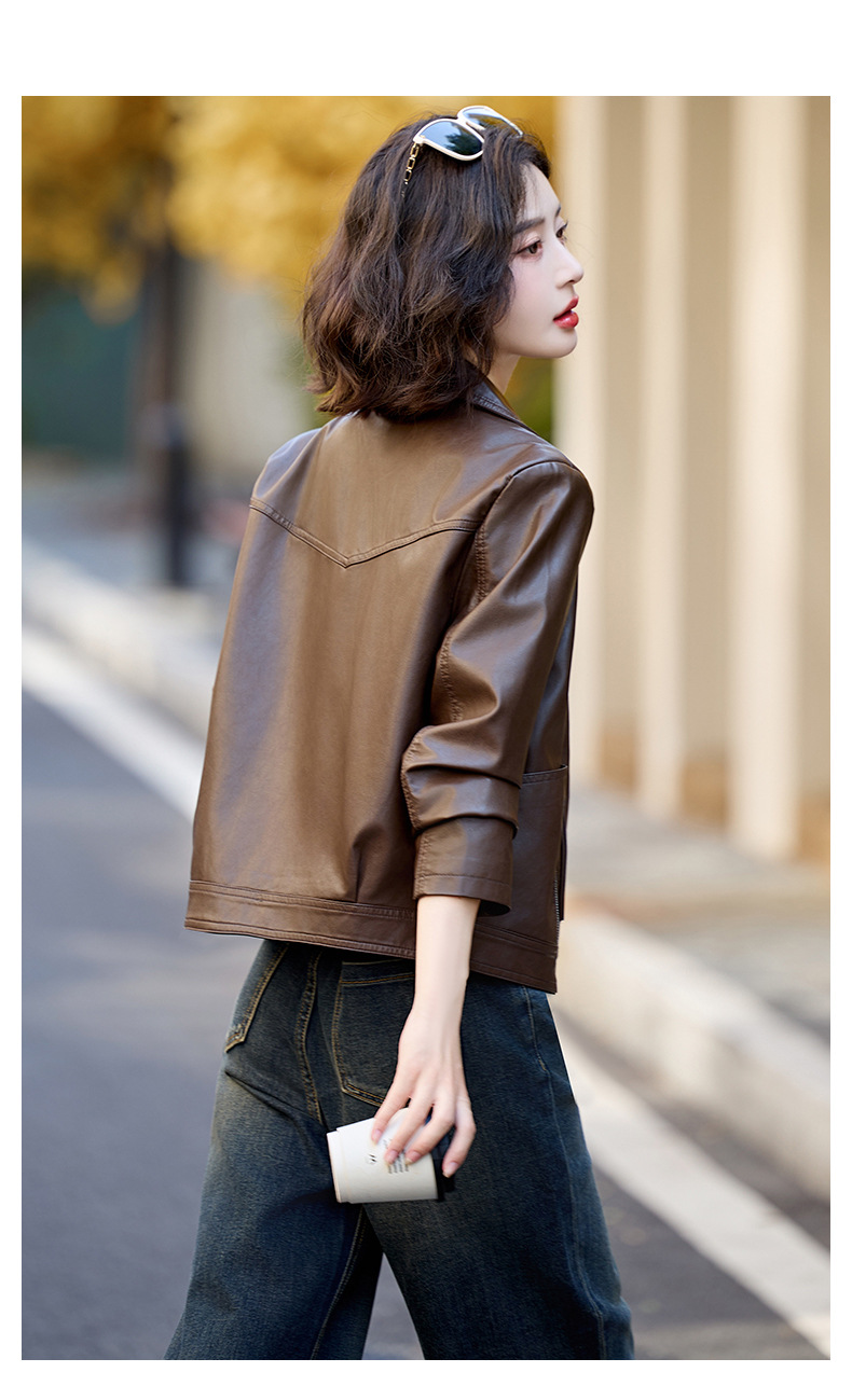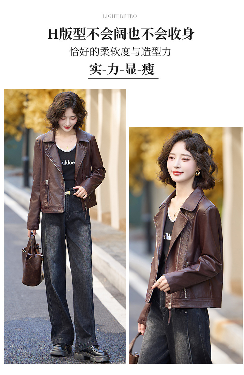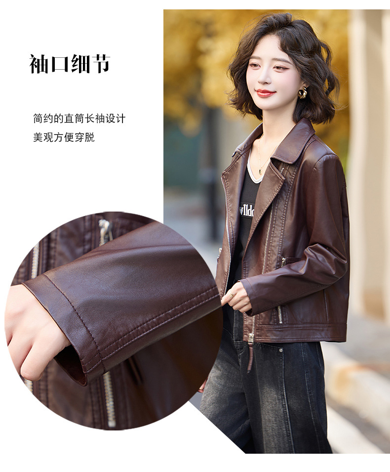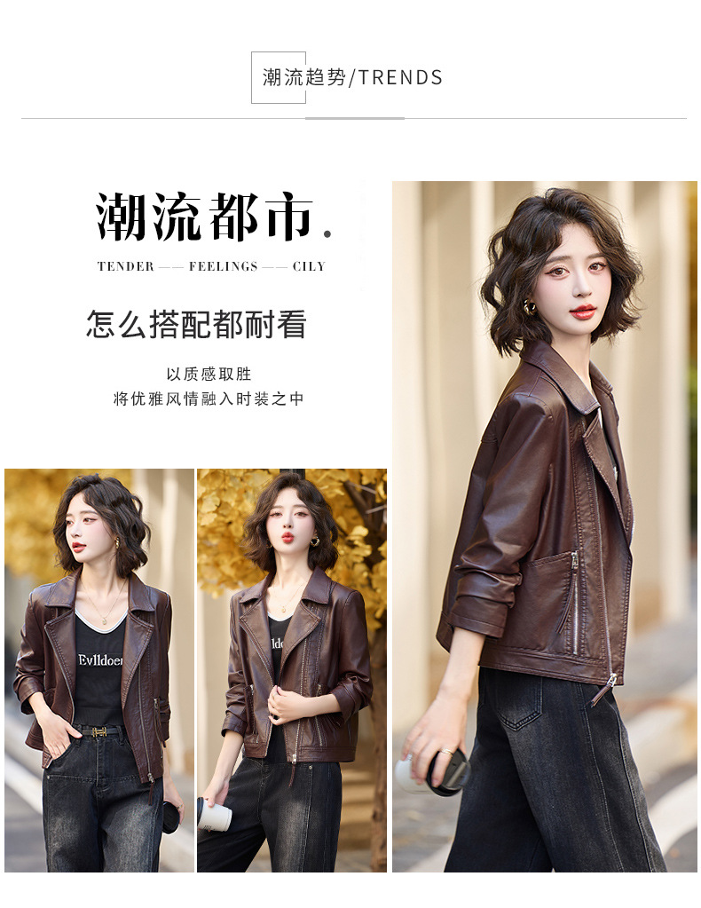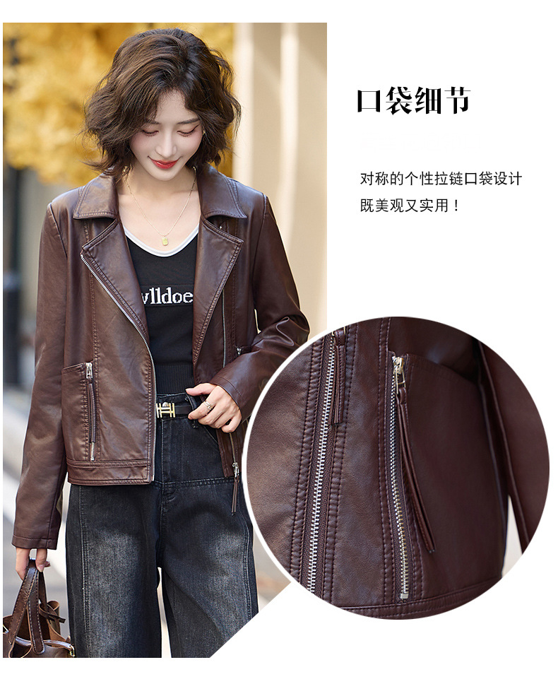 패션 봄과 가을 새로운 짧은 캐주얼 재킷 패션 오토바이 재킷 여성 가죽 외부 타워스토어 가기