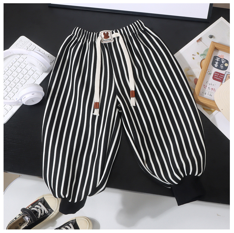 한국 스타일 소년 바지 2024 가을, 겨울 새로운 스타일 클래스 A 스트라이프 바지 패션 아기 어린이 캐주얼 바지 스웨트 팬츠 여성