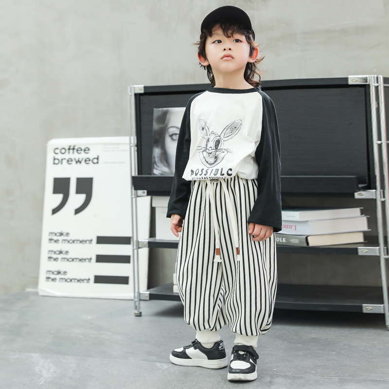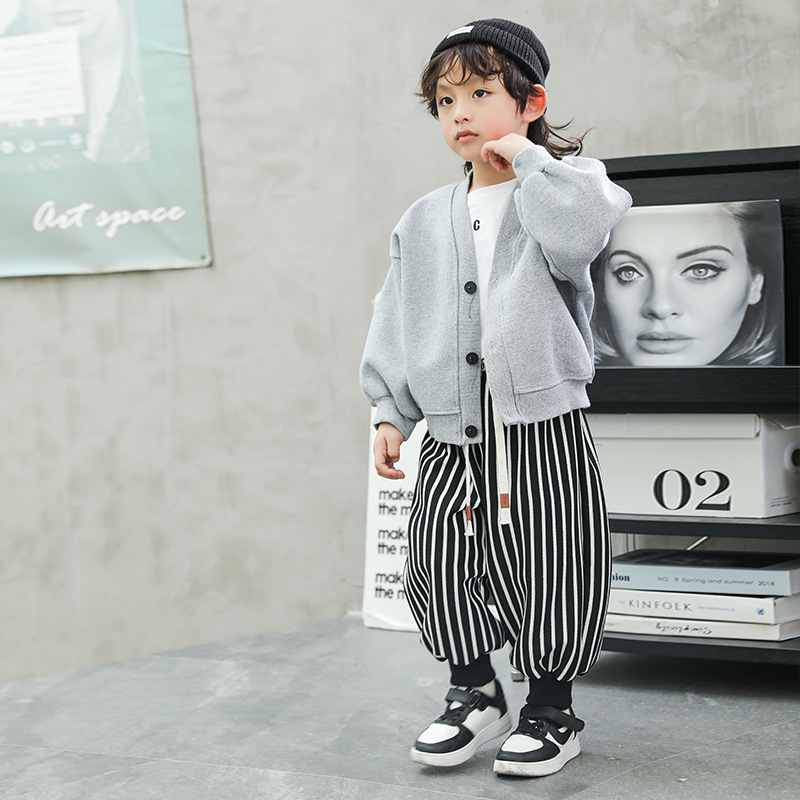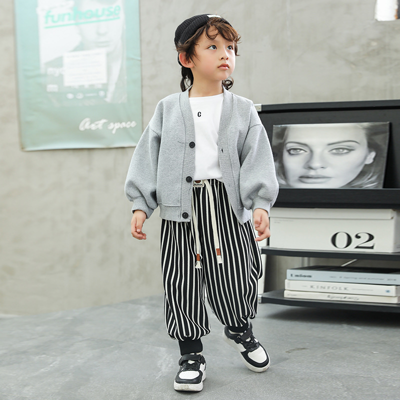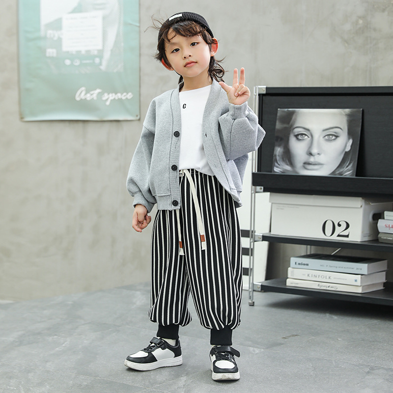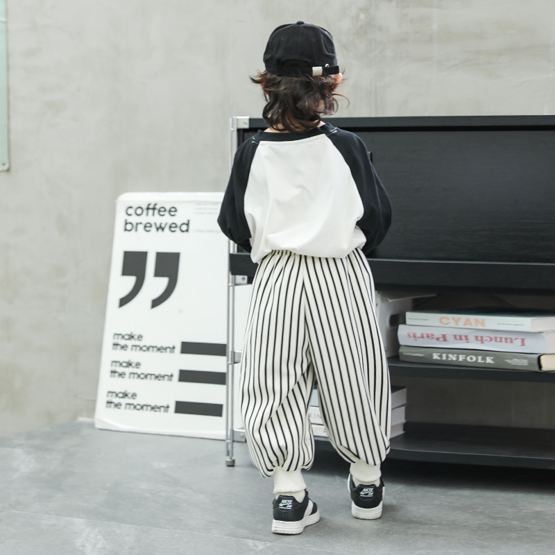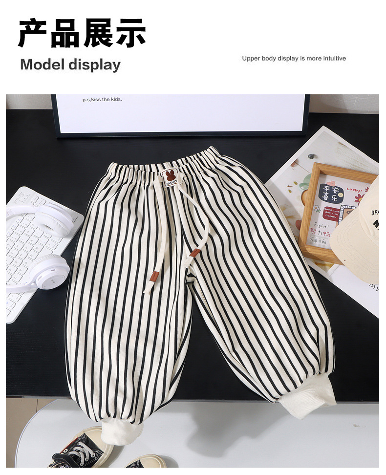 한국 스타일 소년 바지 2024 가을, 겨울 새로운 스타일 클래스 A 스트라이프 바지 패션 아기 어린이 캐주얼 바지 스웨트 팬츠 여성스토어 가기