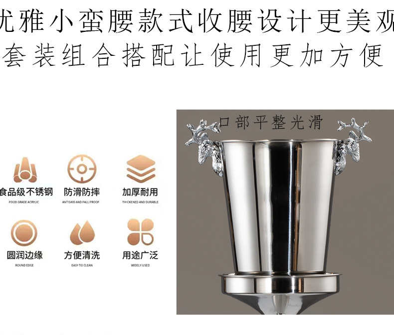 두꺼운 금속 스테인레스 스틸 아이스 버킷 랙 유럽식 앤틀러 샴페인 버킷 해머 패턴 아이스 버킷 홈 바 KTV 배치스토어 가기