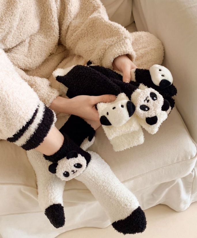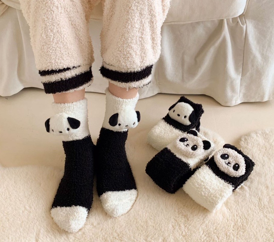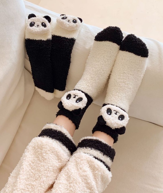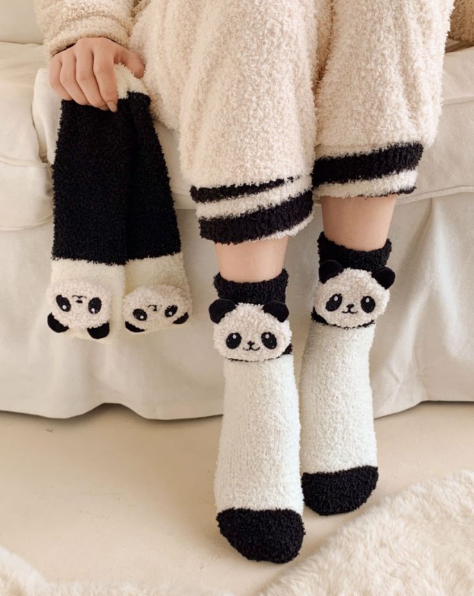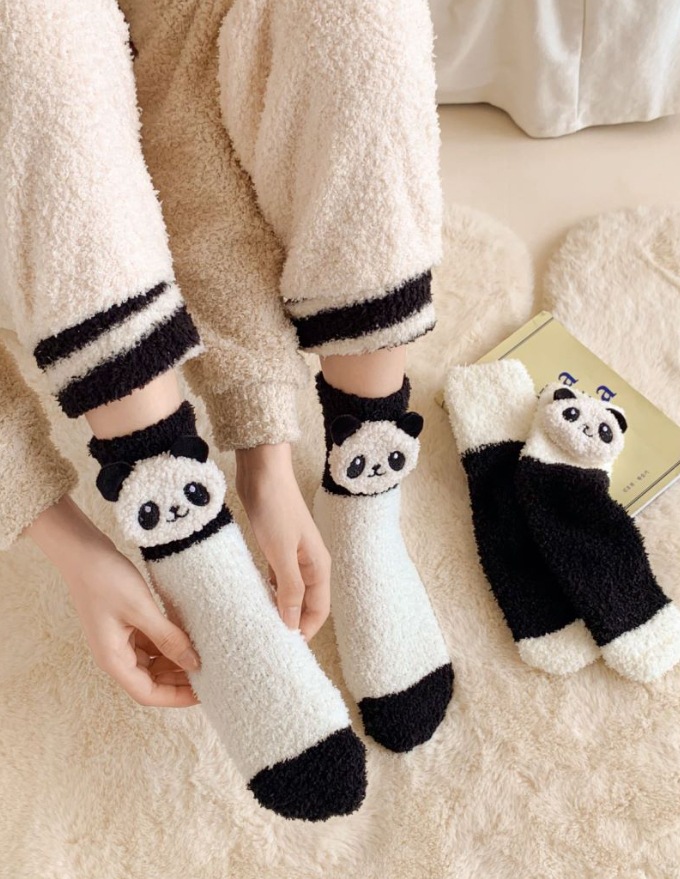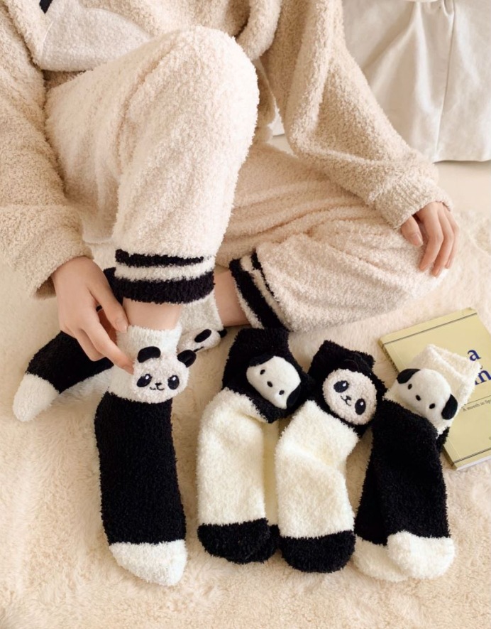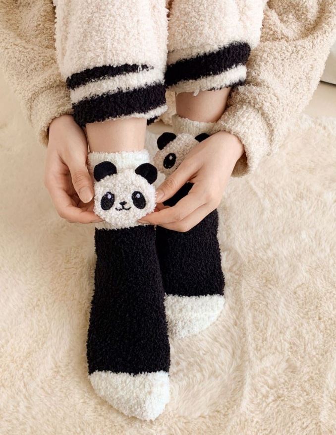 산호 벨벳 양말 여성용 린트가없는 반쪽 벨벳 수면 양말 바닥 흑백 입체 만화 팬더 양말스토어 가기