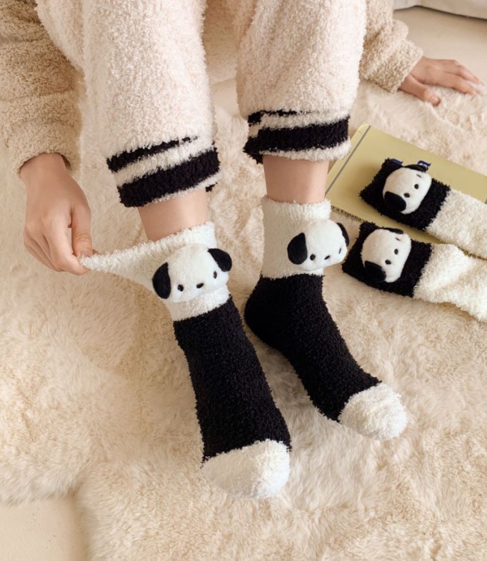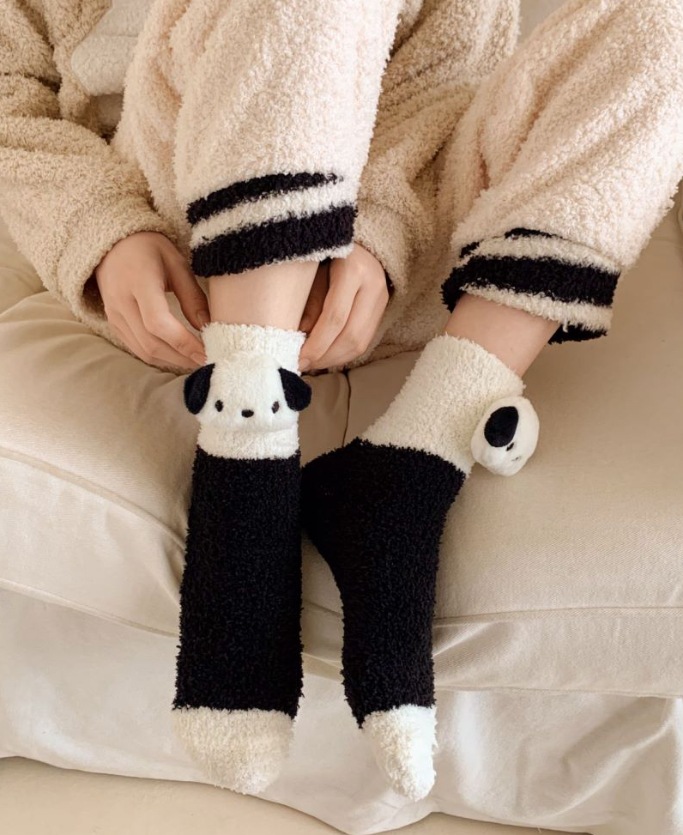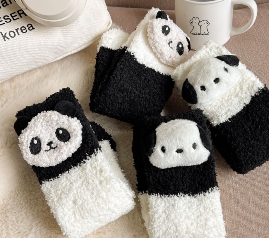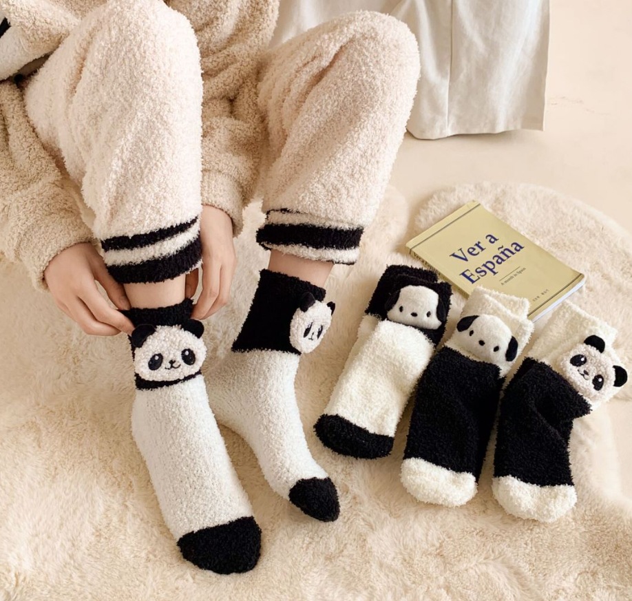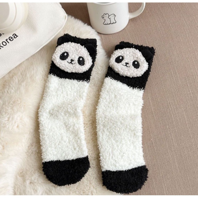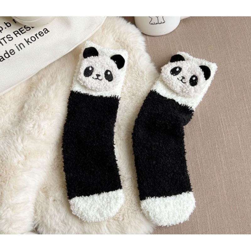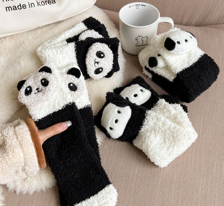 산호 벨벳 양말 여성용 린트가없는 반쪽 벨벳 수면 양말 바닥 흑백 입체 만화 팬더 양말스토어 가기
