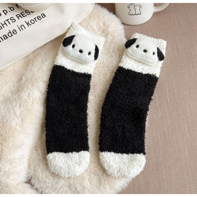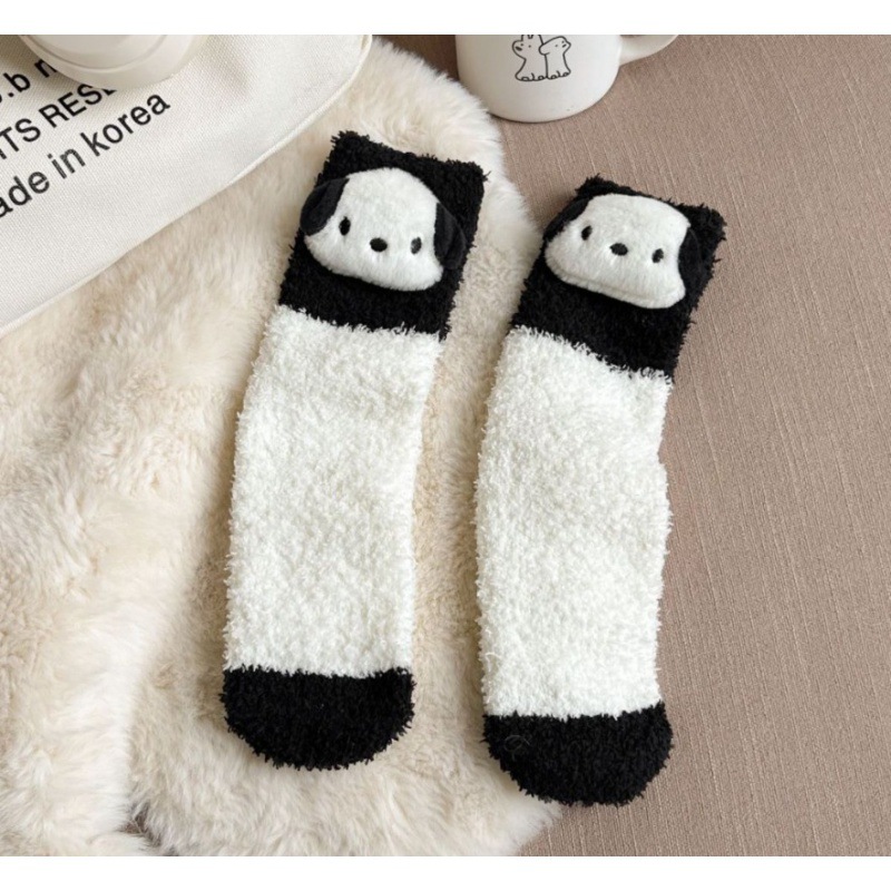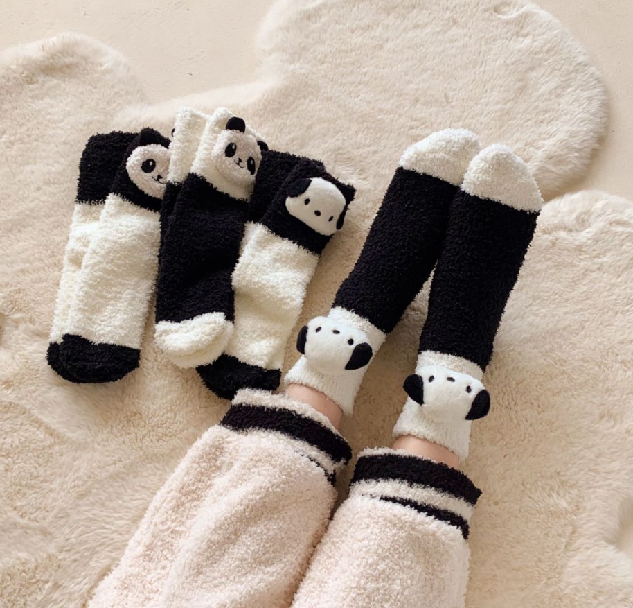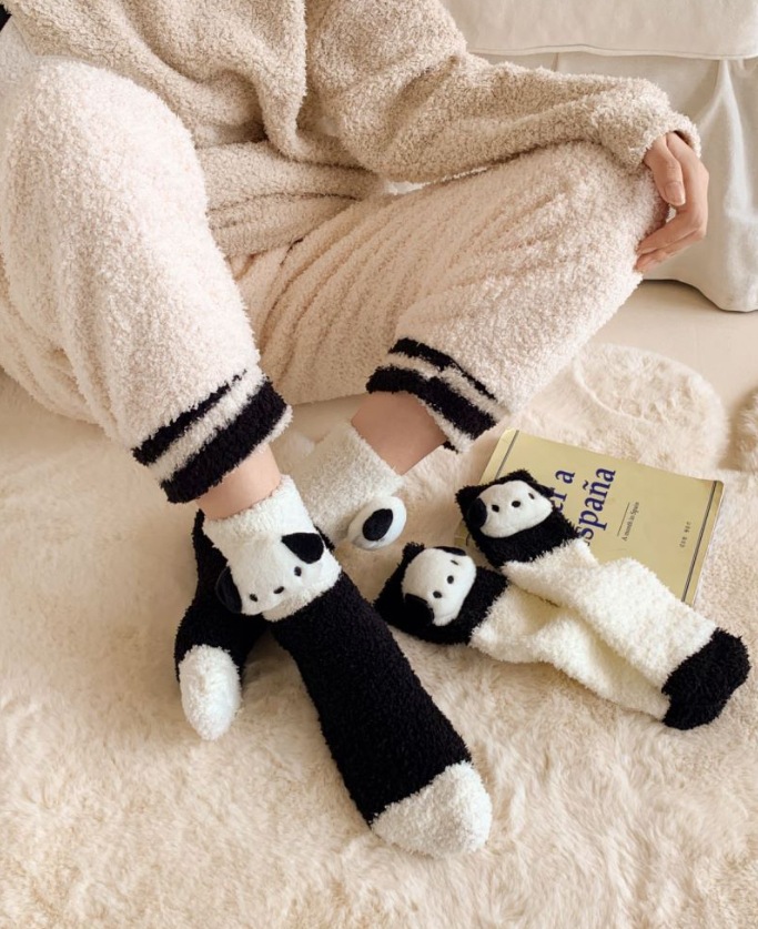 산호 벨벳 양말 여성용 린트가없는 반쪽 벨벳 수면 양말 바닥 흑백 입체 만화 팬더 양말