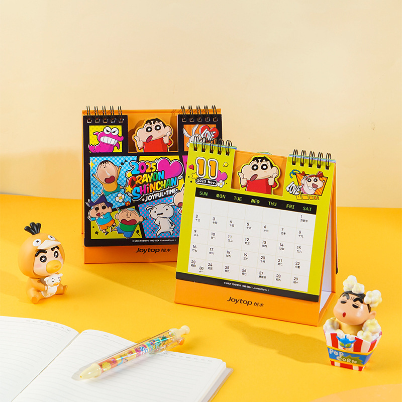 Yuemu 2025 새로운 대만 달력 정품 크레용 작은 새로운 데스크탑 만화 월간 달력 일정 메모 귀여운 달력