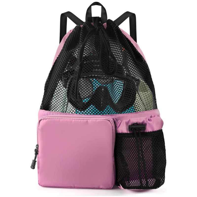 재고 메쉬 드로우 스트링 백팩 신발 가방 수영 로프 가방 핸들 체육관 비치 여행 포켓 비치 백