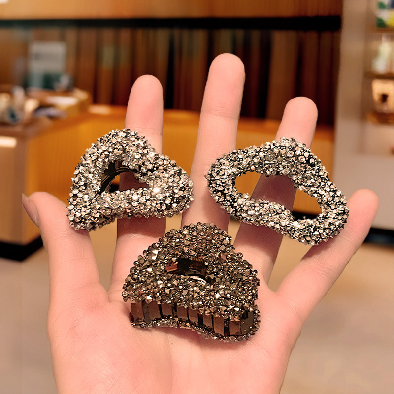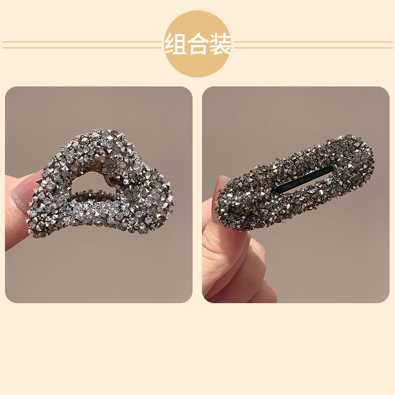 라인스톤 그랩 클립 기질 하프 타이 헤어핀 고급 센스 러브 헤어핀 2024 새로운 사이드 클립 뱅 헤어핀 헤어 액세서리