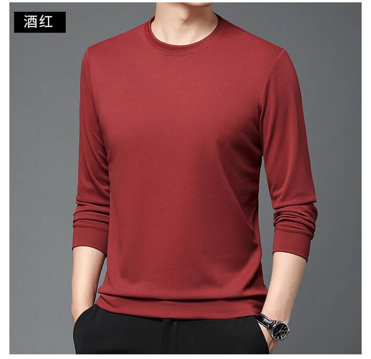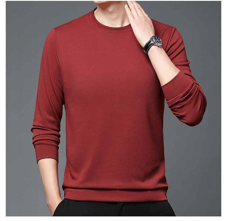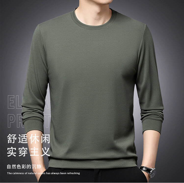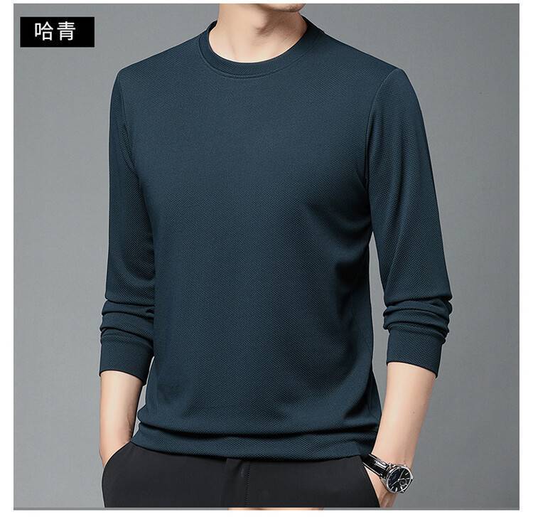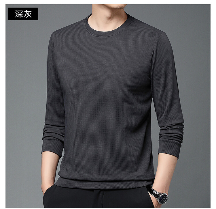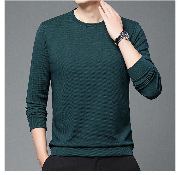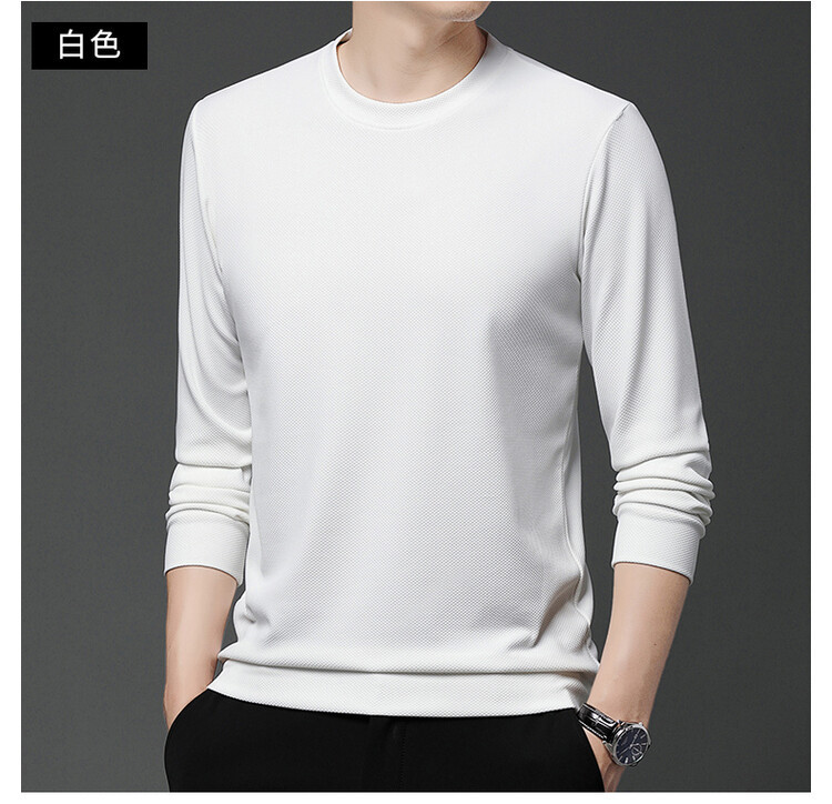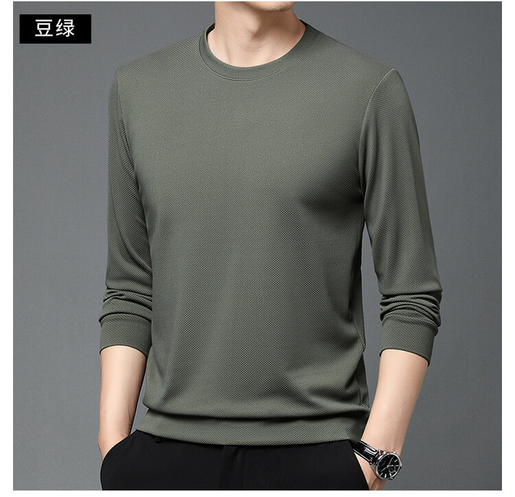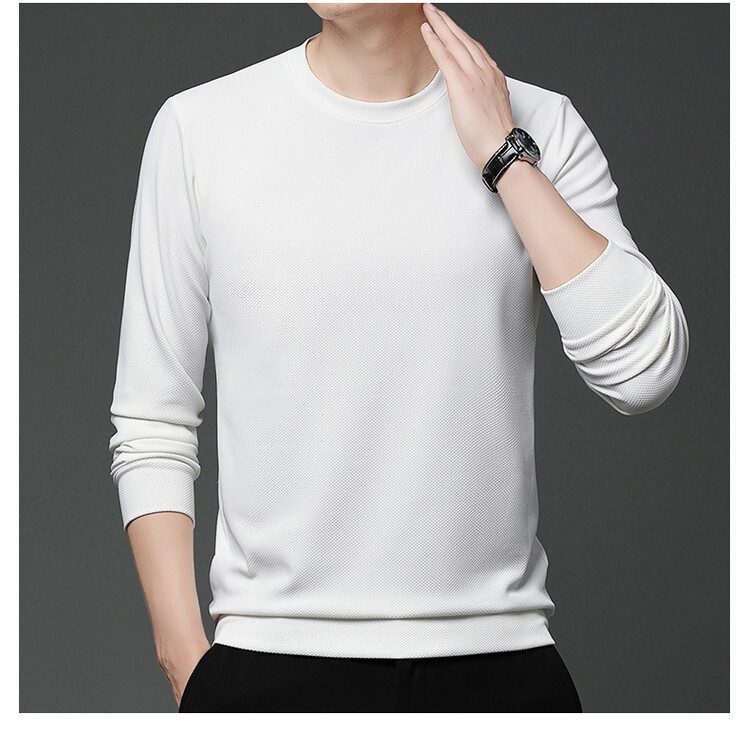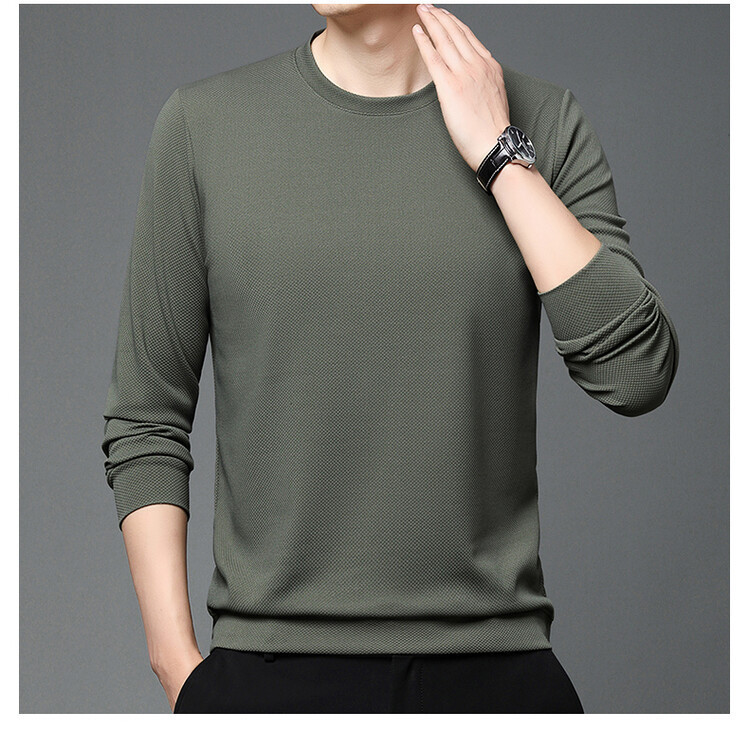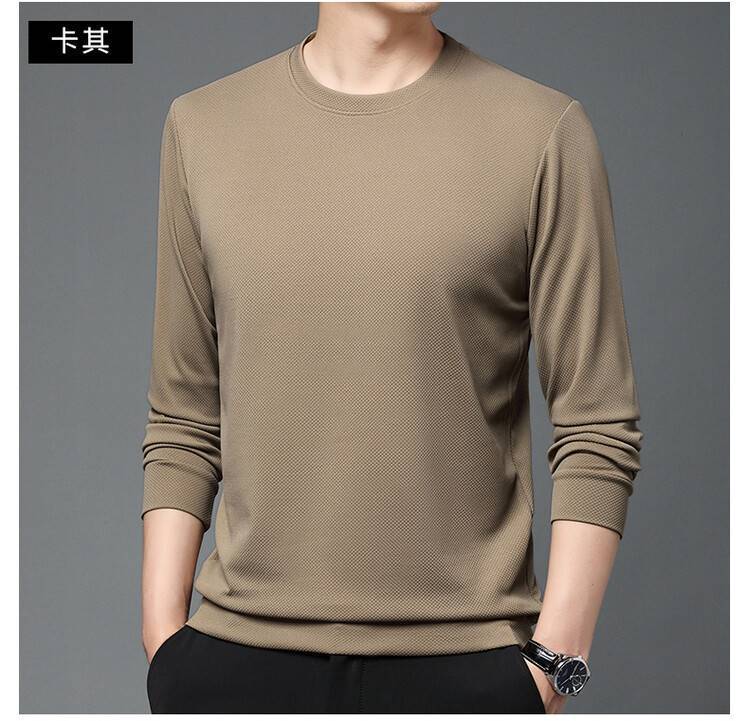 가을과 겨울 새로운 와플 크루 넥 긴팔 티셔츠 남성용 솔리드 컬러 캐주얼 올 매치 티셔츠 남성용 스웨터베이스 셔츠