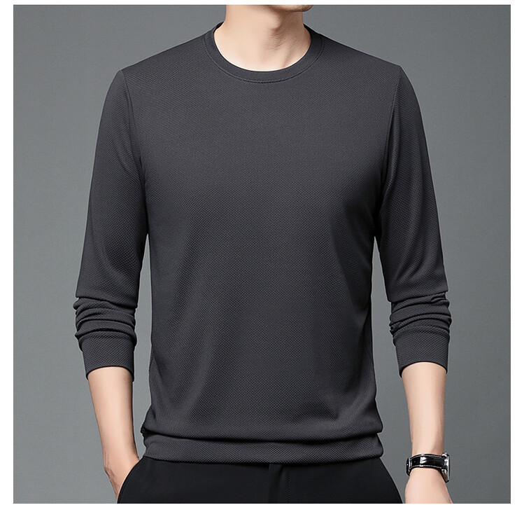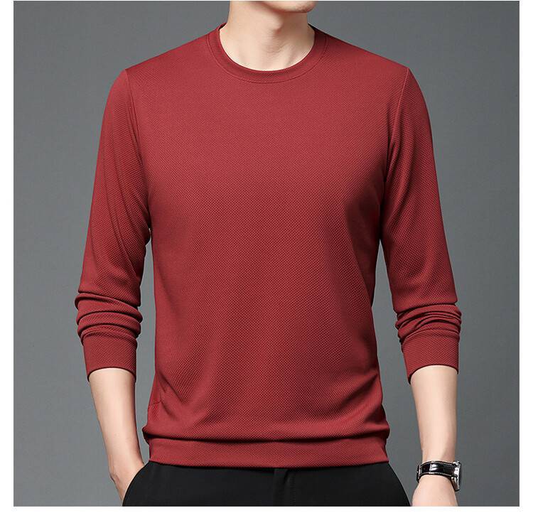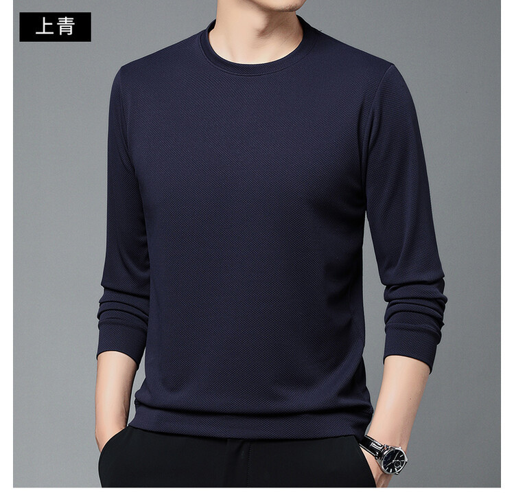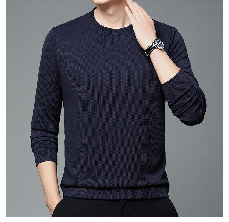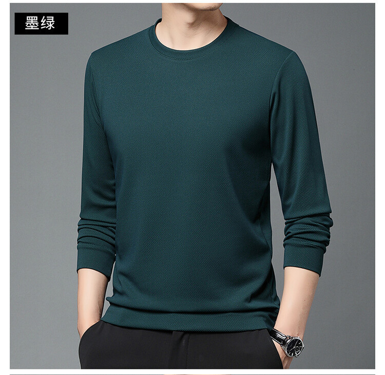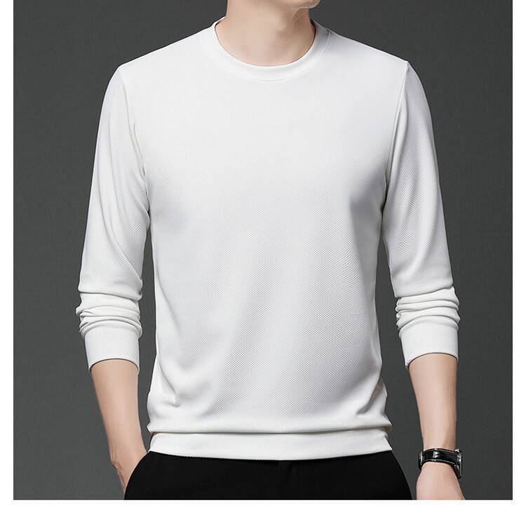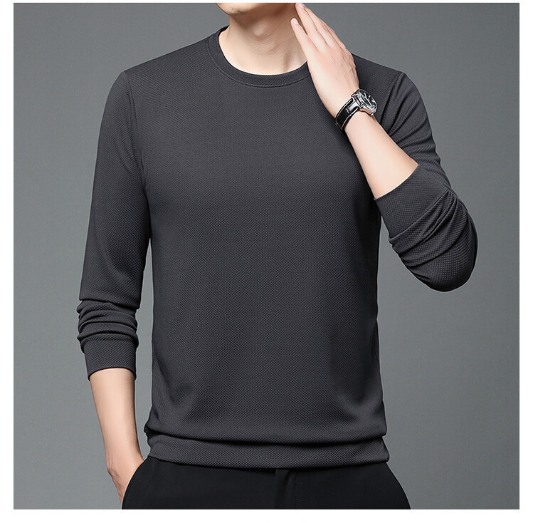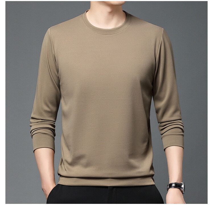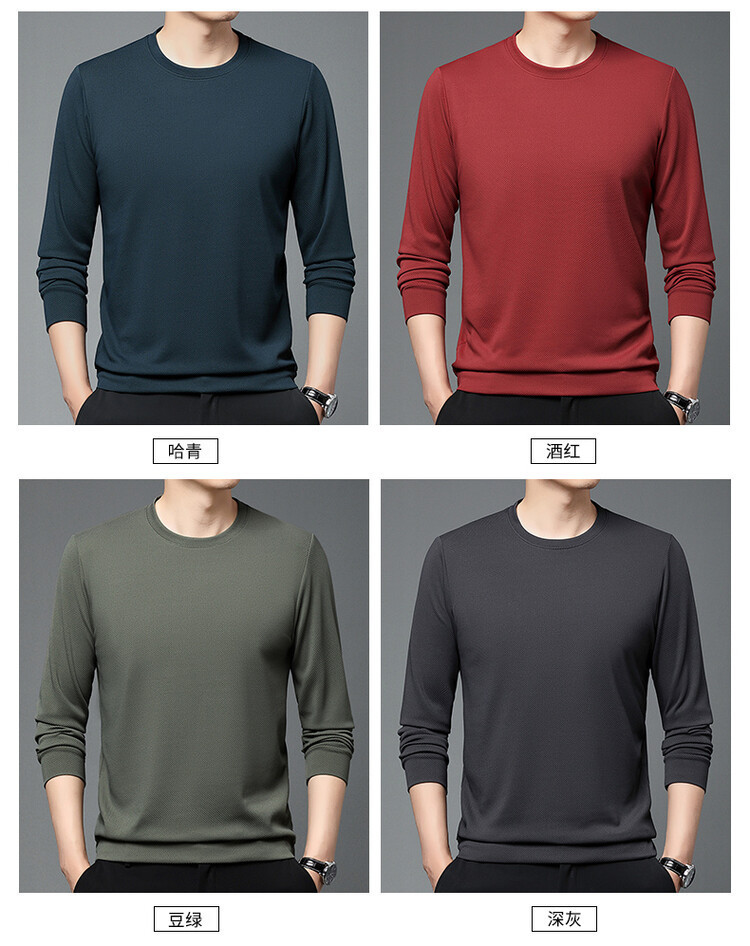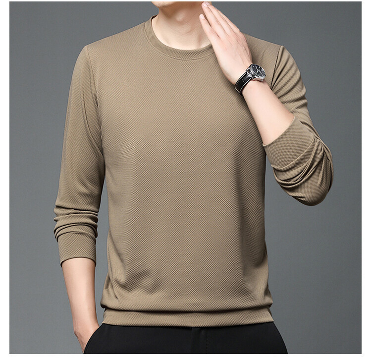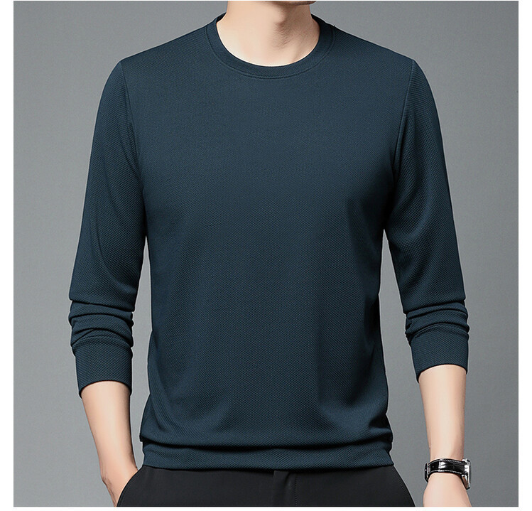 가을과 겨울 새로운 와플 크루 넥 긴팔 티셔츠 남성용 솔리드 컬러 캐주얼 올 매치 티셔츠 남성용 스웨터베이스 셔츠