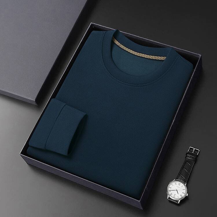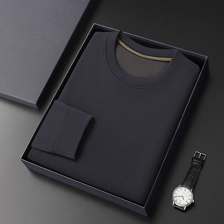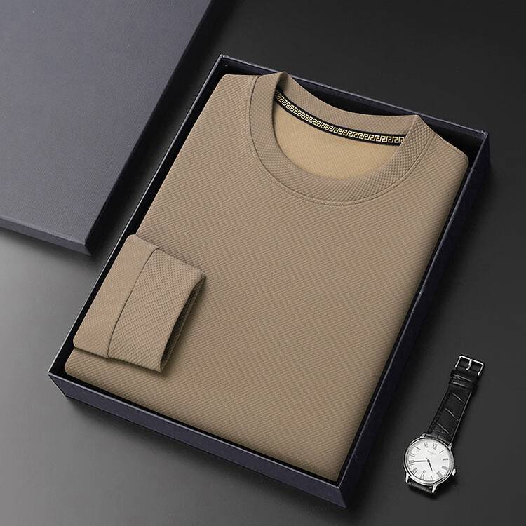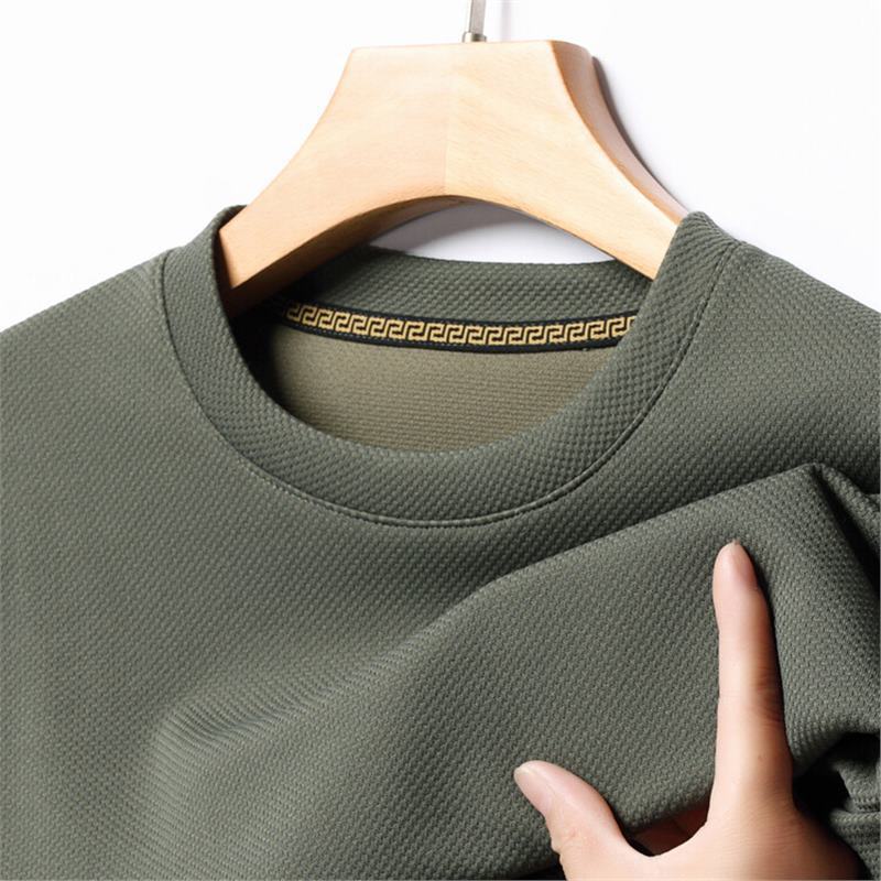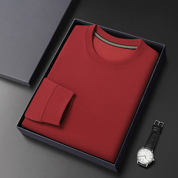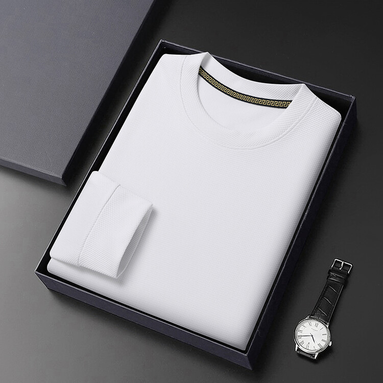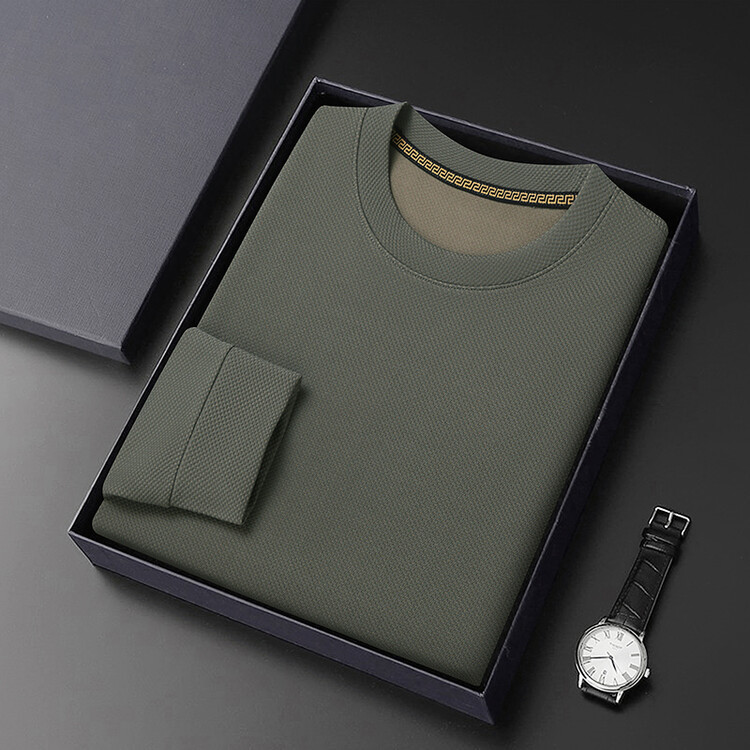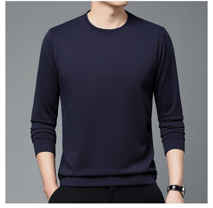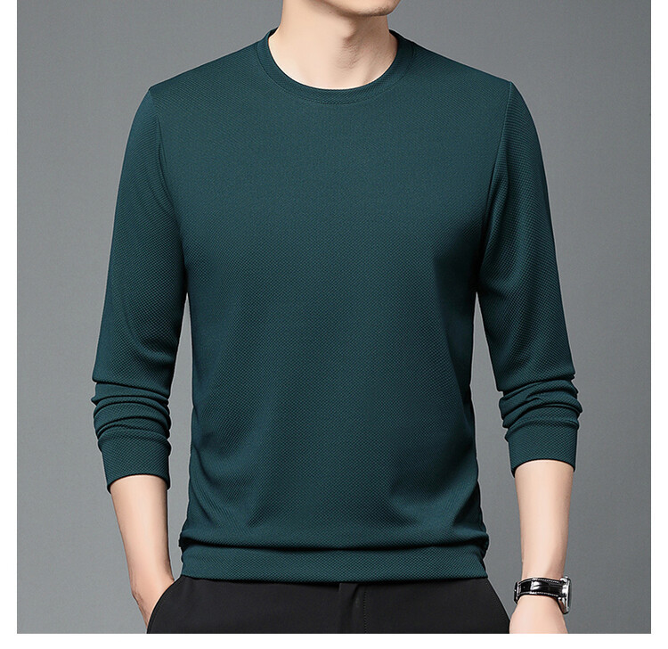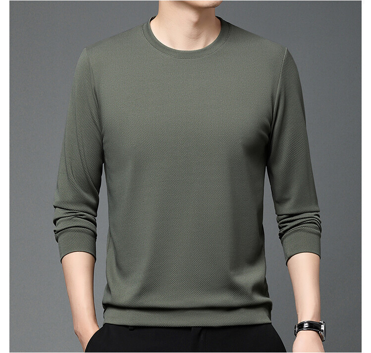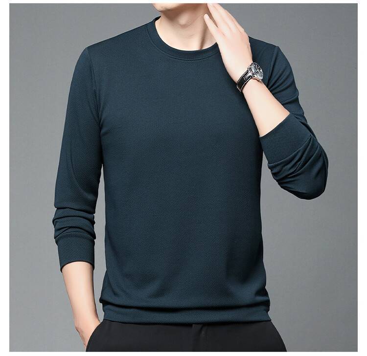 가을과 겨울 새로운 와플 크루 넥 긴팔 티셔츠 남성용 솔리드 컬러 캐주얼 올 매치 티셔츠 남성용 스웨터베이스 셔츠