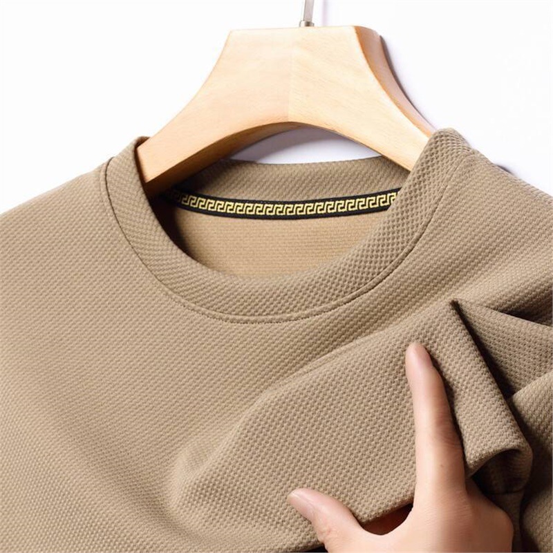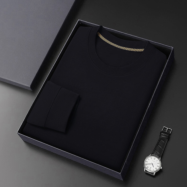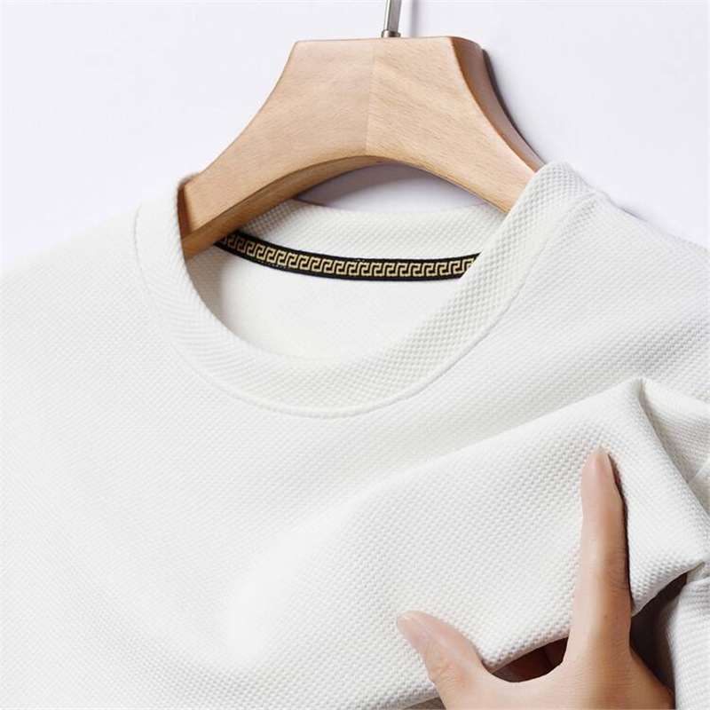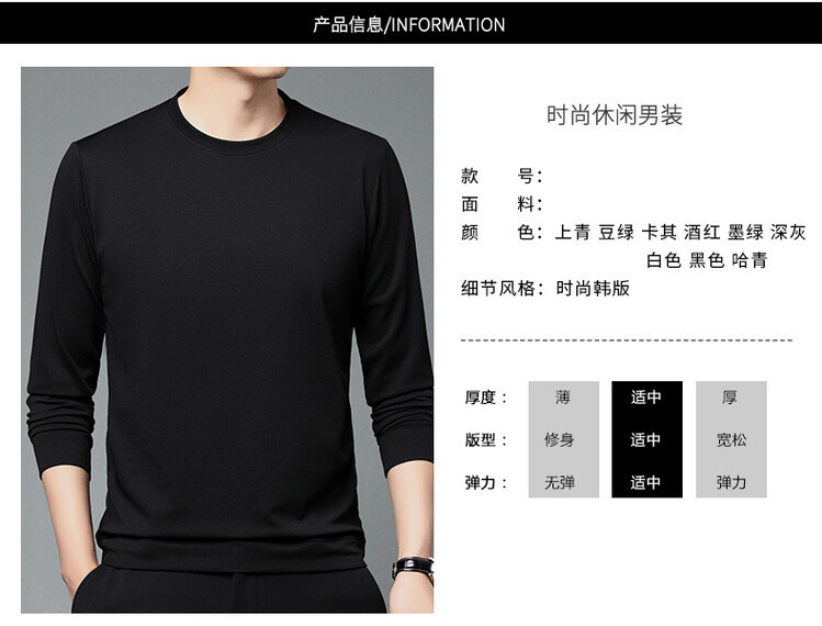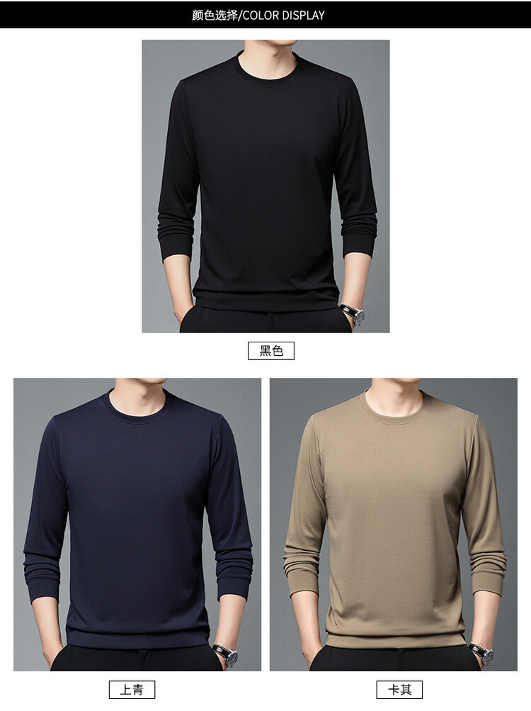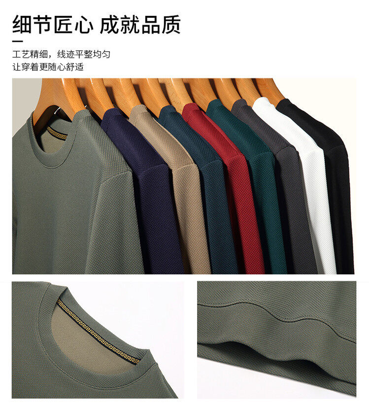 가을과 겨울 새로운 와플 크루 넥 긴팔 티셔츠 남성용 솔리드 컬러 캐주얼 올 매치 티셔츠 남성용 스웨터베이스 셔츠스토어 가기