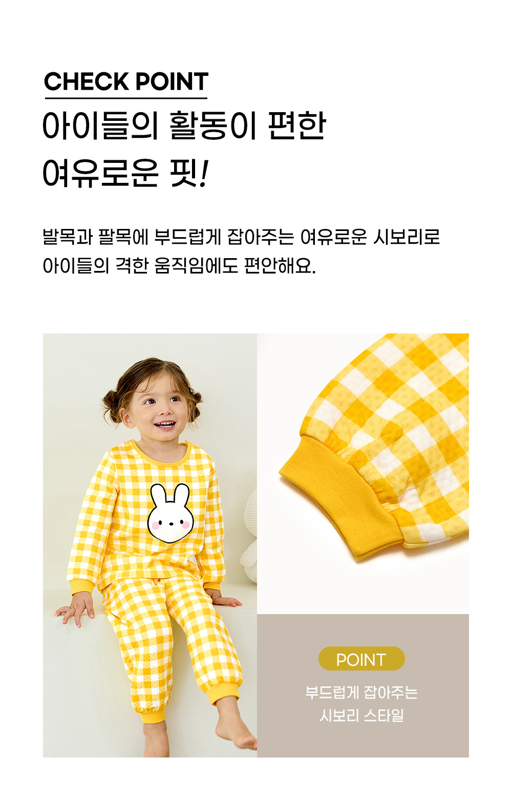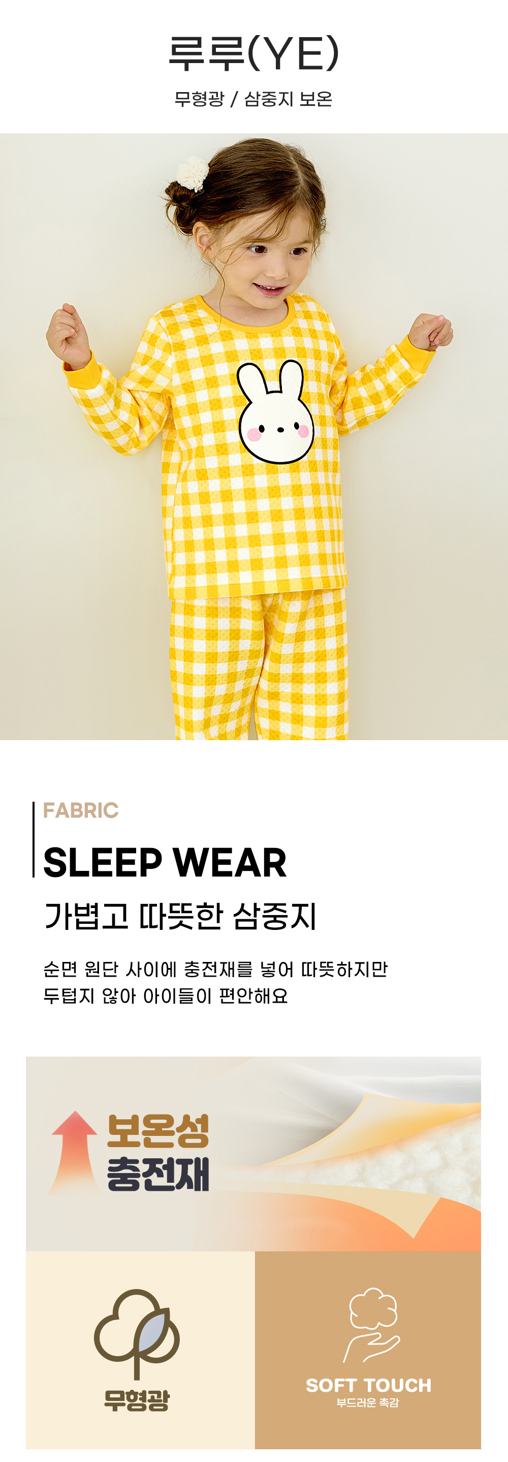• 노란색 체크무늬 토끼(3겹 보온복 겉감: 면 100%)