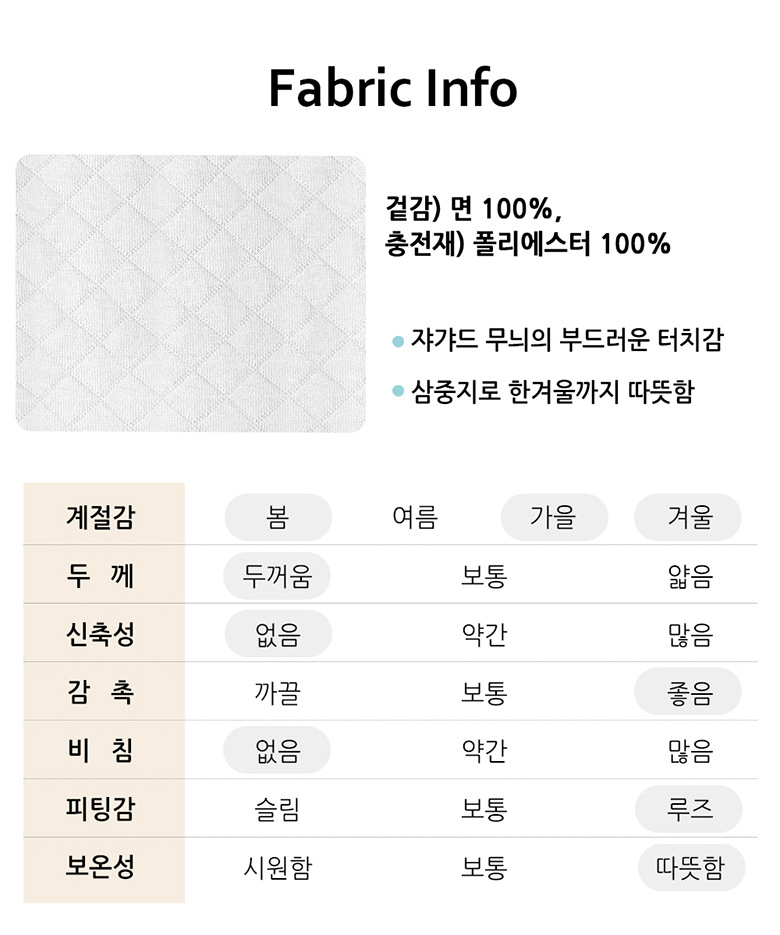 • 그린베어(3겹 보온복 겉감: 면 100%)