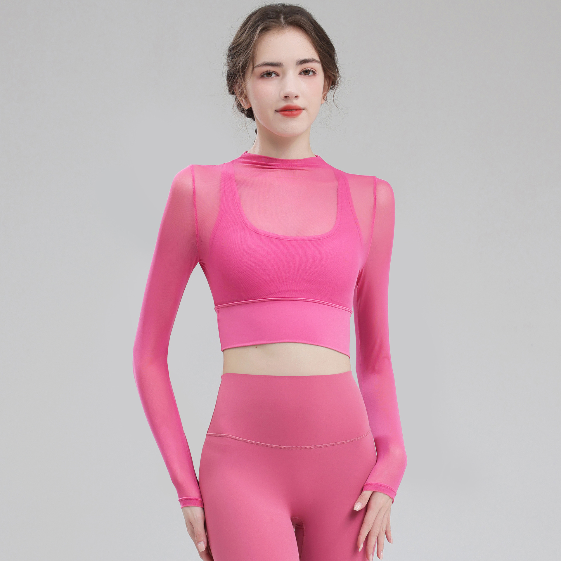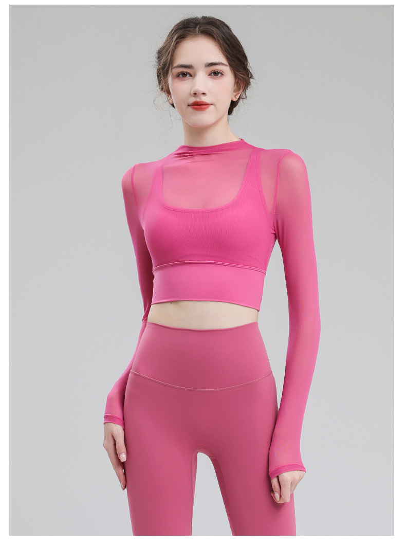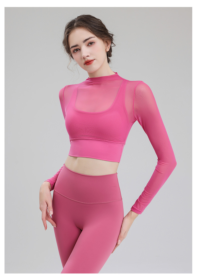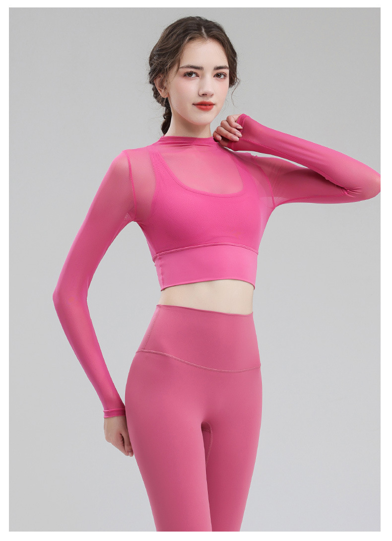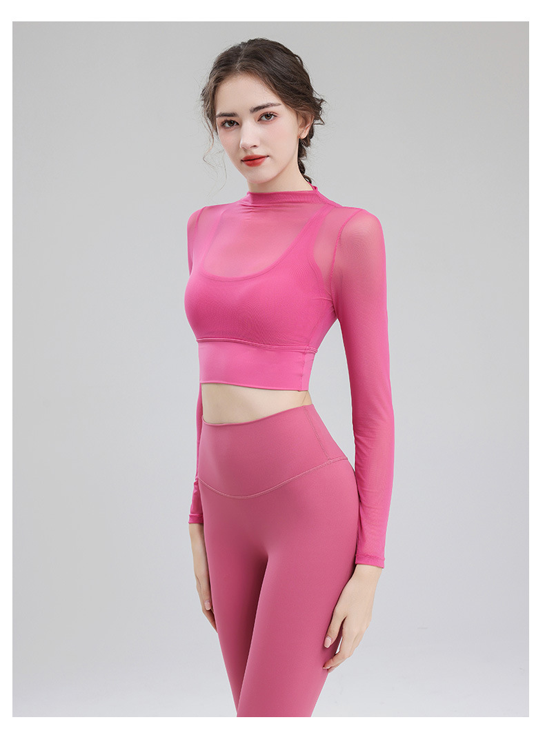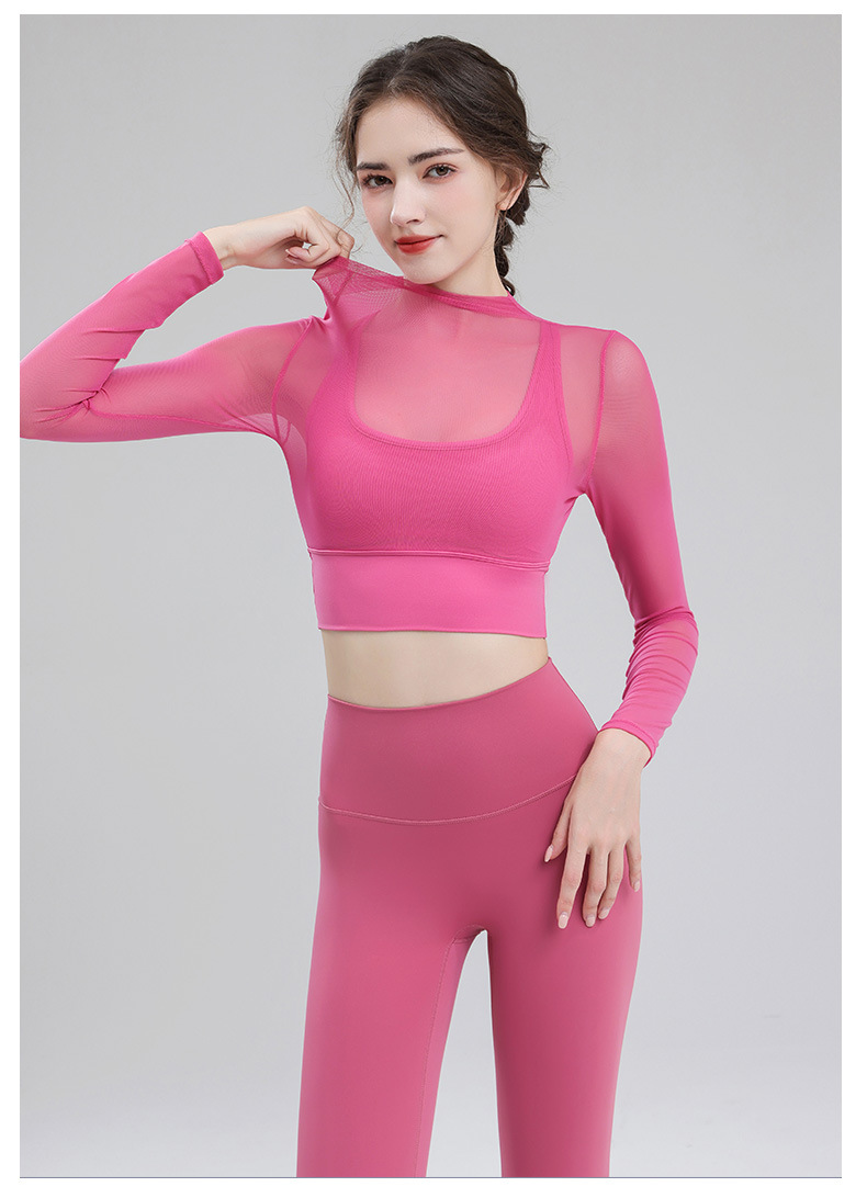 요가 의류 여성용 긴팔 가을 겨울 달리기 메쉬 하이 엔드 타이트 의류 전문 체육관 의류 세트 스포츠 탑