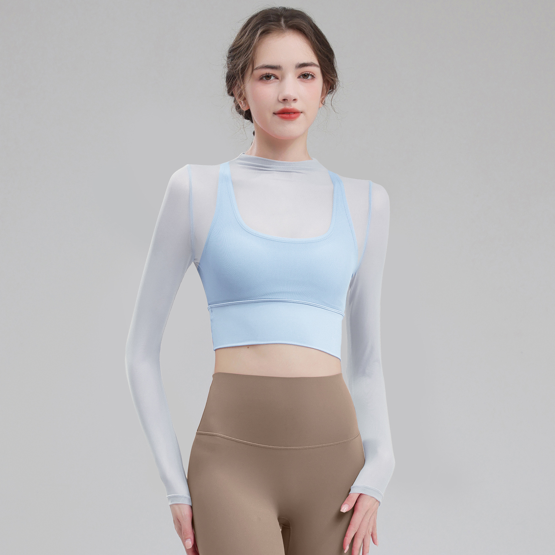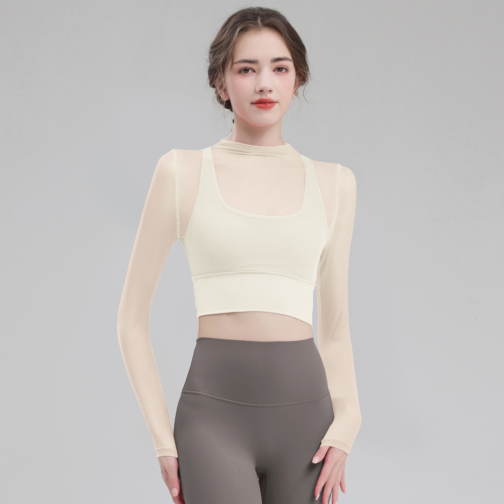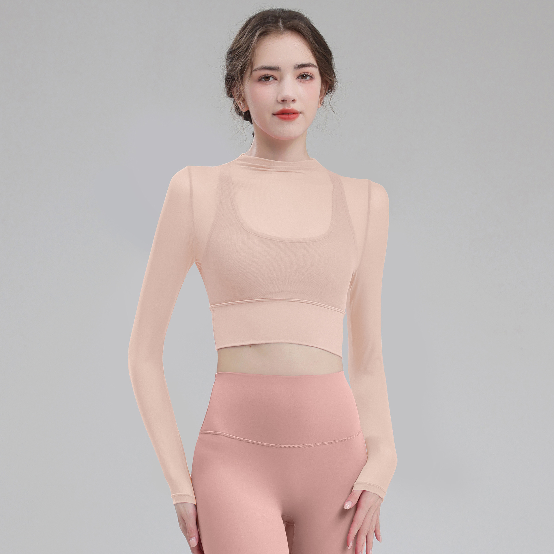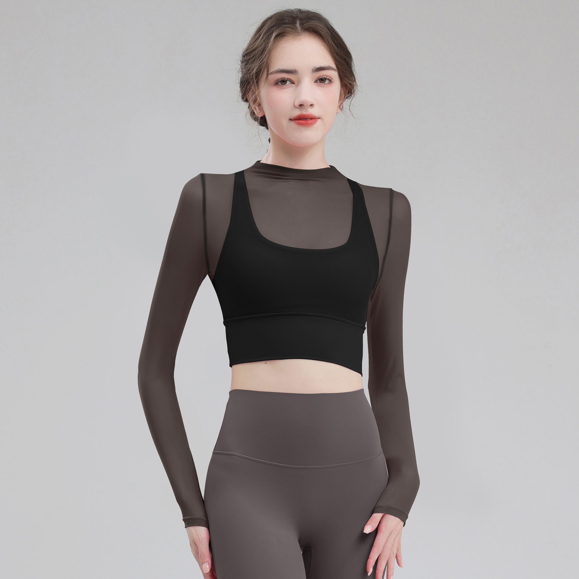 요가 의류 여성용 긴팔 가을 겨울 달리기 메쉬 하이 엔드 타이트 의류 전문 체육관 의류 세트 스포츠 탑