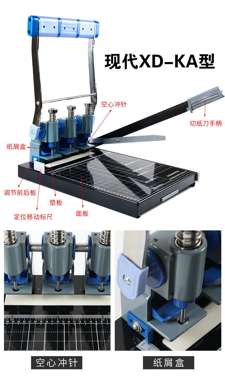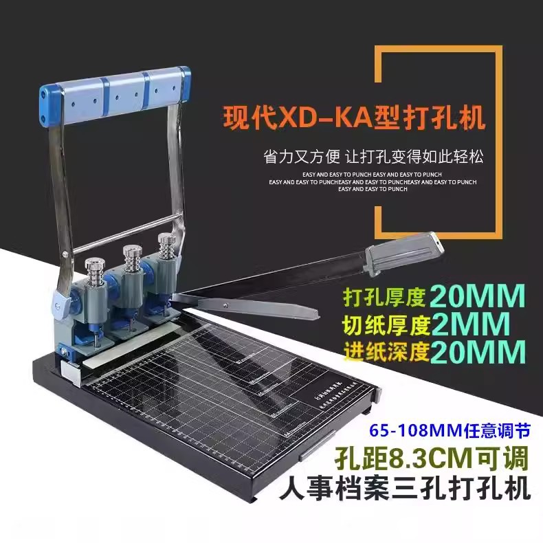인사 파일 3홀 펀치기 현대 XD-KA 헤비듀티 펀치 및 종이 바인딩 기계 구멍 간격 조절 가능 와이어 바인딩