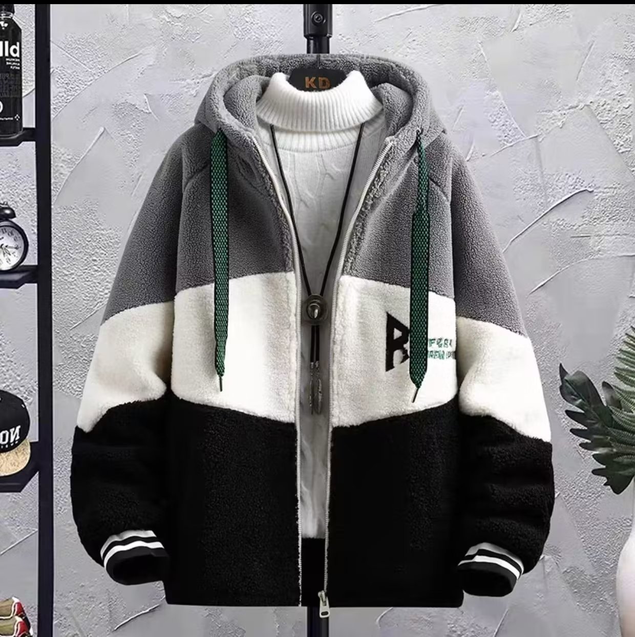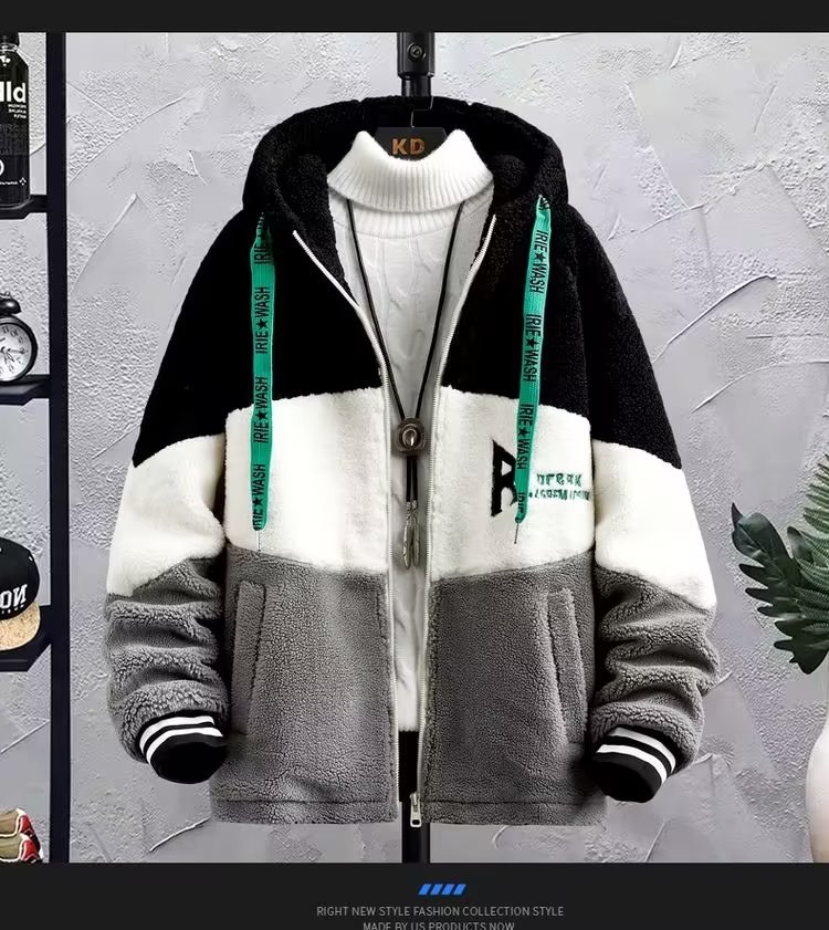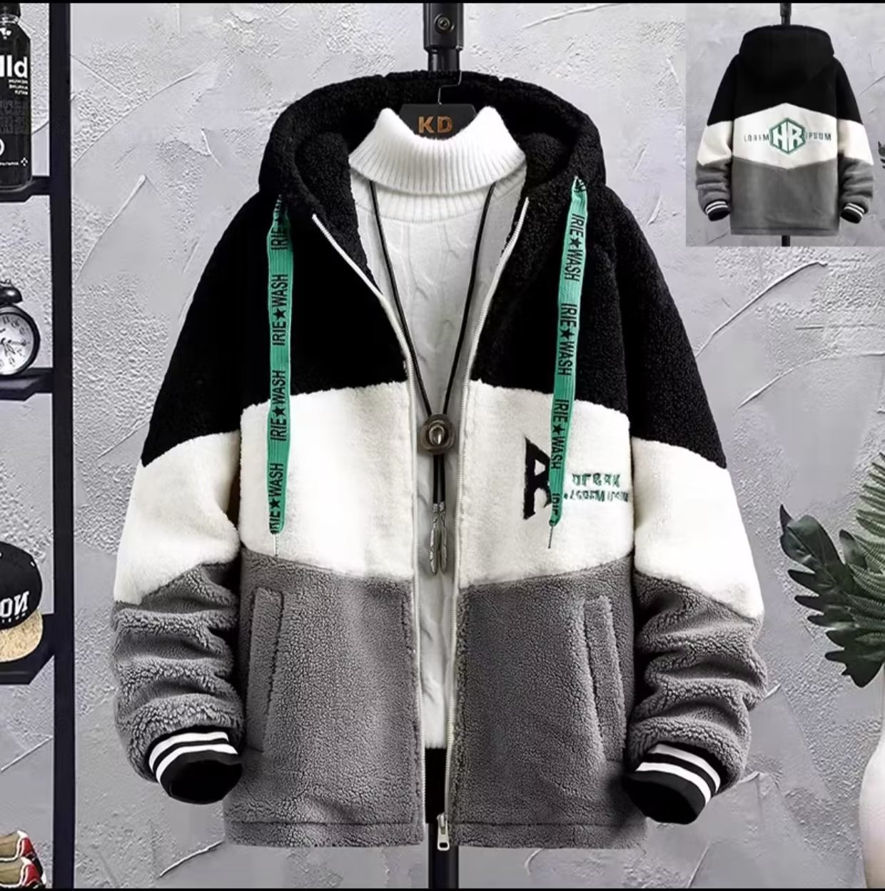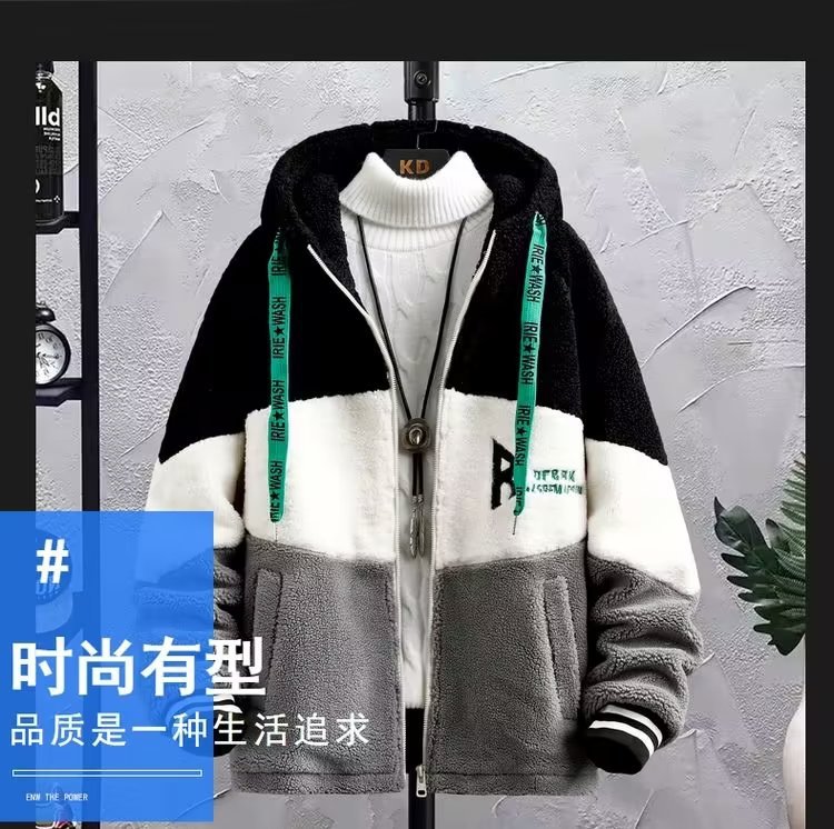 양가죽 자켓 남자 유행 느슨한 플러스 사이즈 가을과 겨울 학생 두꺼운 후드 자켓 청소년 야구 세트스토어 가기