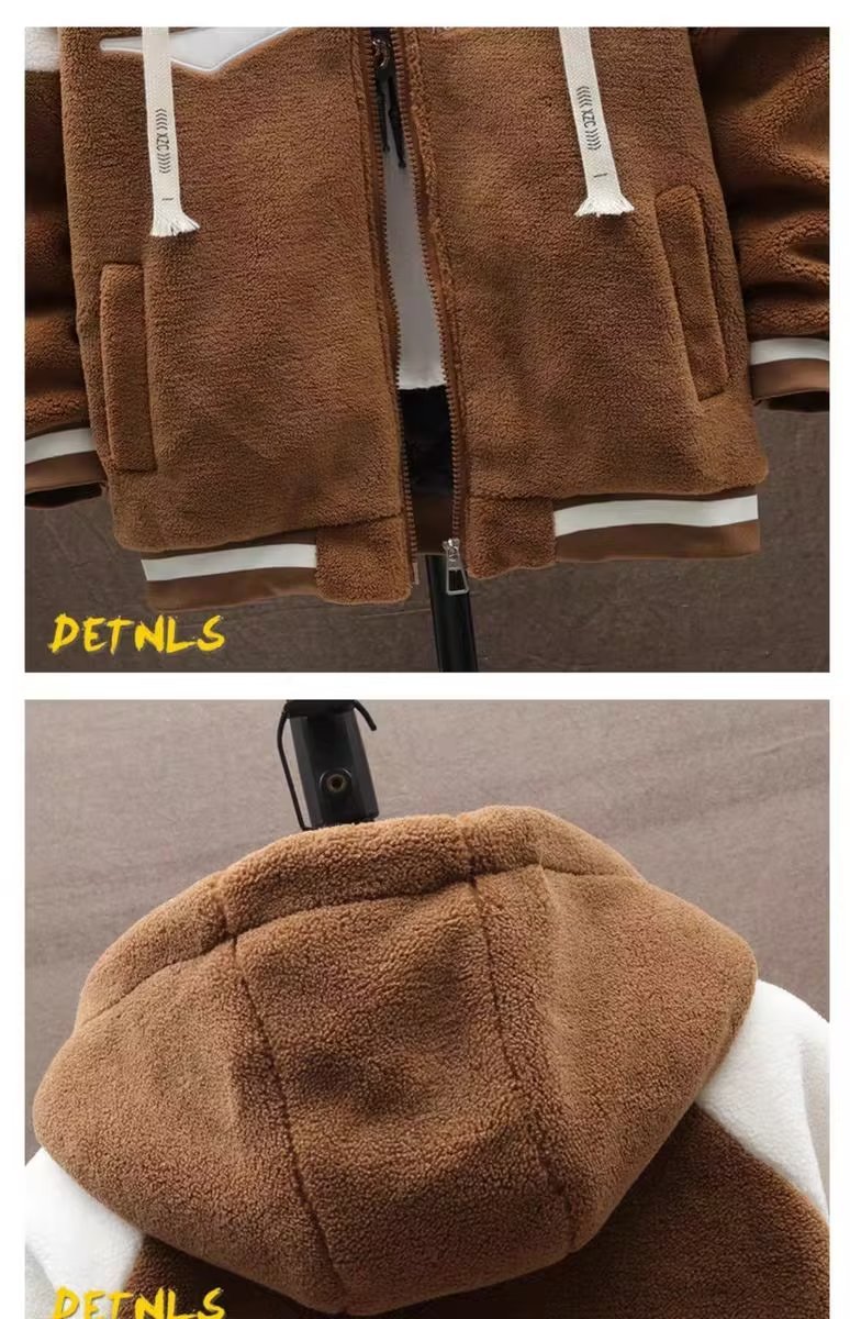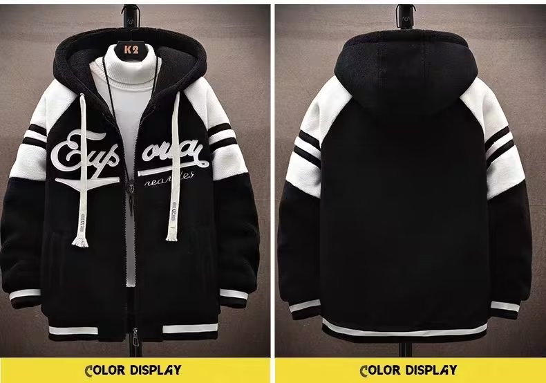 양가죽 자켓 남자 유행 느슨한 플러스 사이즈 가을과 겨울 학생 두꺼운 후드 자켓 청소년 야구 세트