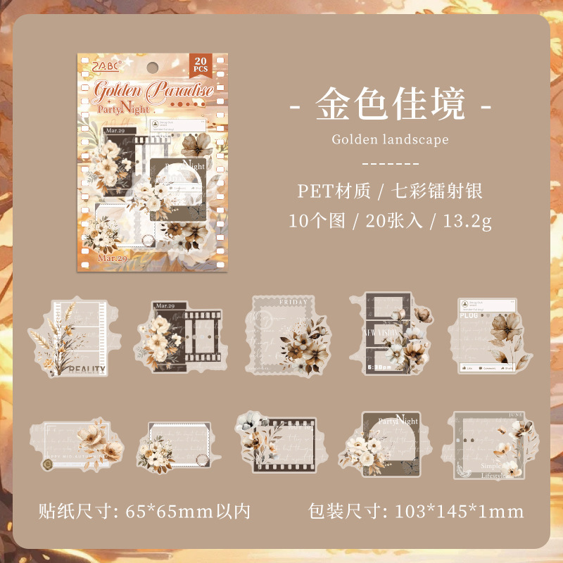 패턴 제인 샤프트 레이저 핫 실버 스티커 가방 투명 방수 애완 동물 손 스티커 국경 간 복고풍 식물 꽃 스티커스토어 가기
