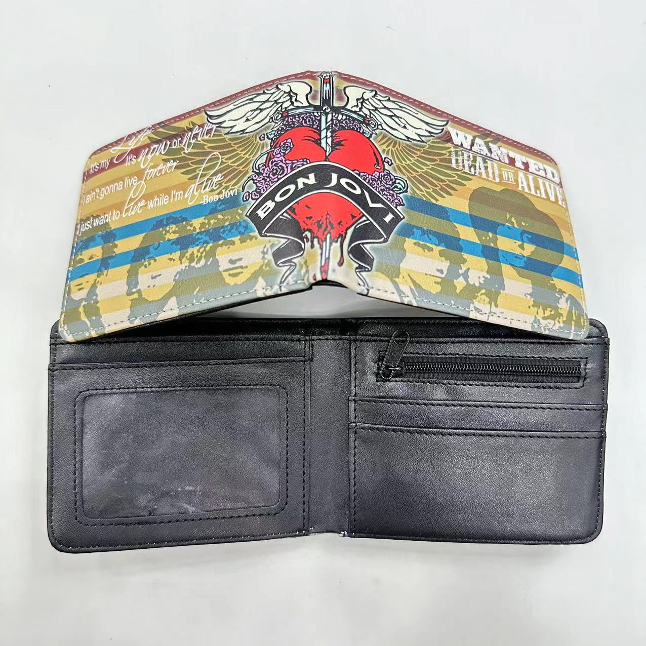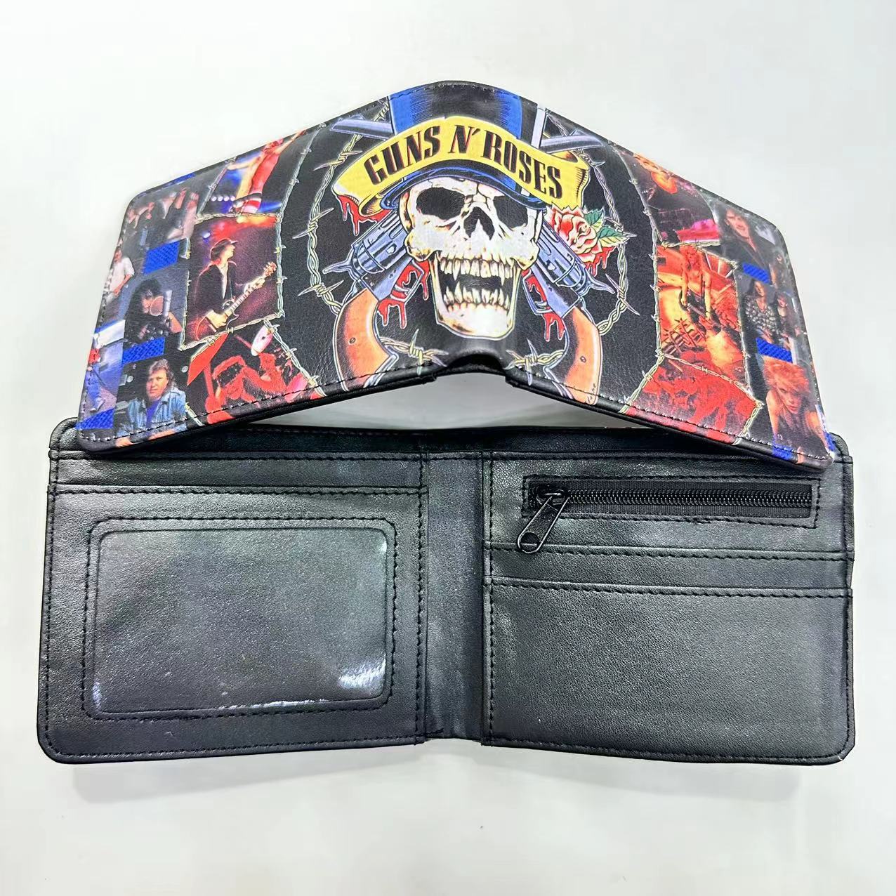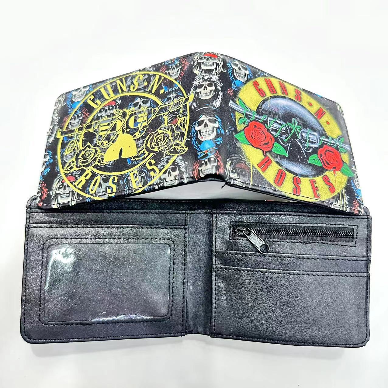음악 주변 금속 록 밴드 짧은 2 배 지갑 고딕 펑크 동전 지갑 지갑