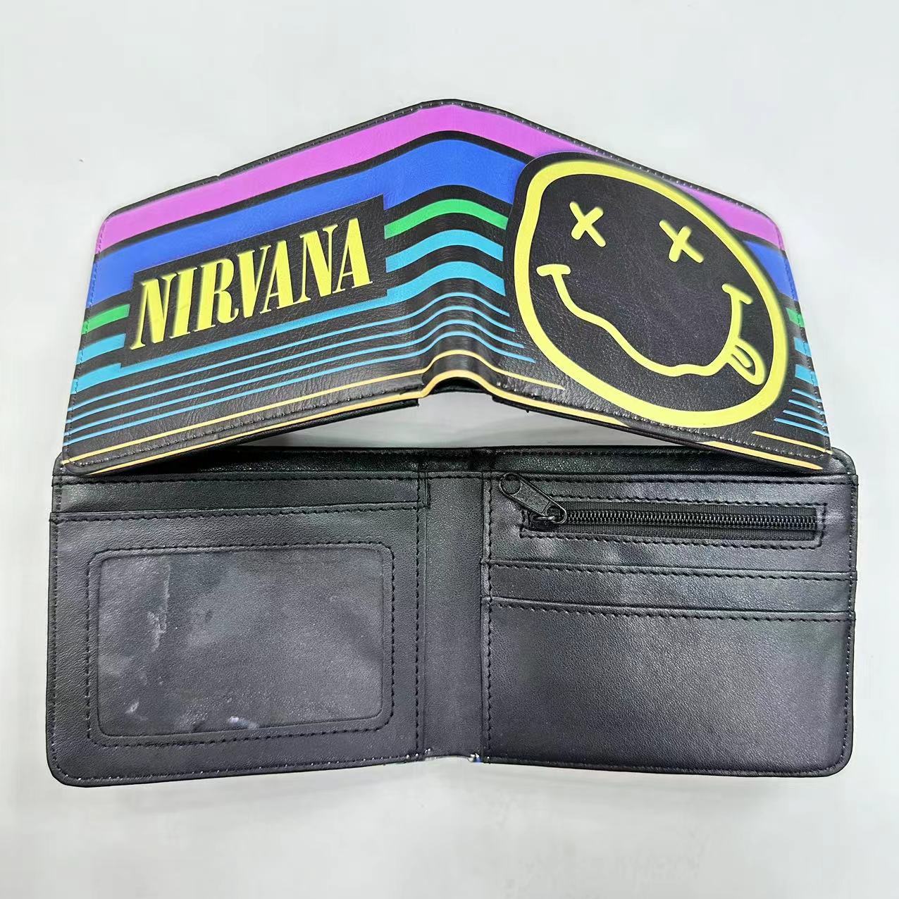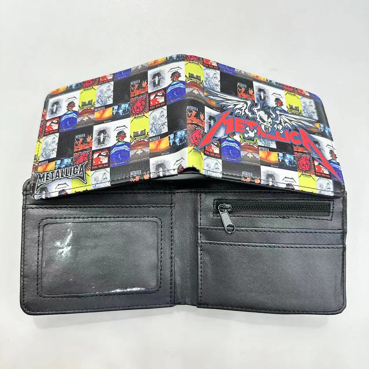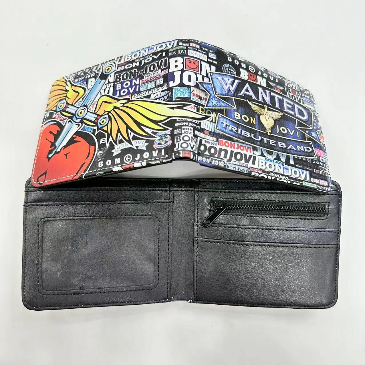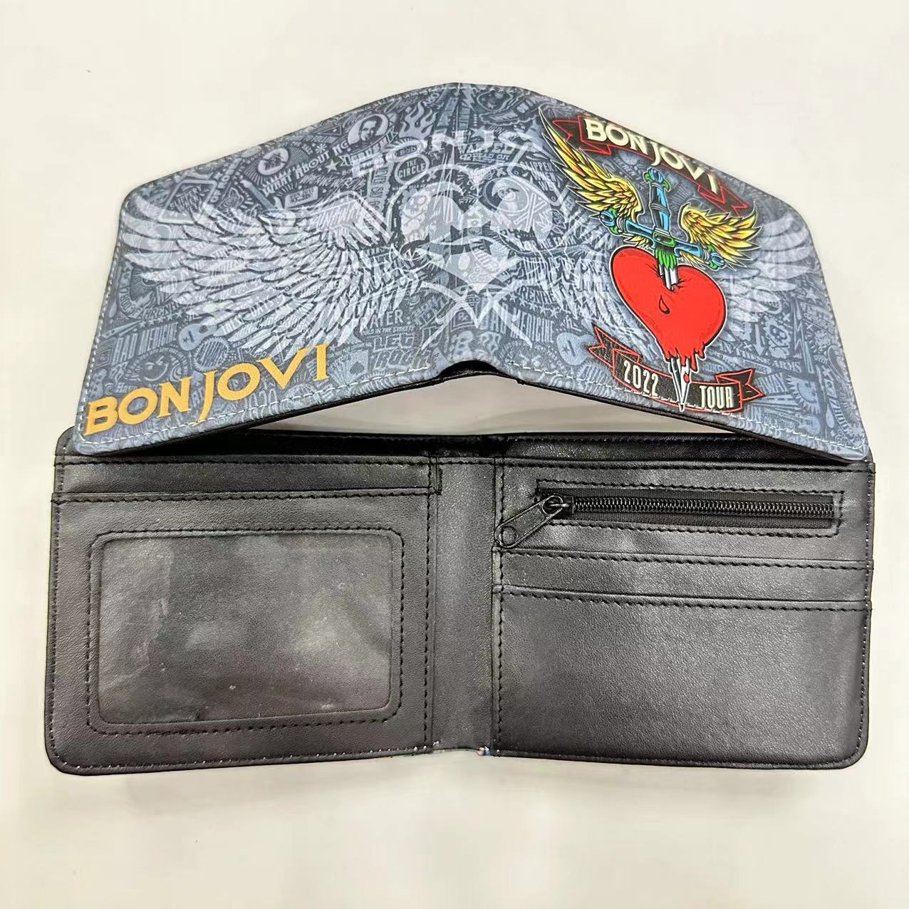 음악 주변 금속 록 밴드 짧은 2 배 지갑 고딕 펑크 동전 지갑 지갑