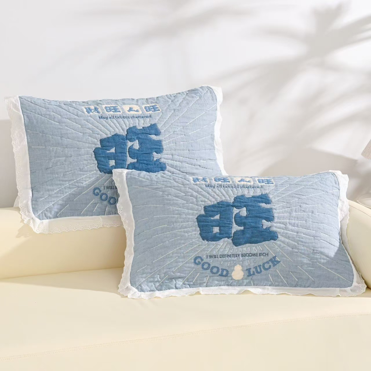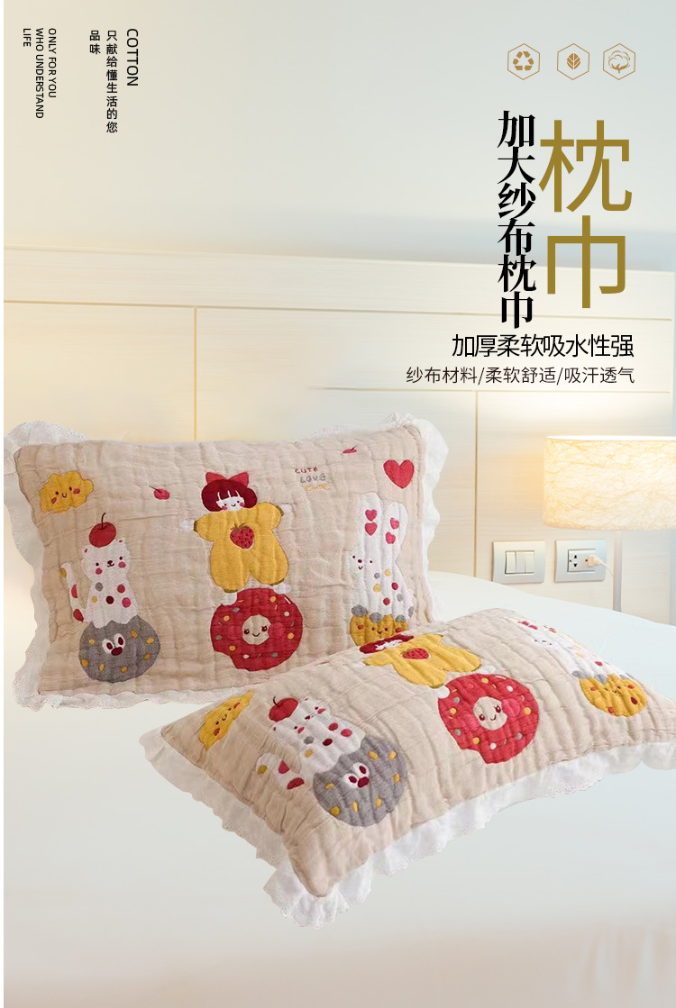 새로운 퍼프 베개 타월 코튼 거즈 베개 타월 단일 두꺼운 코튼 만화 유럽 스타일 커플 성인 쉬운 빨 통기성