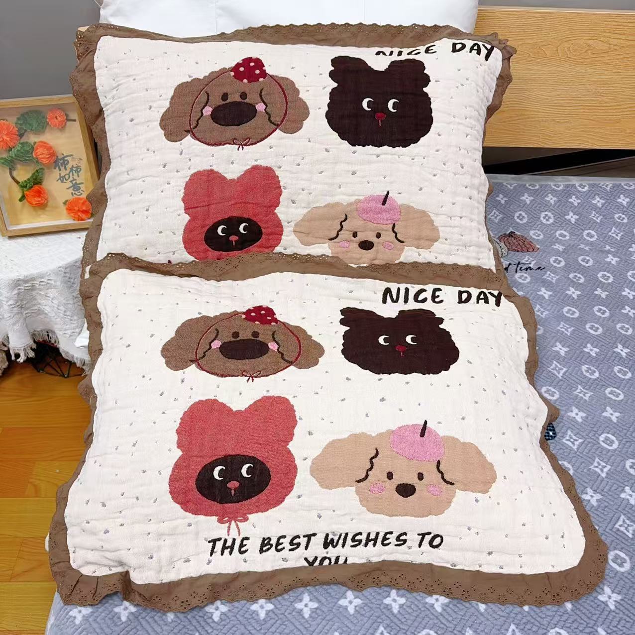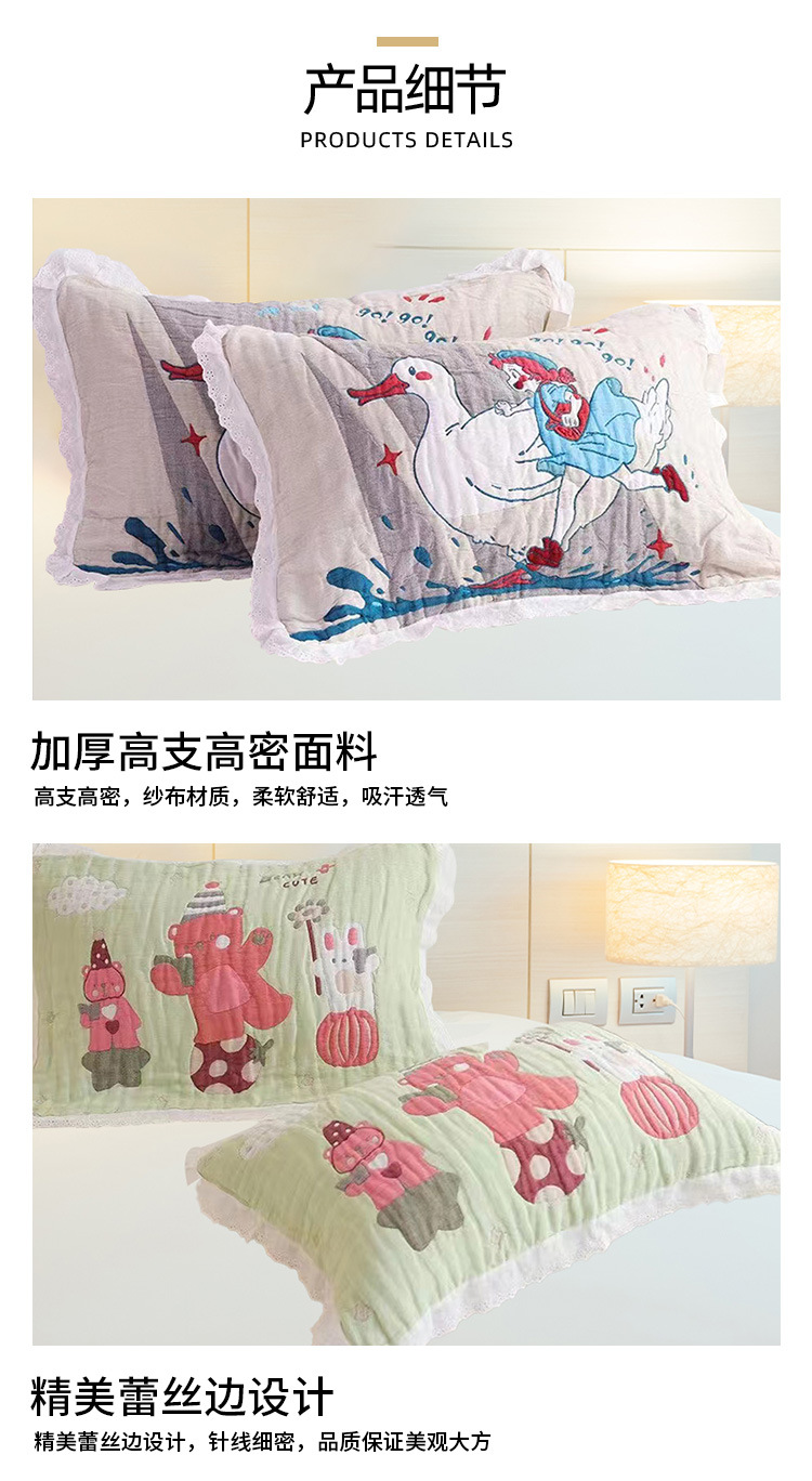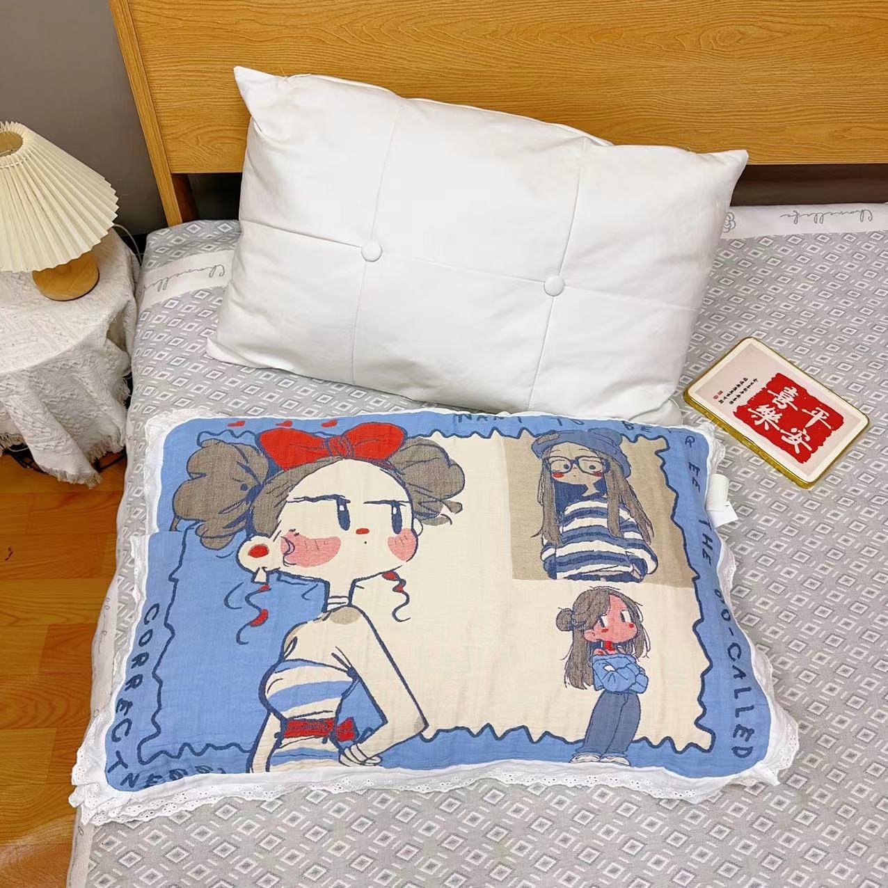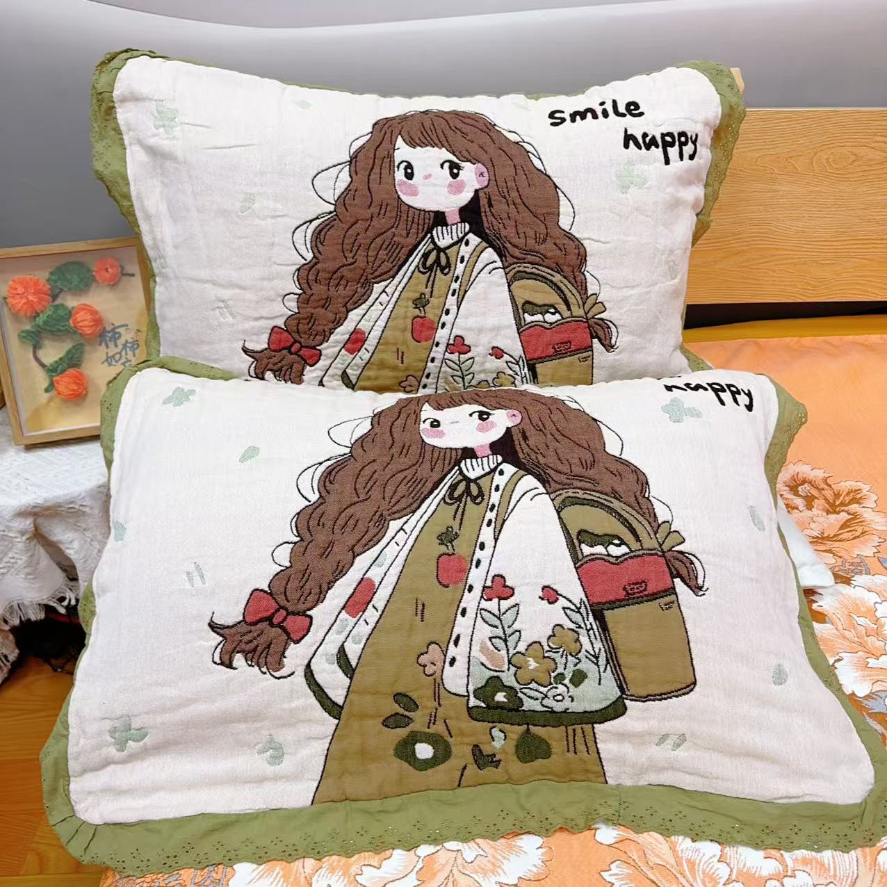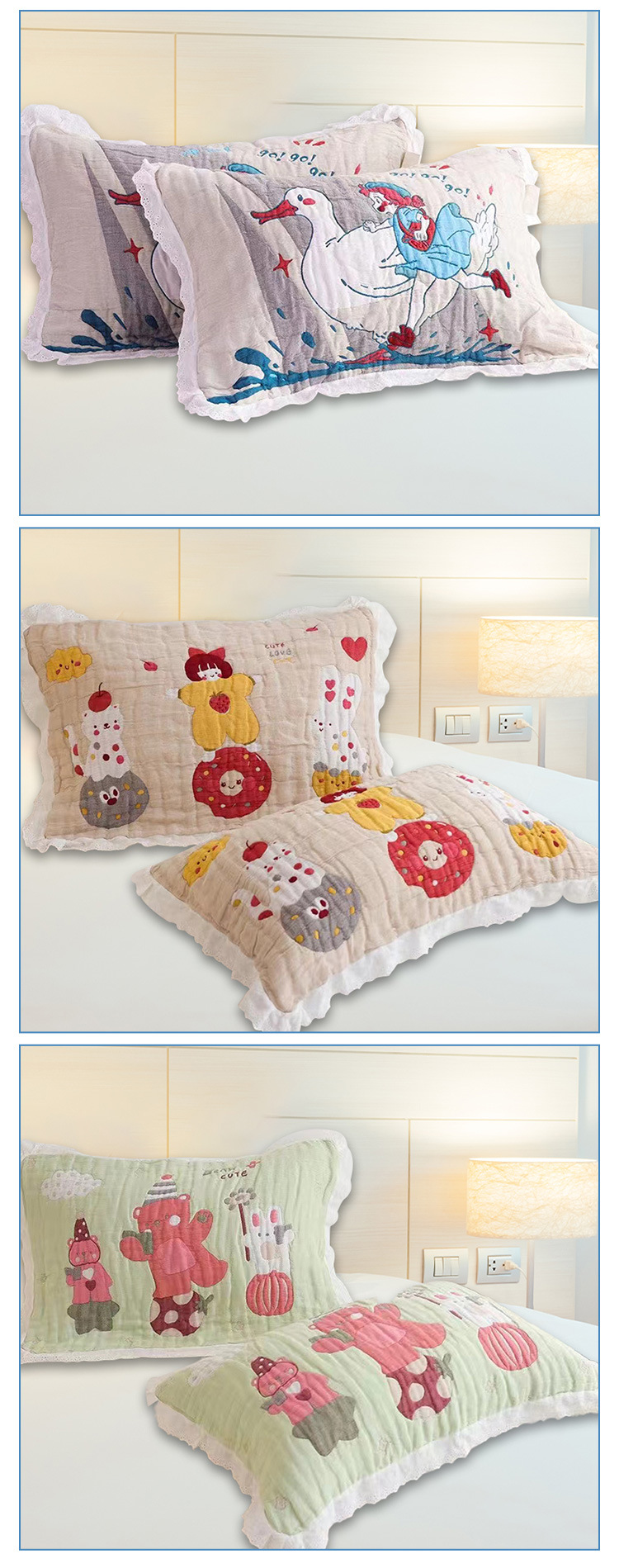새로운 퍼프 베개 타월 코튼 거즈 베개 타월 단일 두꺼운 코튼 만화 유럽 스타일 커플 성인 쉬운 빨 통기성스토어 가기