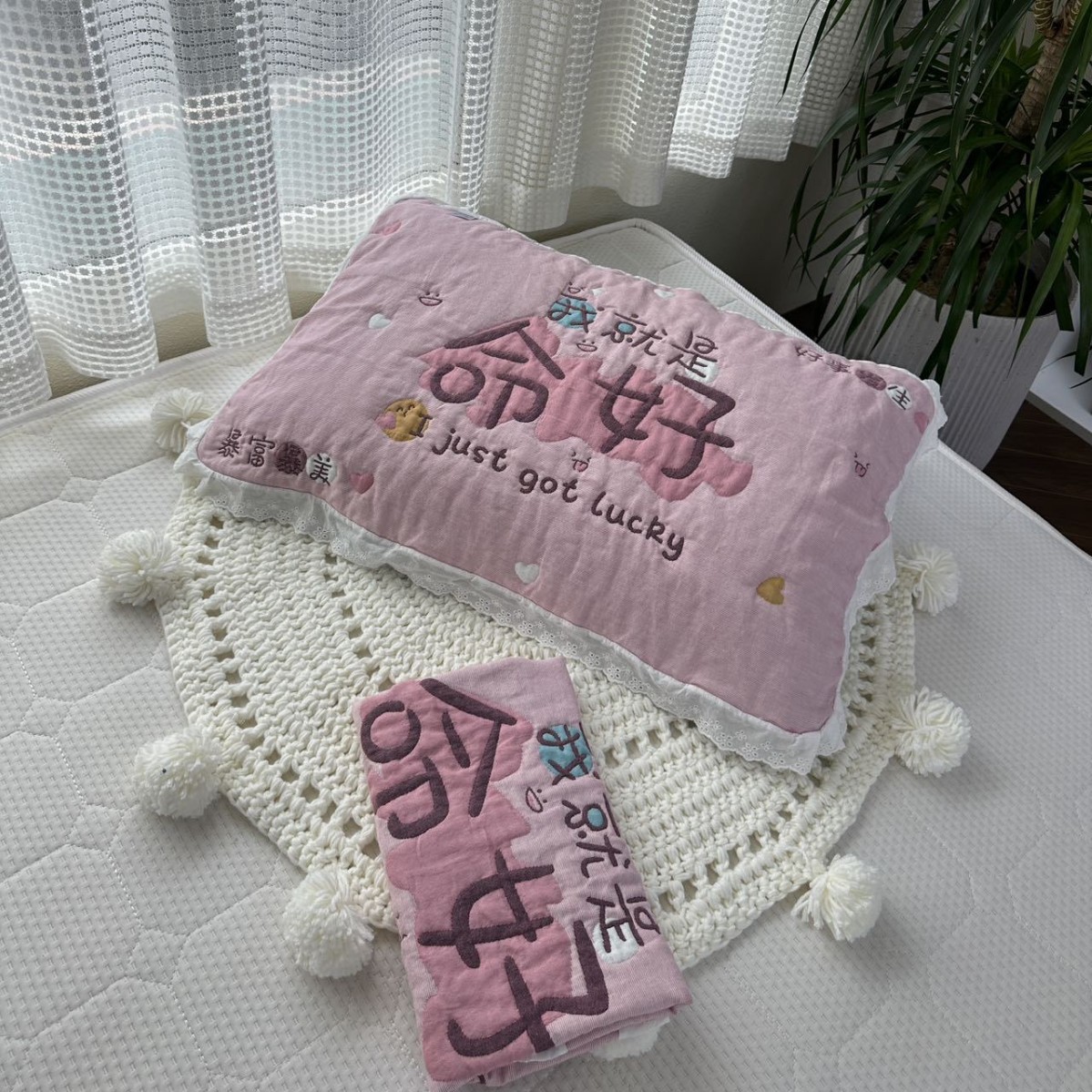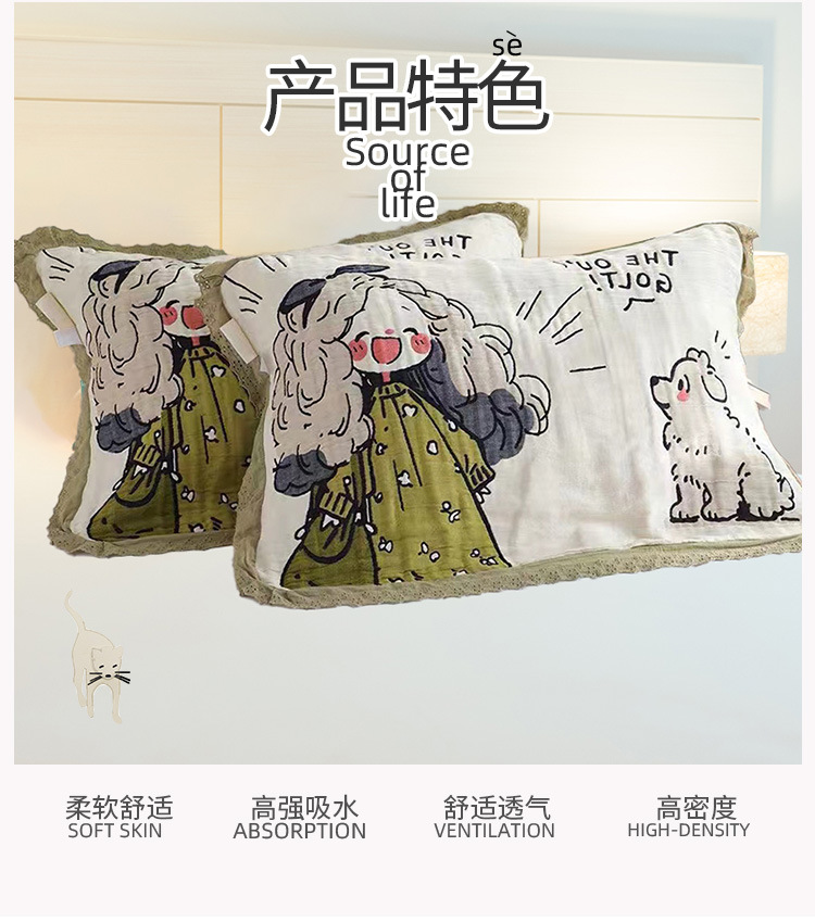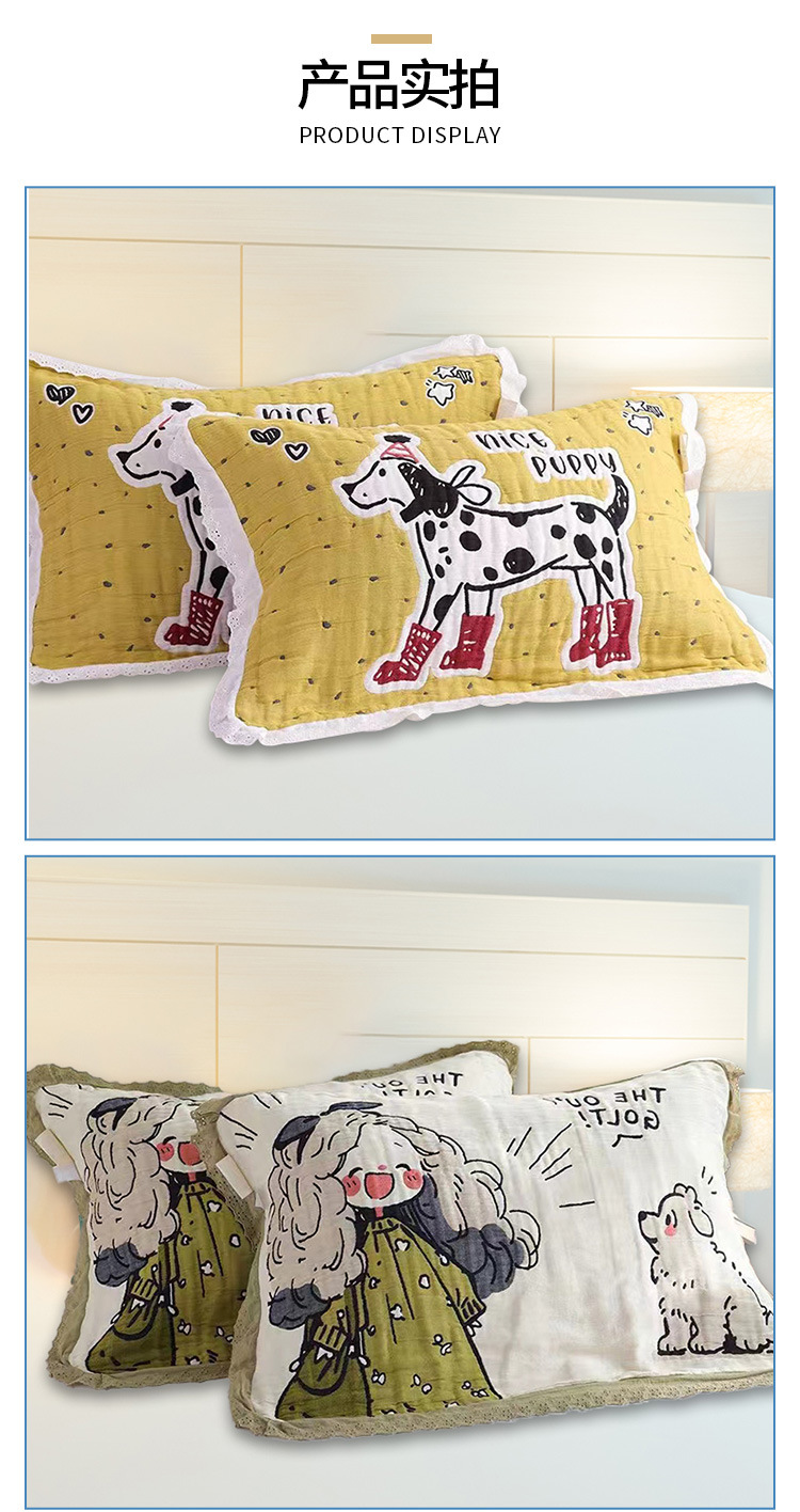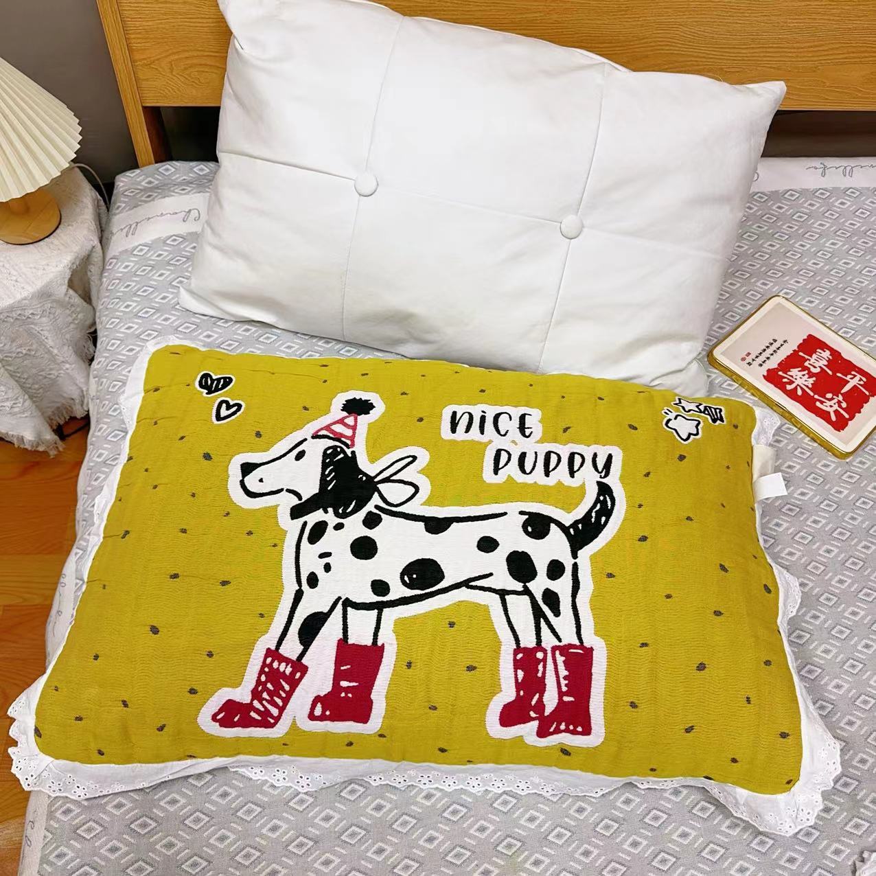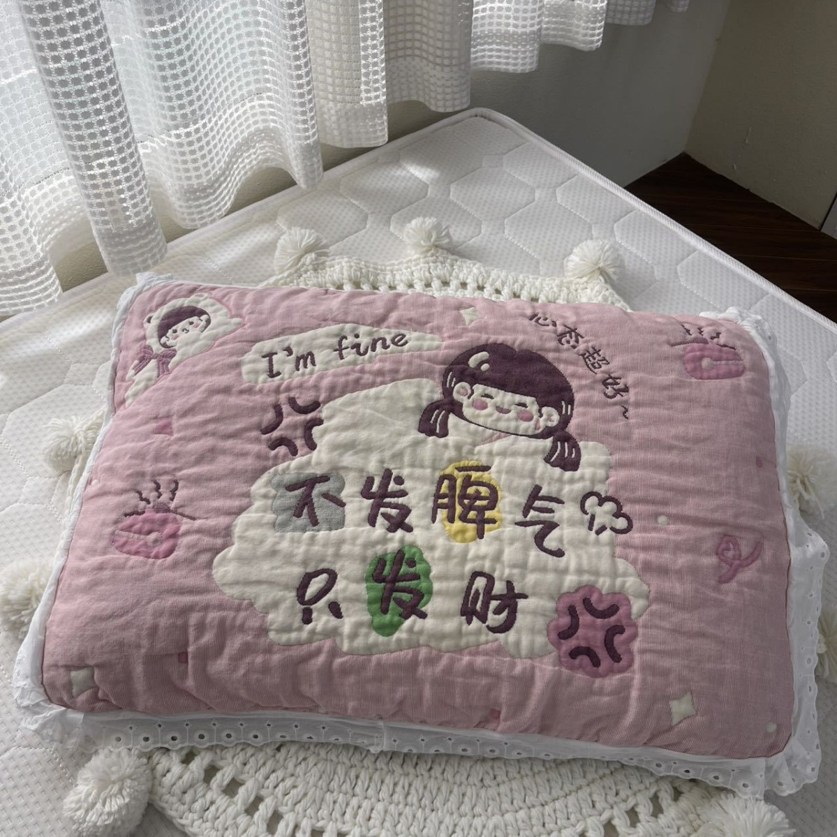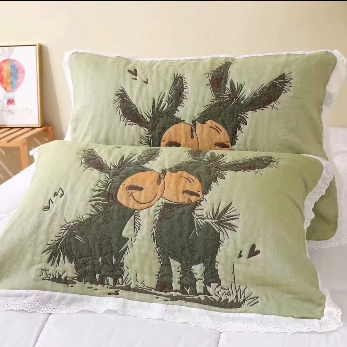 새로운 퍼프 베개 타월 코튼 거즈 베개 타월 단일 두꺼운 코튼 만화 유럽 스타일 커플 성인 쉬운 빨 통기성스토어 가기