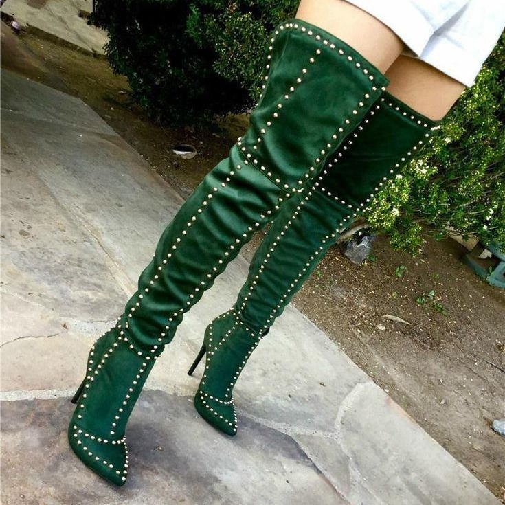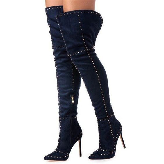 대외 무역은 무릎 부츠 위에 여성 부츠를 춤추는 리벳 스웨이드 패션 무릎 쇼스토어 가기