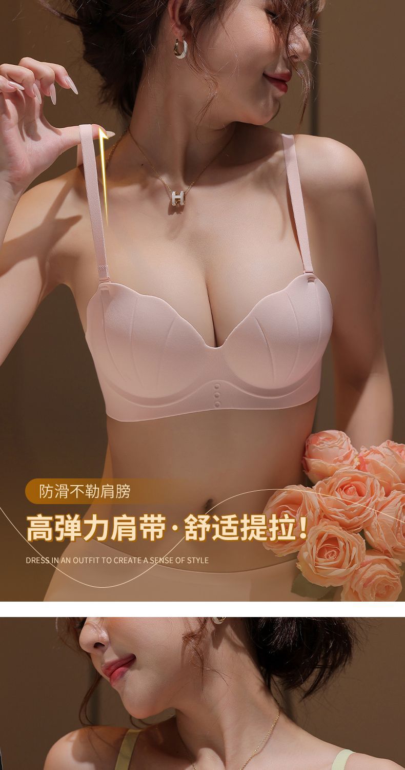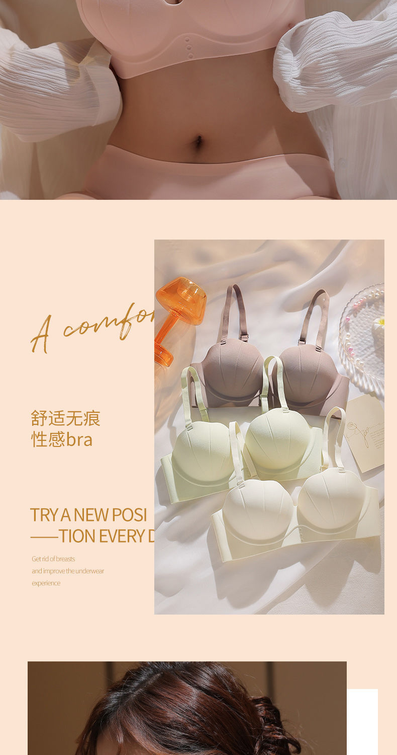 작은 가슴 푸시 업 노트레이스 속옷 여성용 원피스 플랫 가슴 크고 두껍고 편안한 탑업 노림 걸스 브라스토어 가기