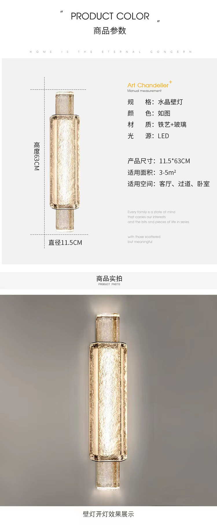• 대형 120*630-크리스탈 벽 램프