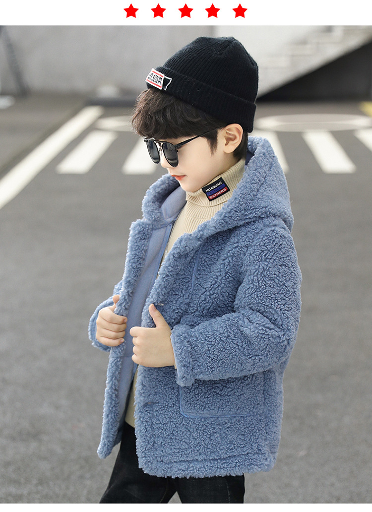 남학생 겨울 코트 2024 년 가을과 겨울 어린이 양고기 양털 서양식 중식 및 대형 어린이를위한 두꺼운 소년 양모 스웨터스토어 가기