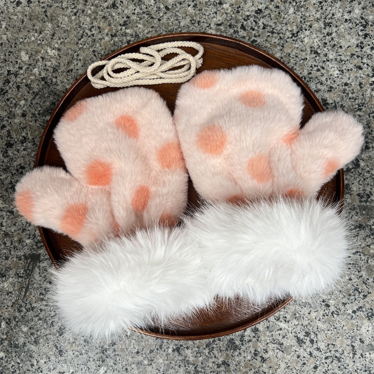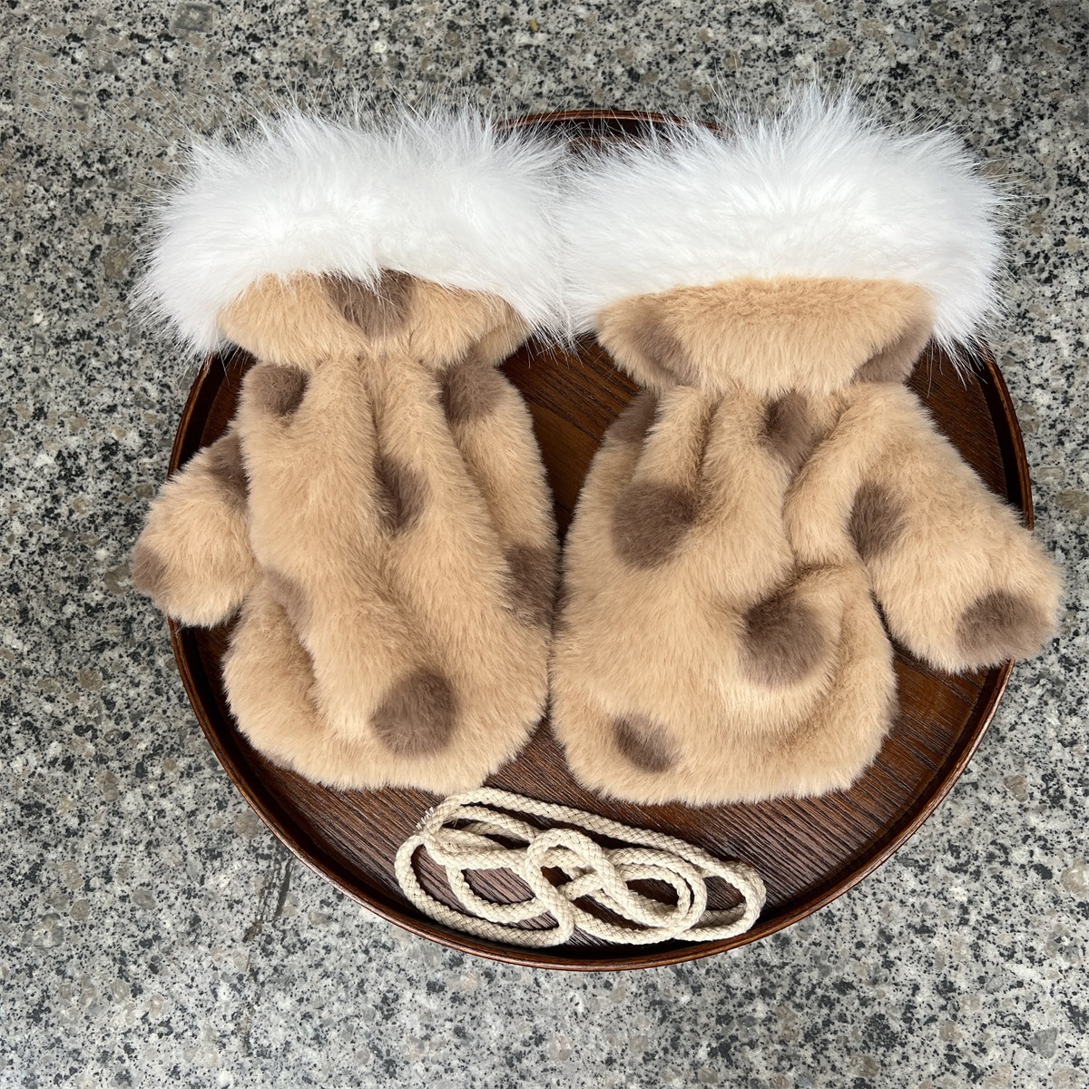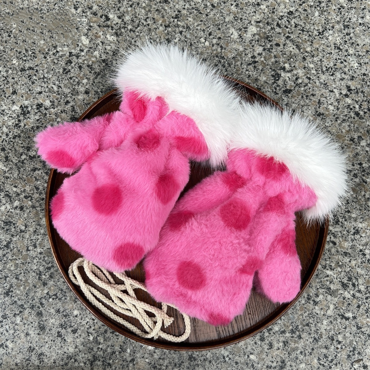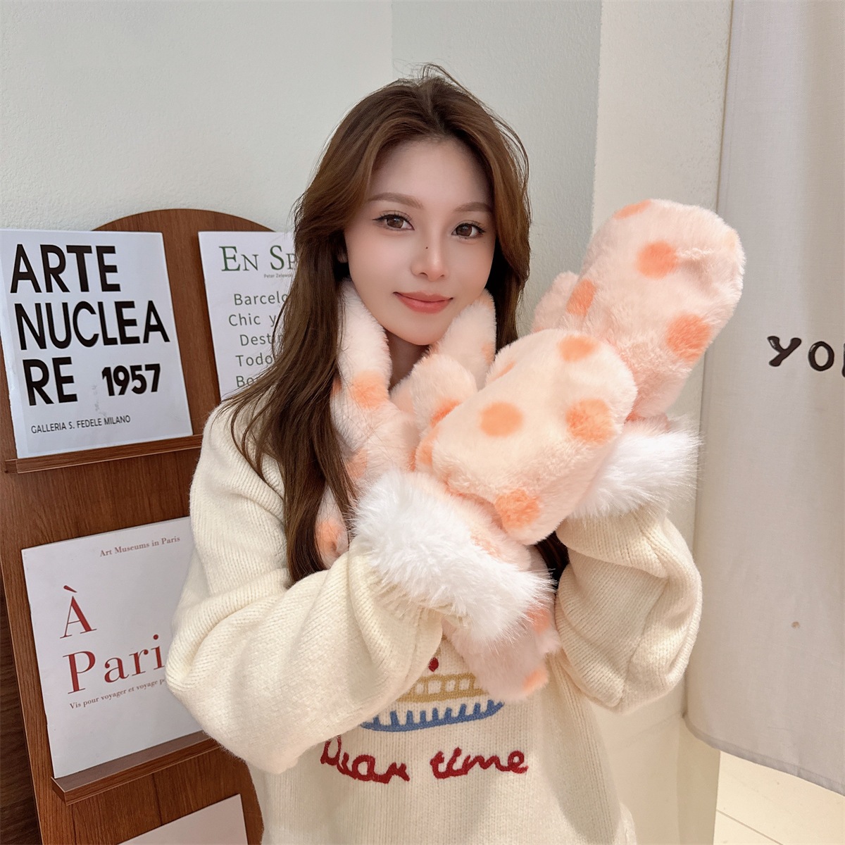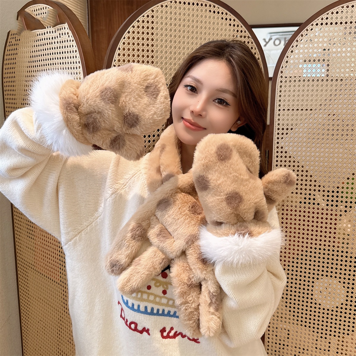 2024 겨울 따뜻한 장갑 여성의 귀여운 기모 겨울 학생 봉제 스카프 두꺼운 턱받이 모방 토끼 모피 세트스토어 가기