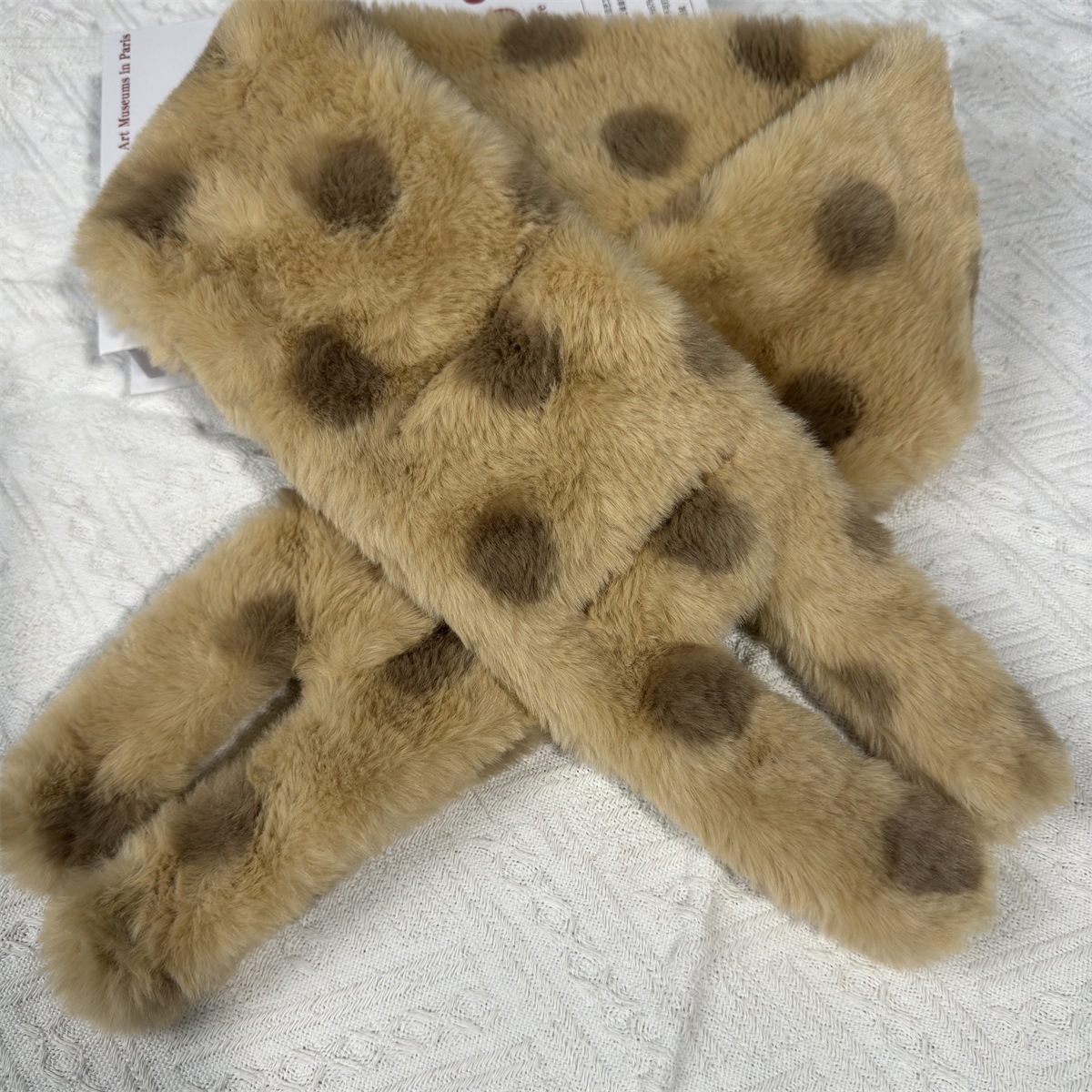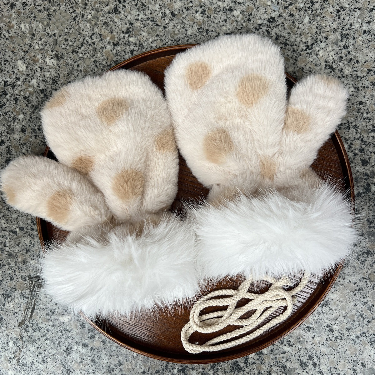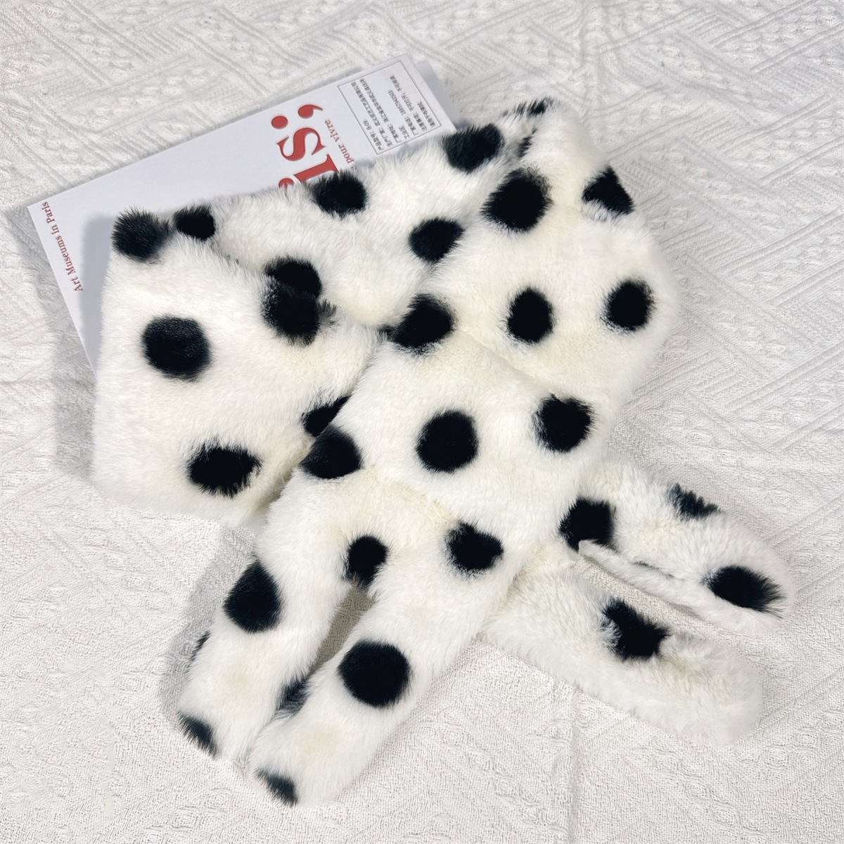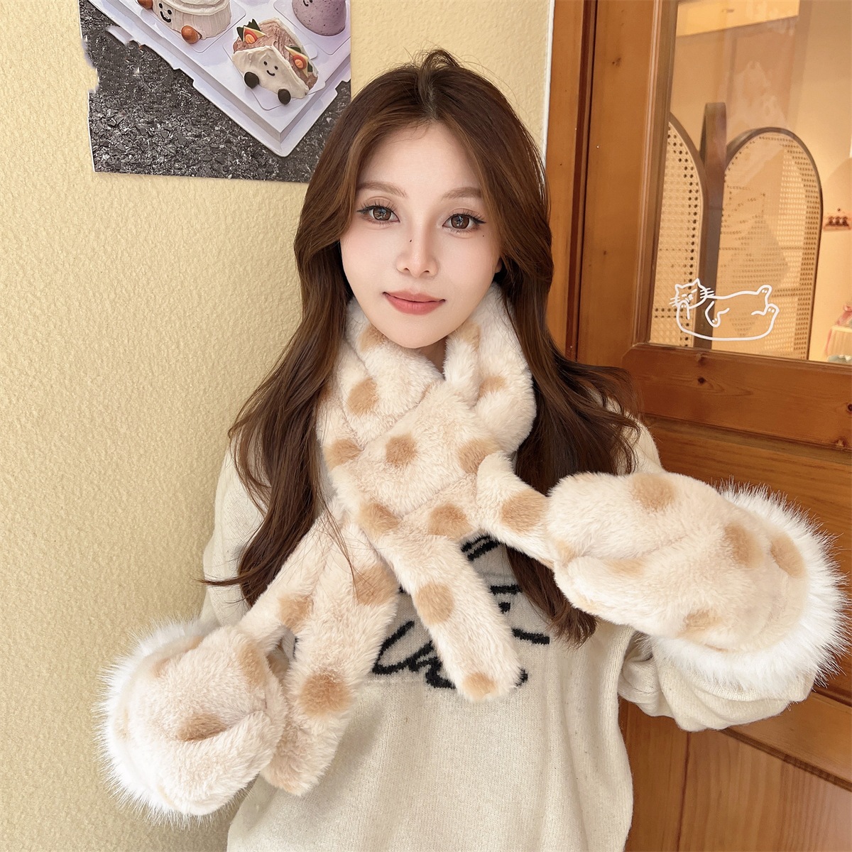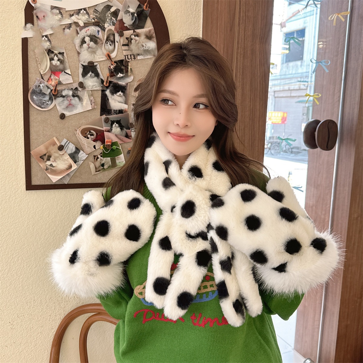 2024 겨울 따뜻한 장갑 여성의 귀여운 기모 겨울 학생 봉제 스카프 두꺼운 턱받이 모방 토끼 모피 세트