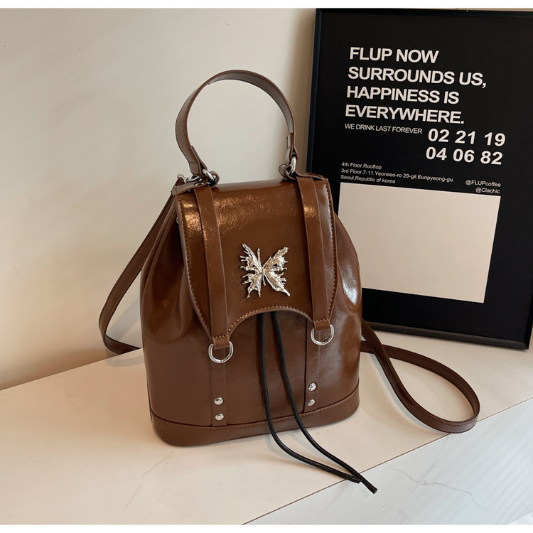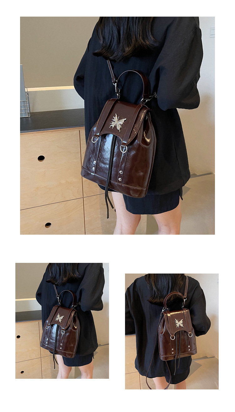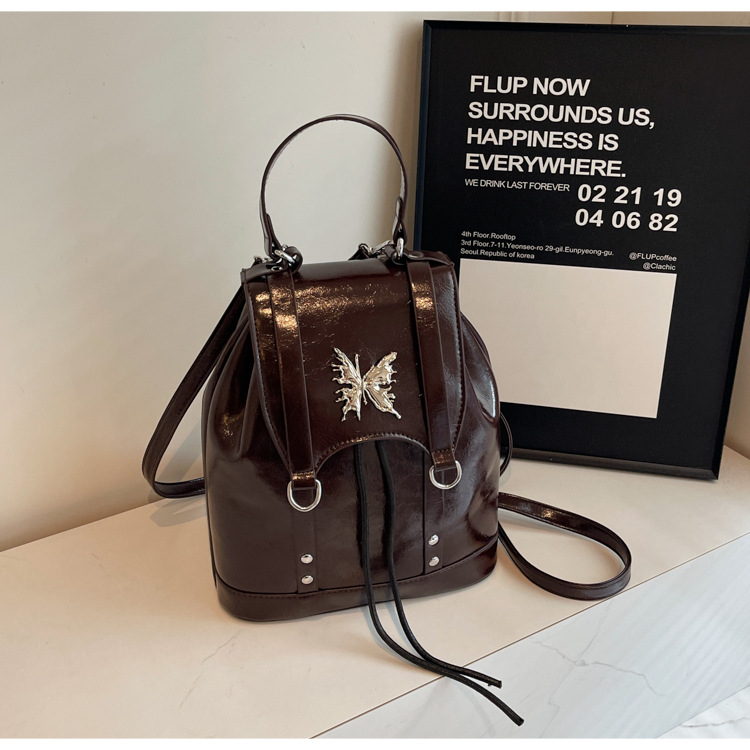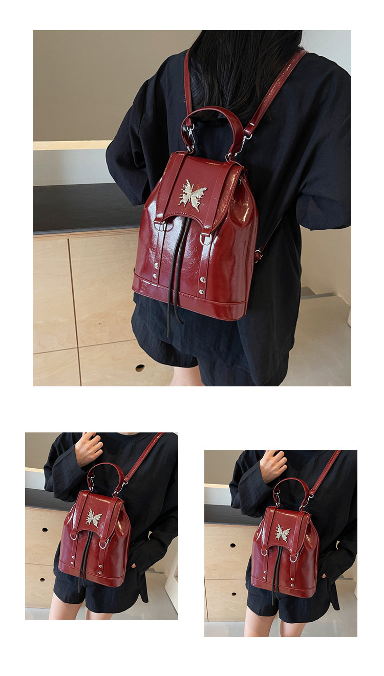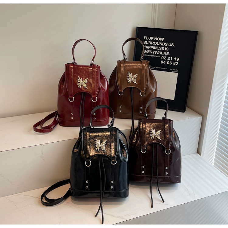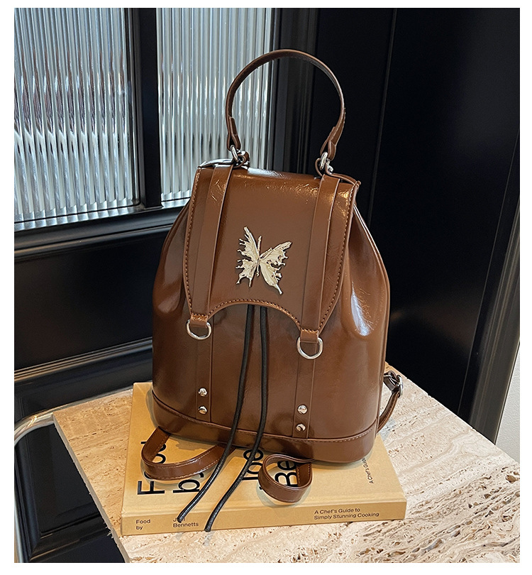 패션 인 스타일 나비 배낭 여성 가방 2024 새로운 패션 패션 질감 오일 가죽 배낭 여행 가방스토어 가기