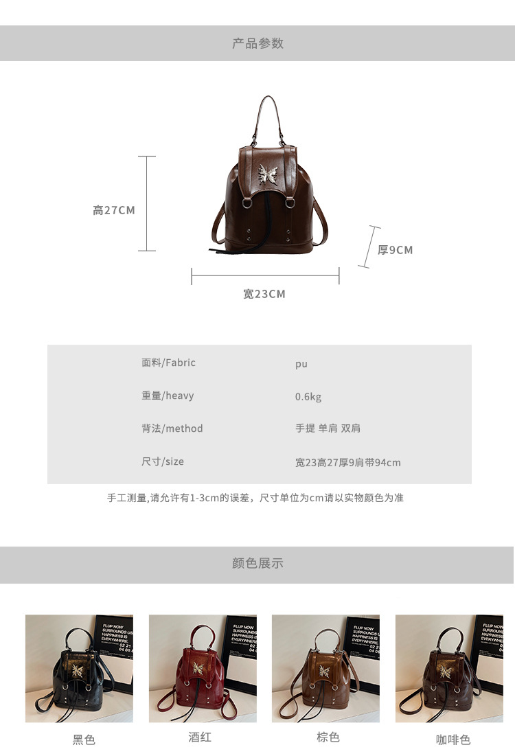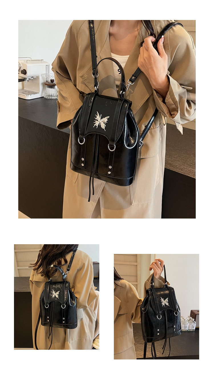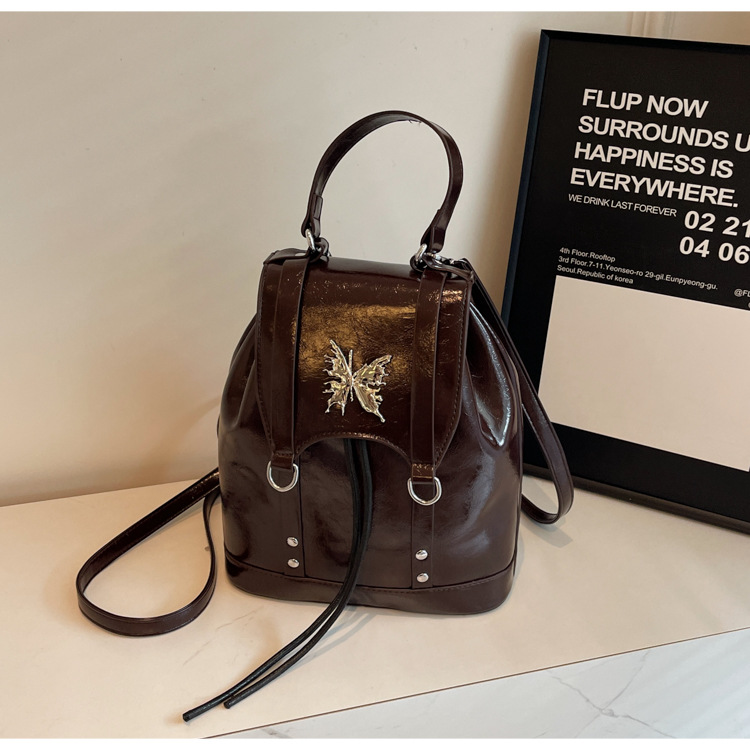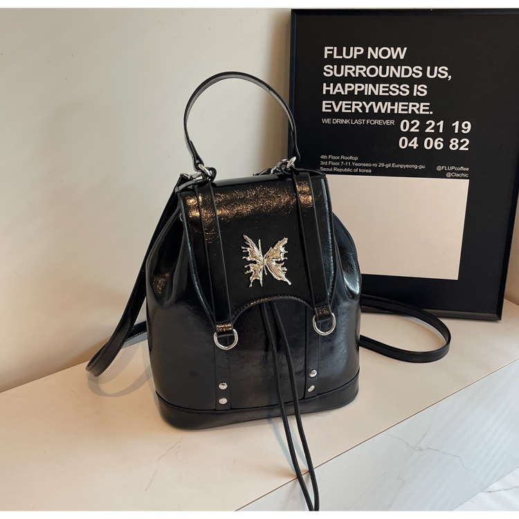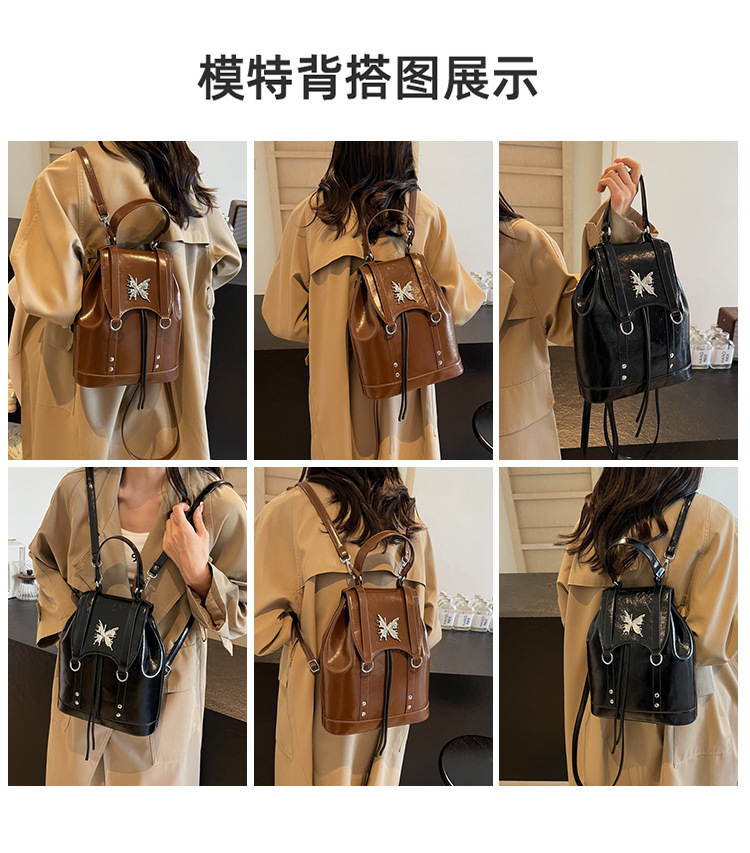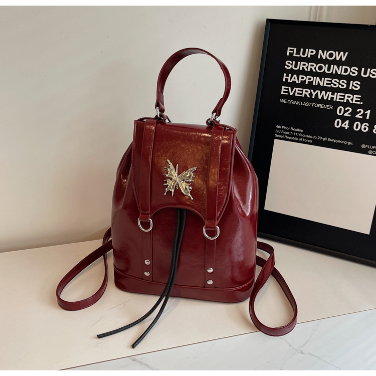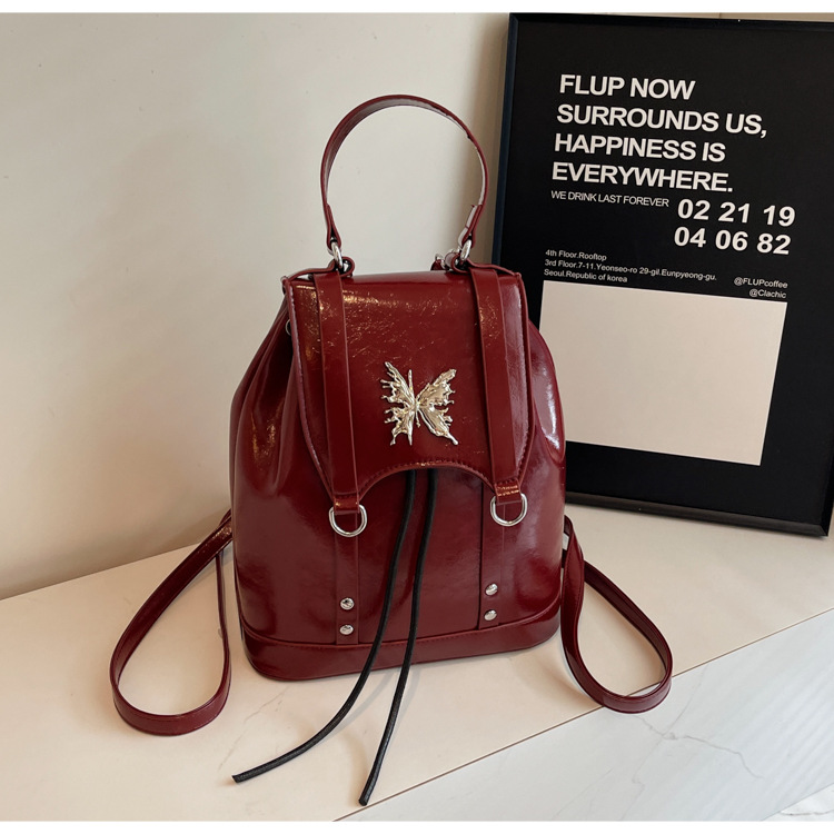 패션 인 스타일 나비 배낭 여성 가방 2024 새로운 패션 패션 질감 오일 가죽 배낭 여행 가방스토어 가기